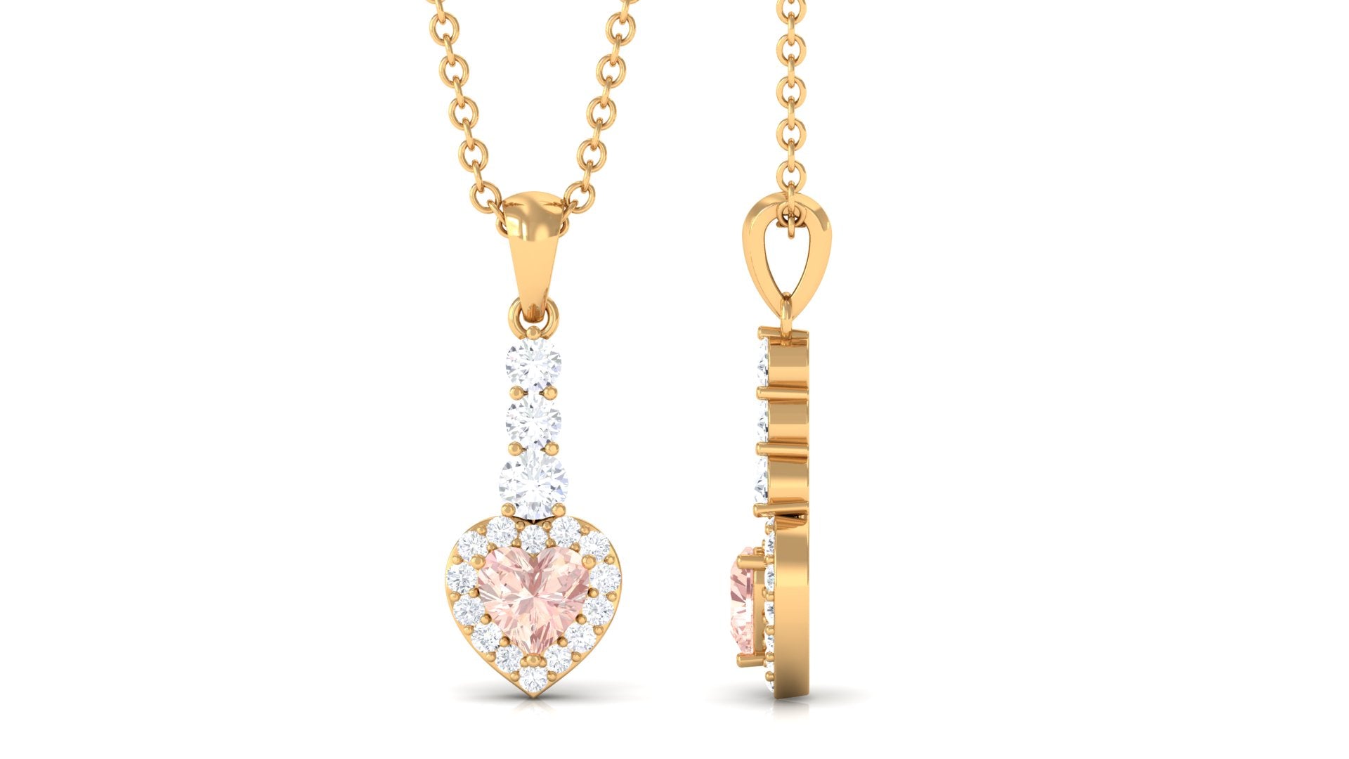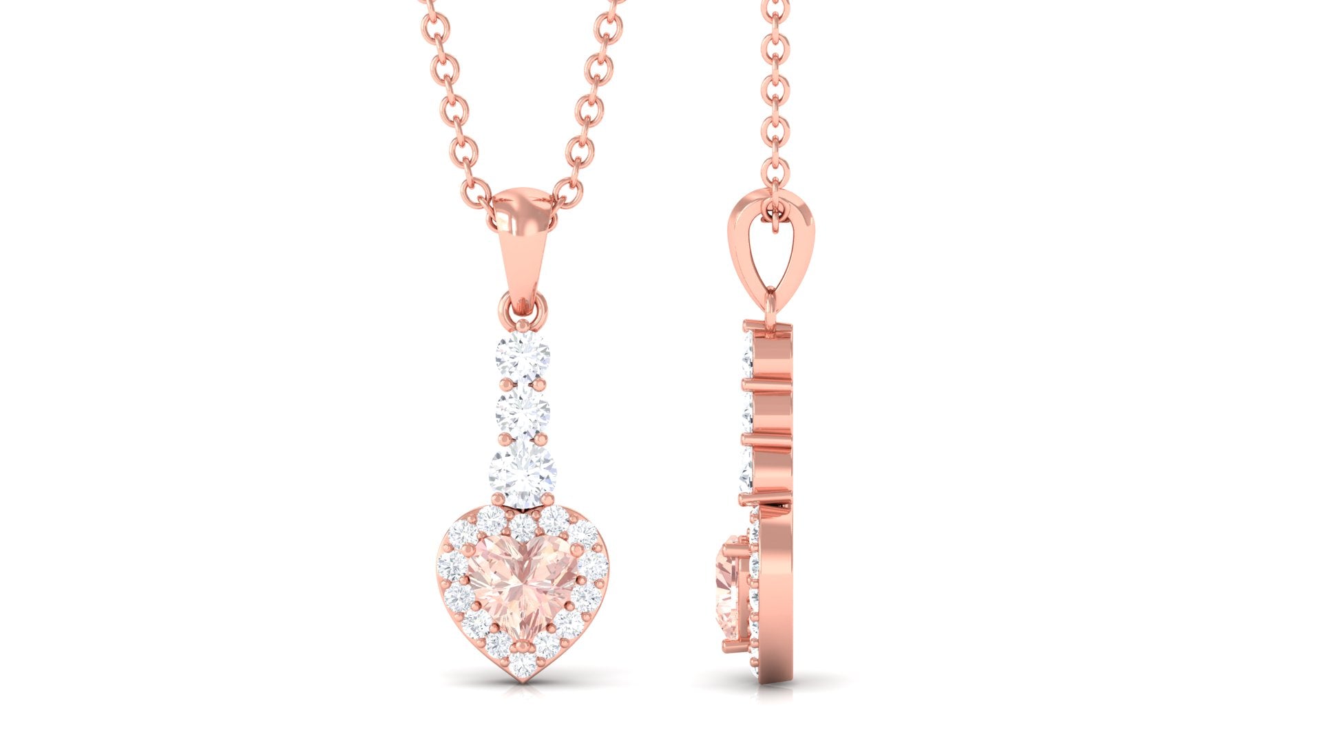 Let her know how much you love her by presenting this Heart Drop Pendant Necklace to her. Embellished with Heart Shape Morganite secured in Prong Setting while Round Cut Diamond enhances its shine. This Morganite Pendant Necklace is the perfect piece of jewelry for your favorite person and will make her heart flutter.
