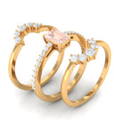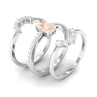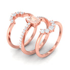 Real Morganite Solitaire Trio Ring Set with Diamond
