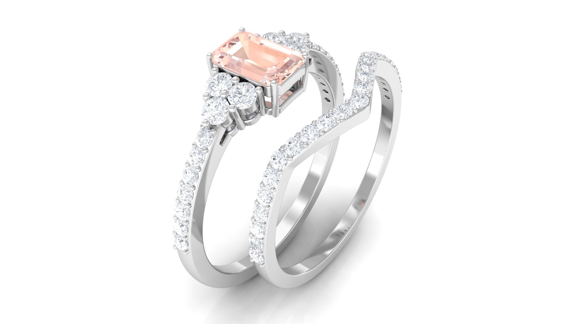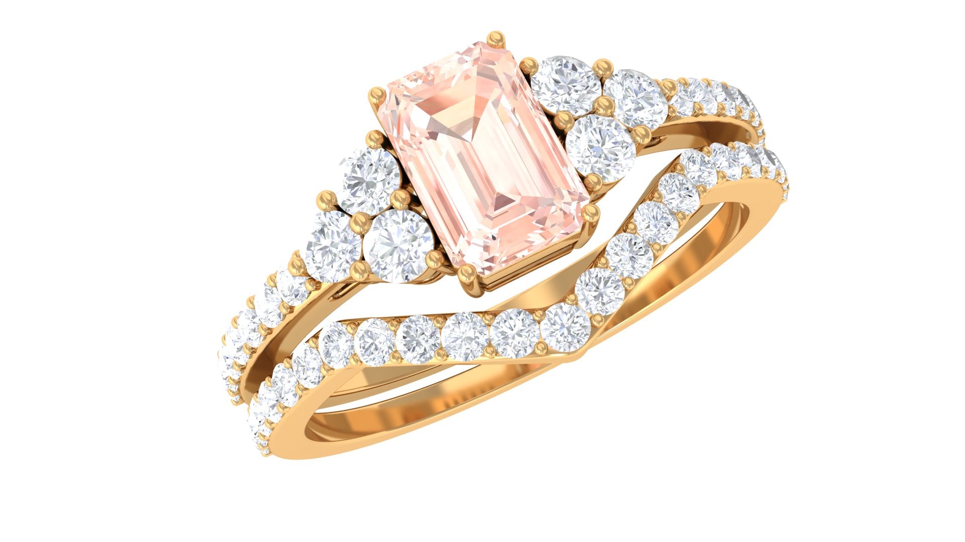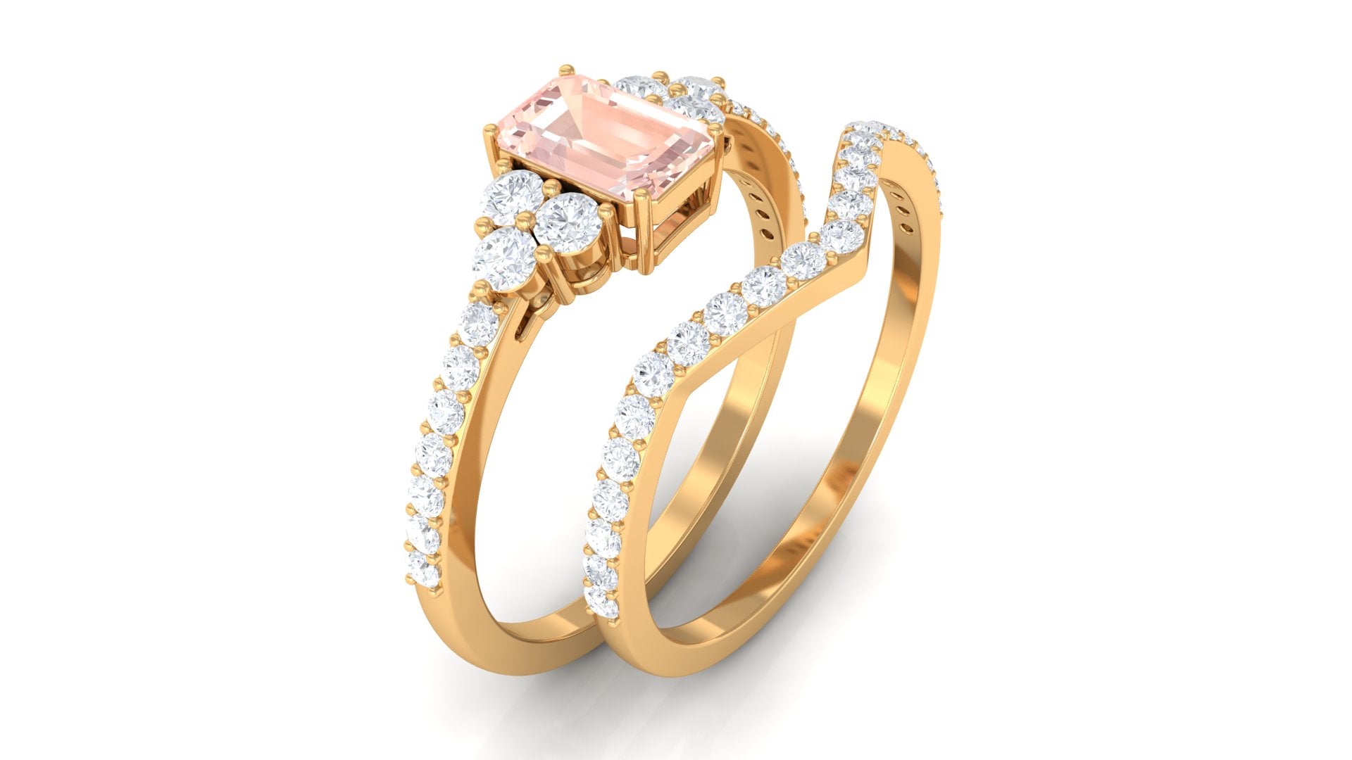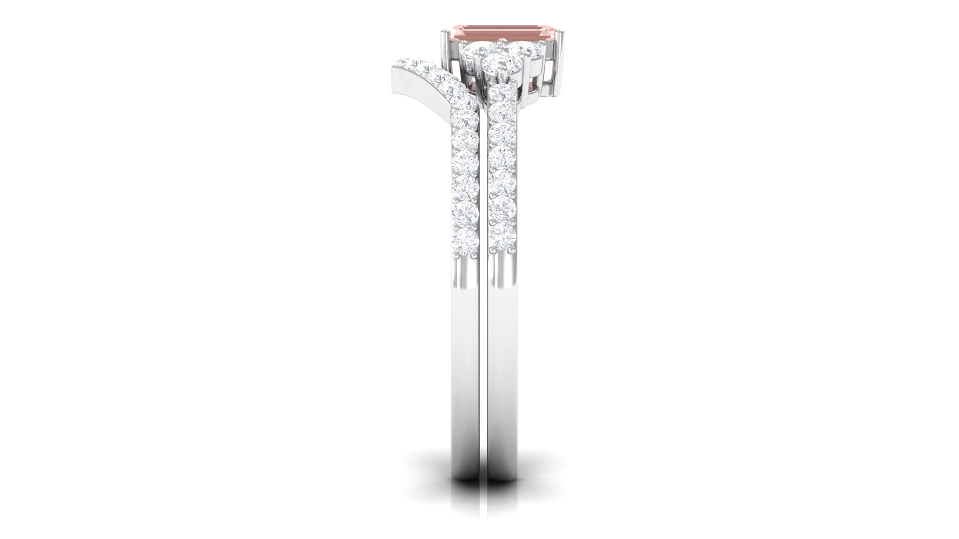 Effortlessly elegant, this Morganite Stackable Ring Set sparkles with Diamond gemstones, a stylish addition to your everyday or special occasion wear.