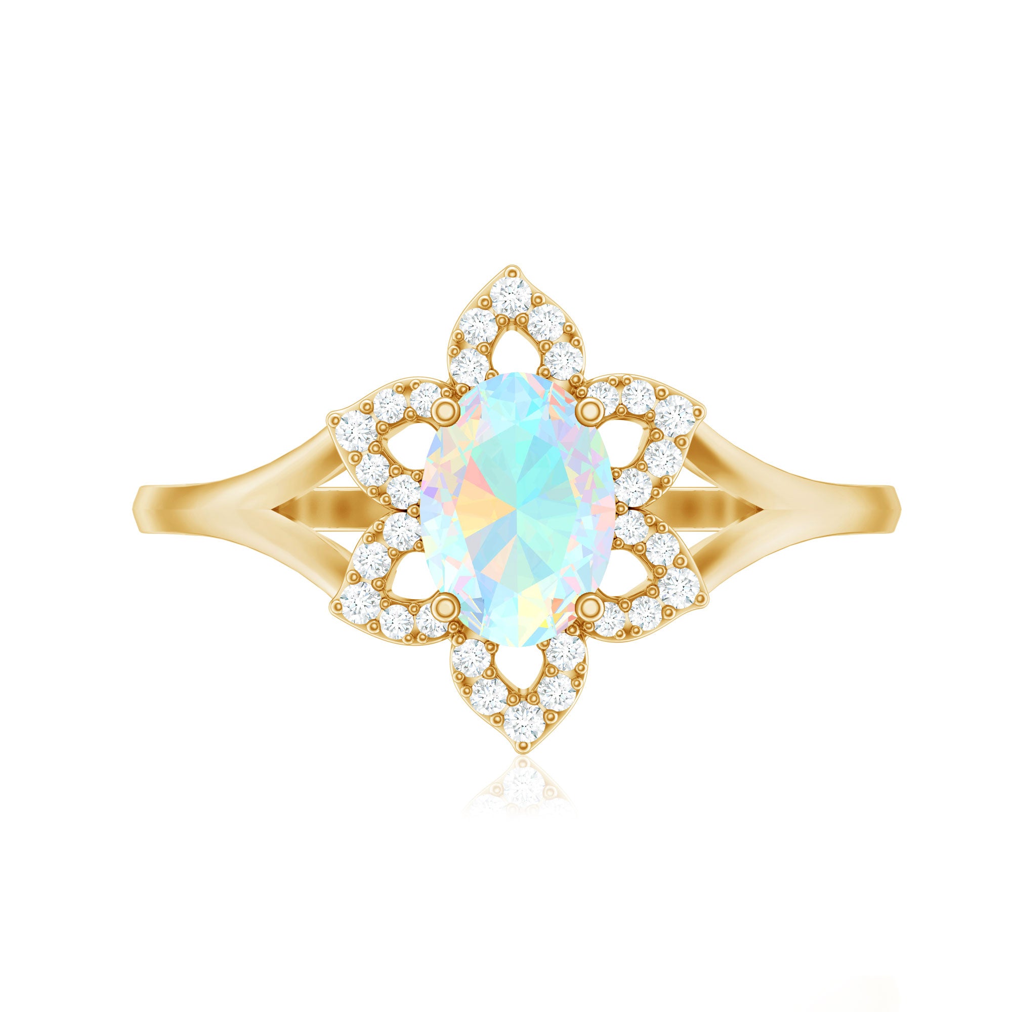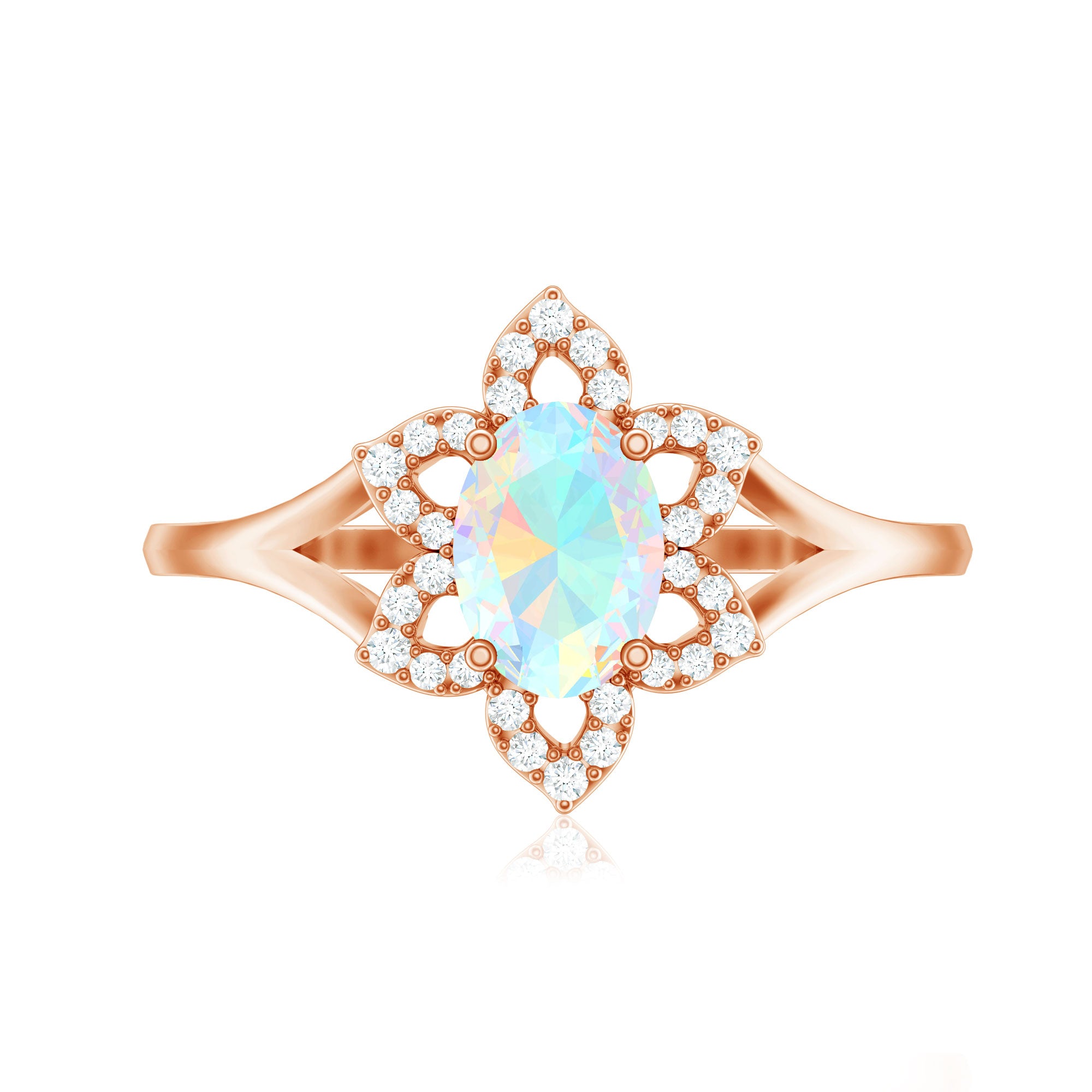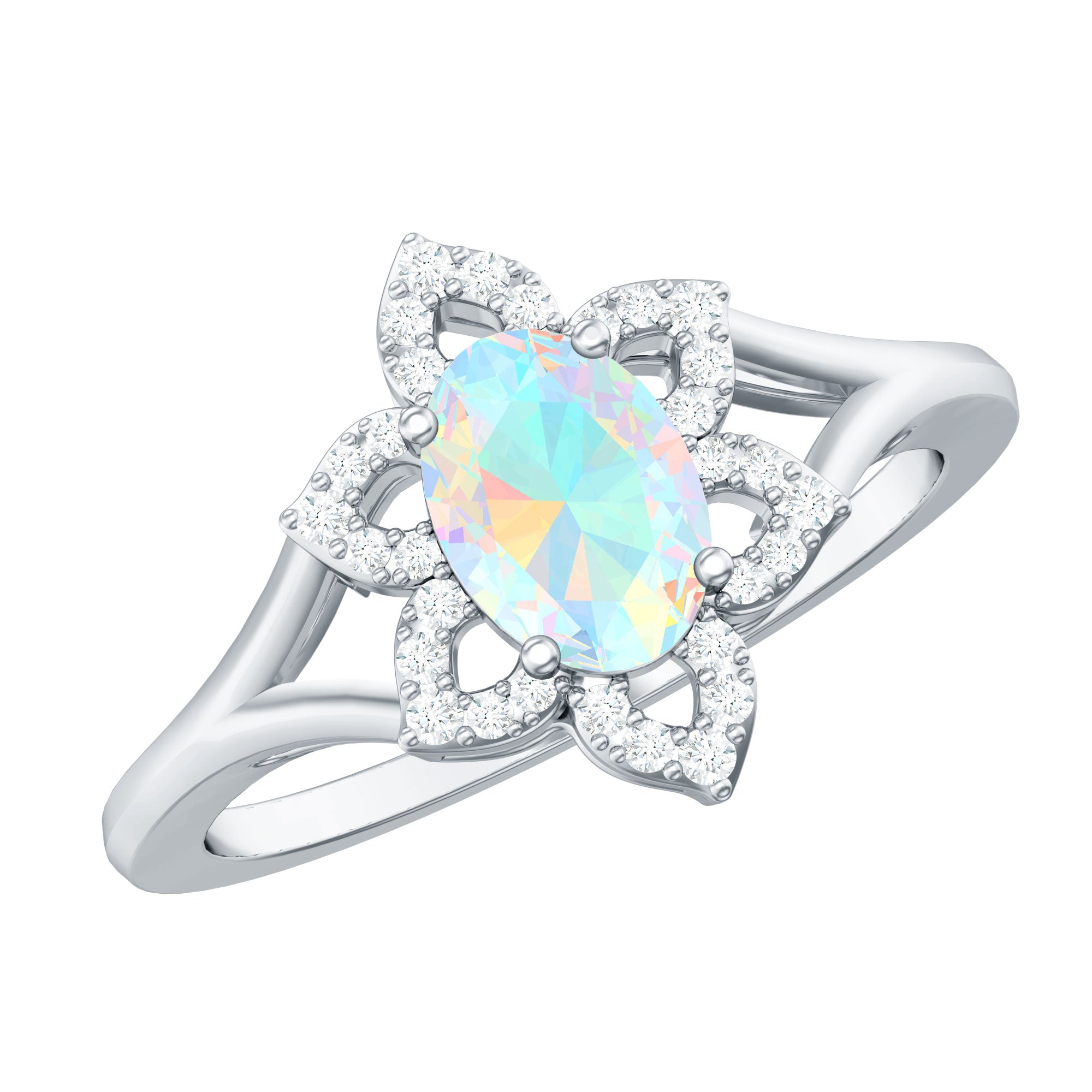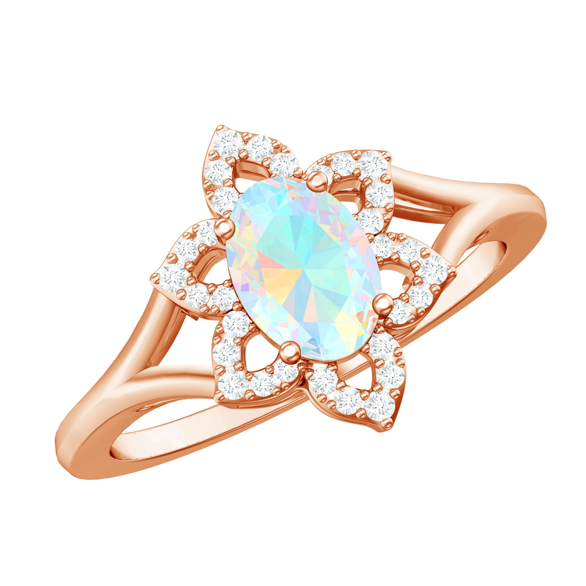 Real Oval Ethiopian Opal Diamond Flower Engagement Ring with Split Shank