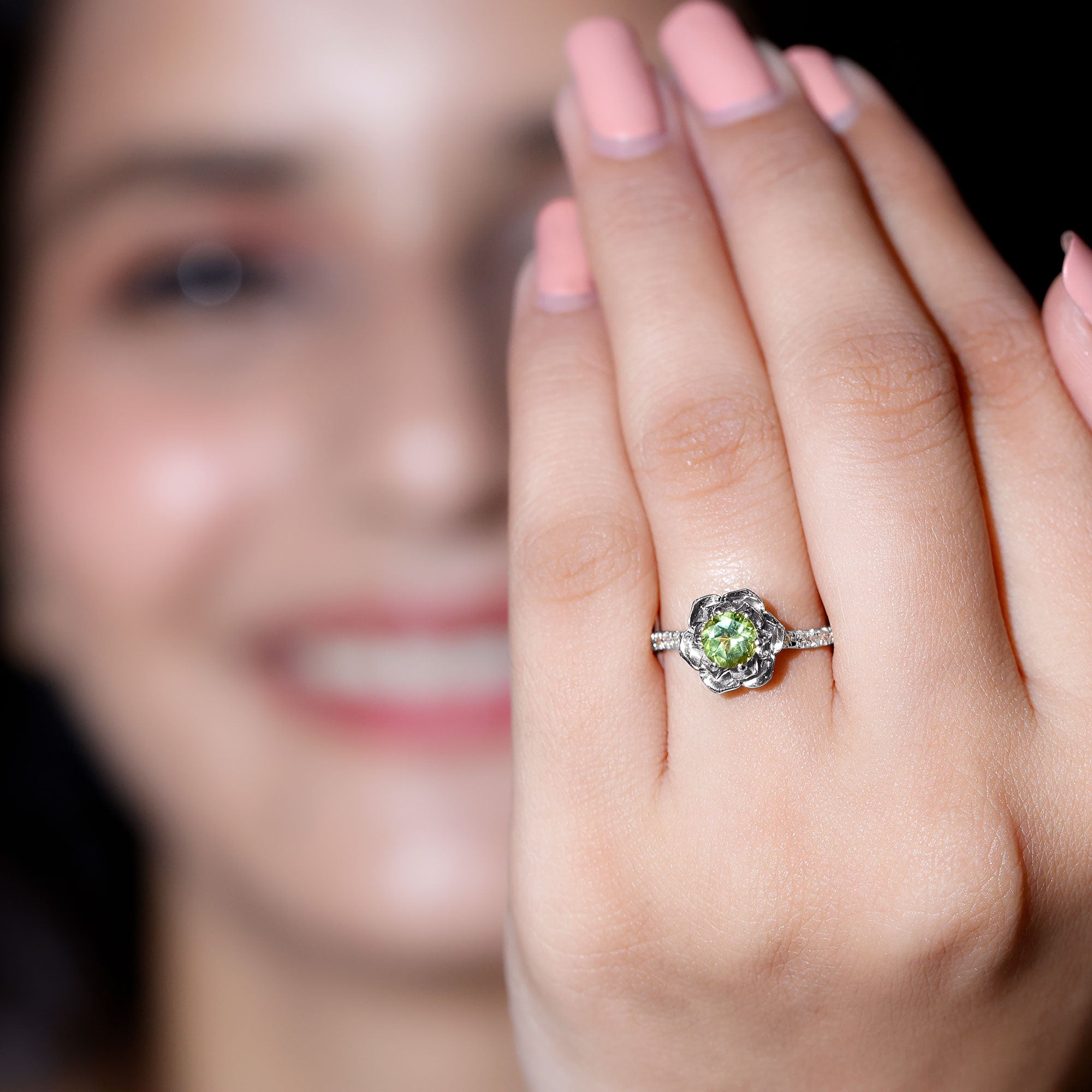 Real Peridot and Diamond Flower Engagement Ring