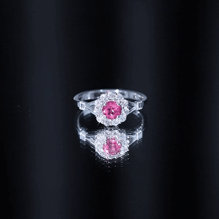 Real Pink Tourmaline and Diamond Engagement Ring in Split Shank