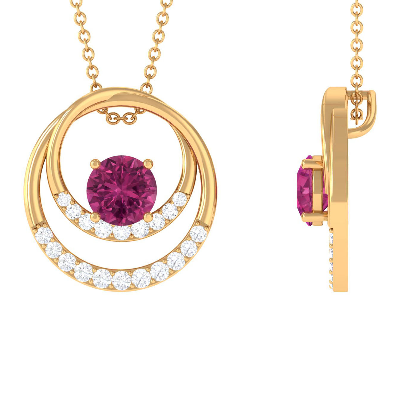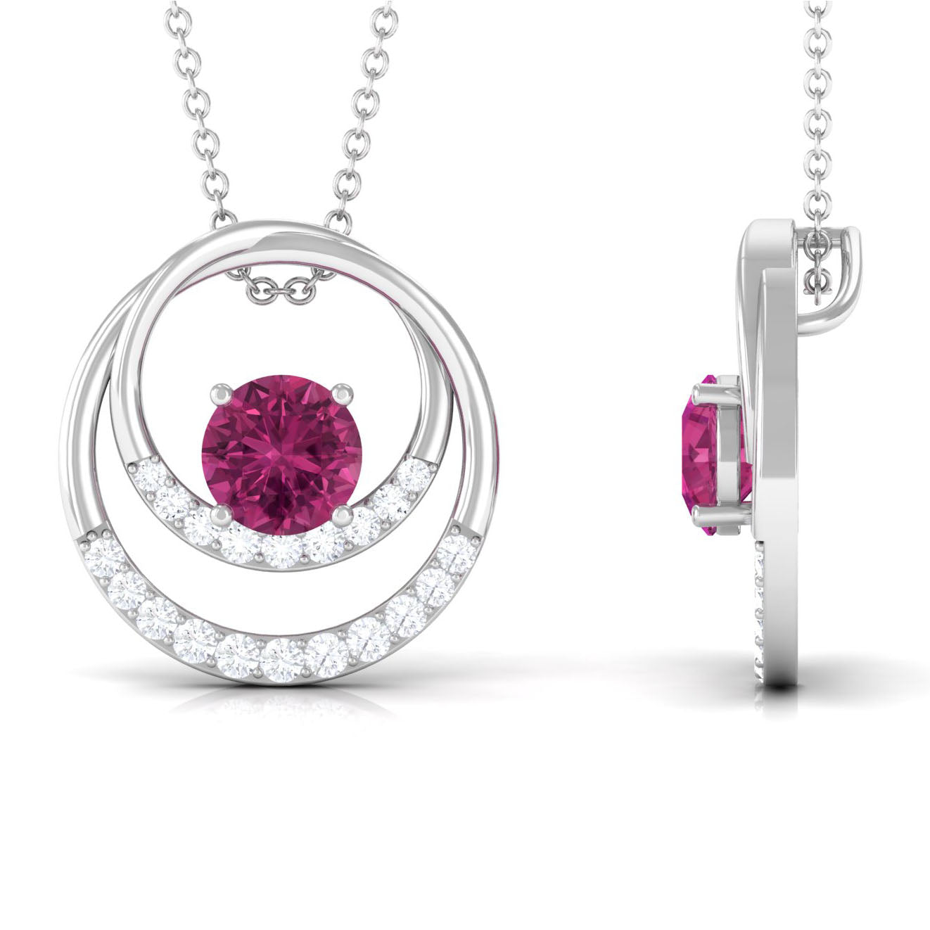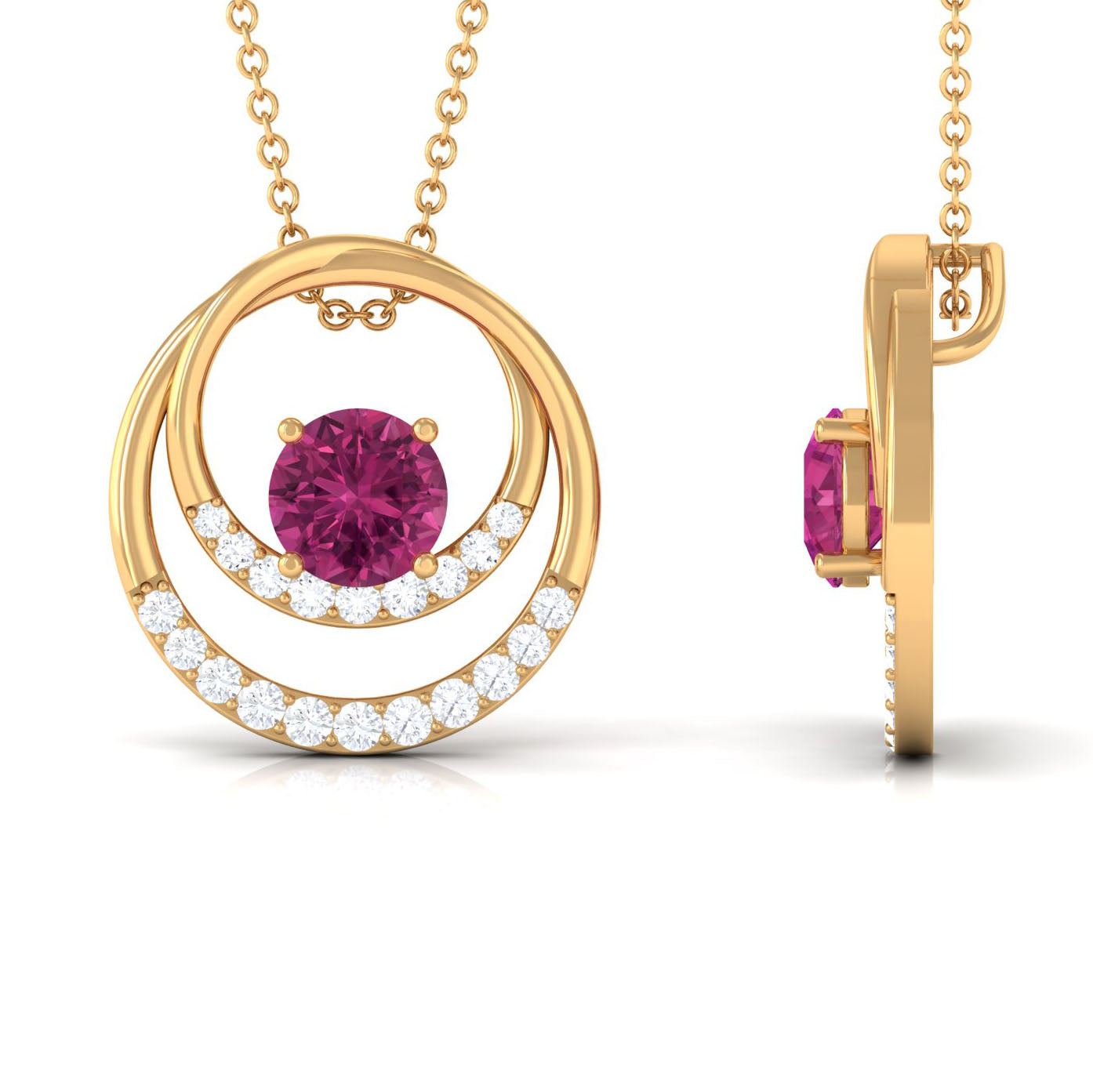 If you want to fortify your relationship and make it enduring, consider our Pink Tourmaline Pendant Necklace as the ideal option. The necklace boasts a 6 MM Round Shape Pink Tourmaline securely held in a Prong Setting and encircled by dazzling Round Diamond on an open circle pendant.