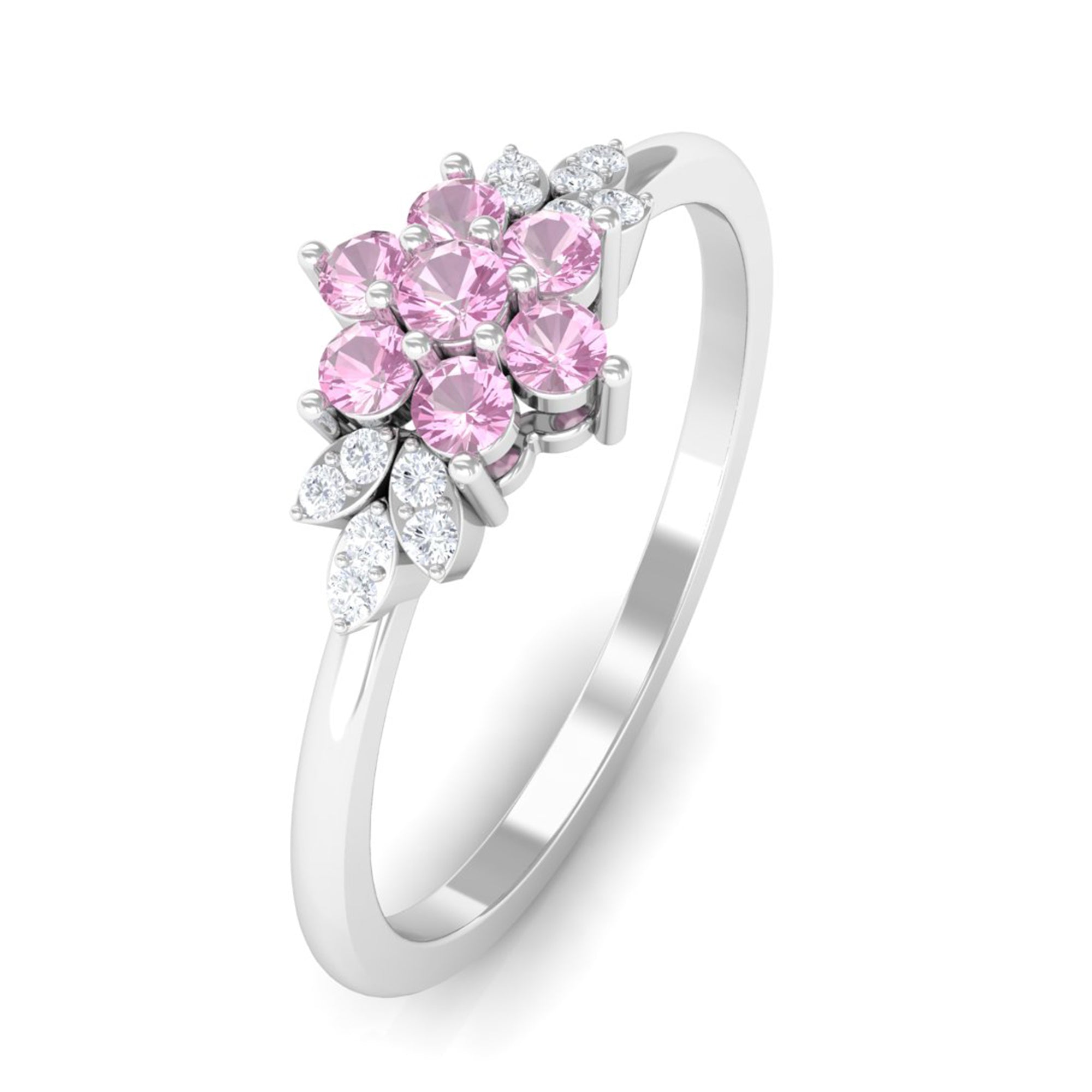 Real Pink Tourmaline Flower Cluster Ring with Diamond