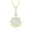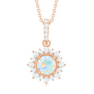 Real Rainbow Opal Necklace with Diamond Halo