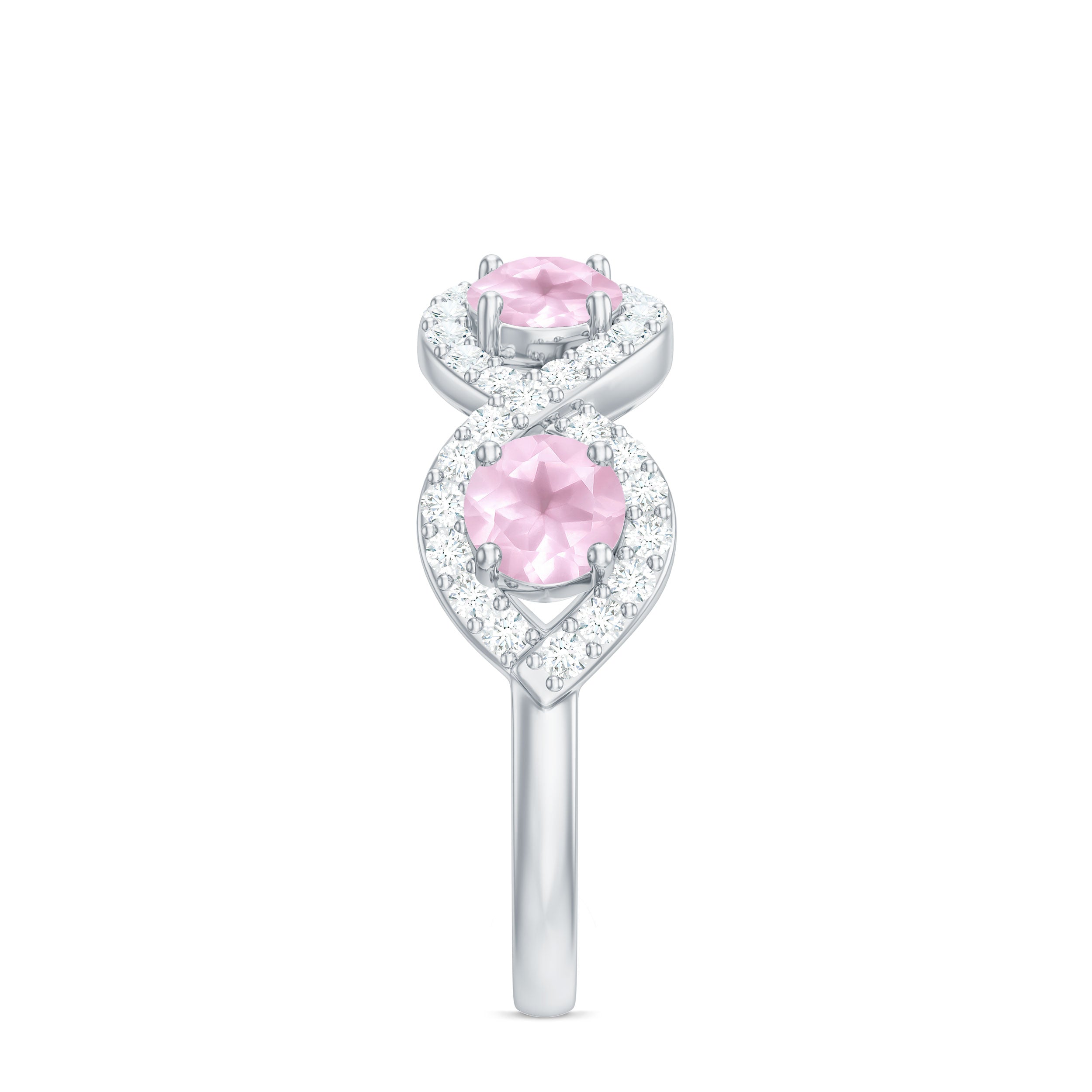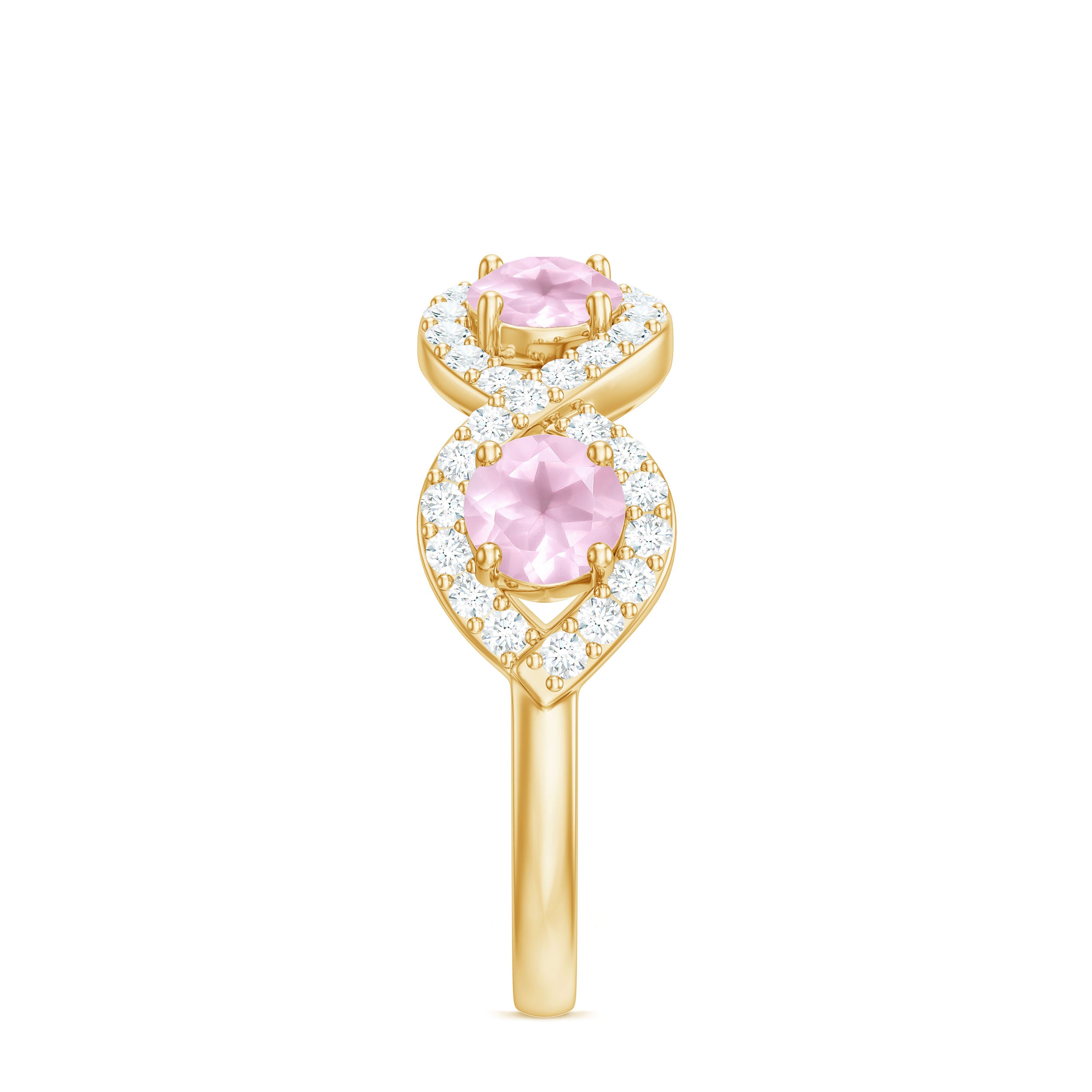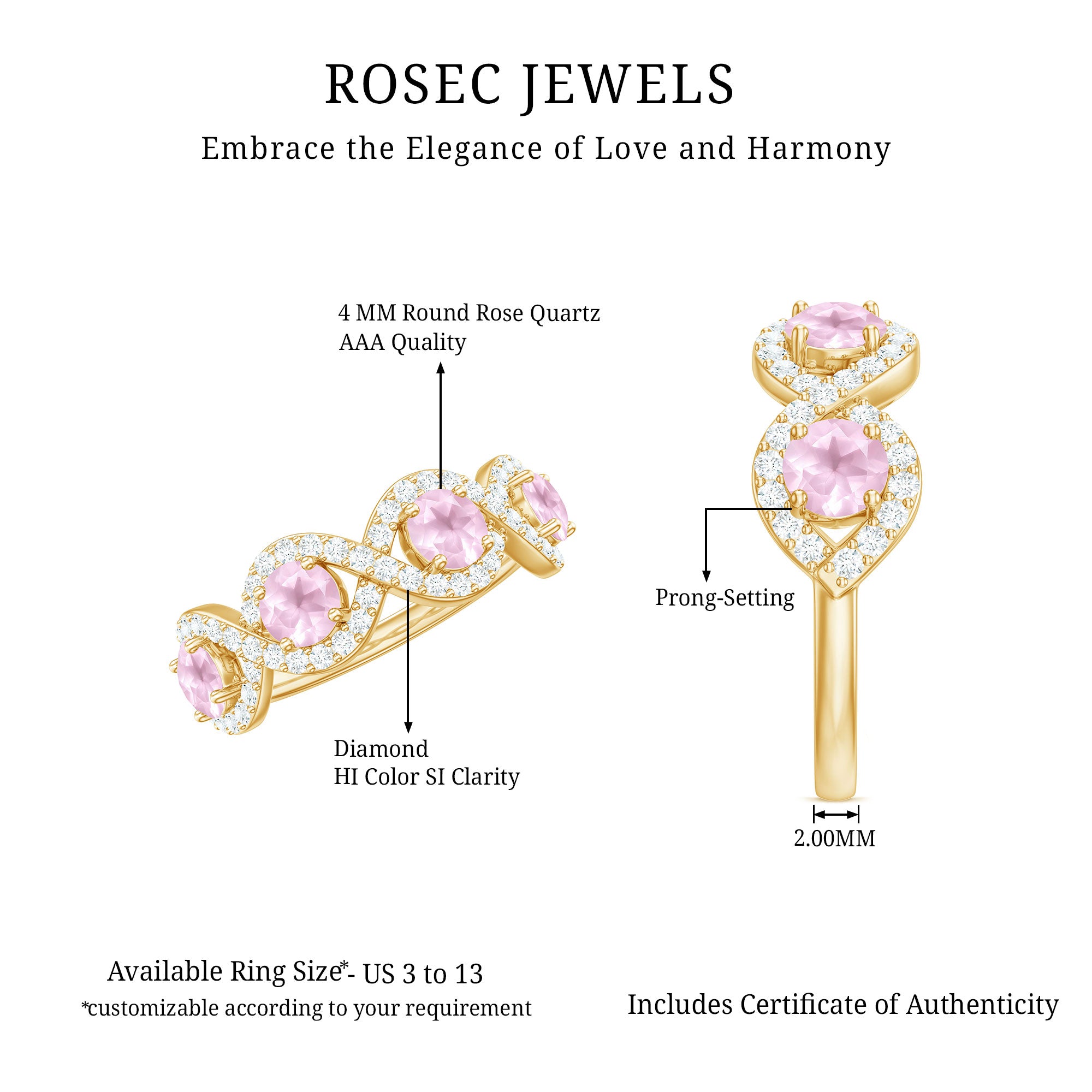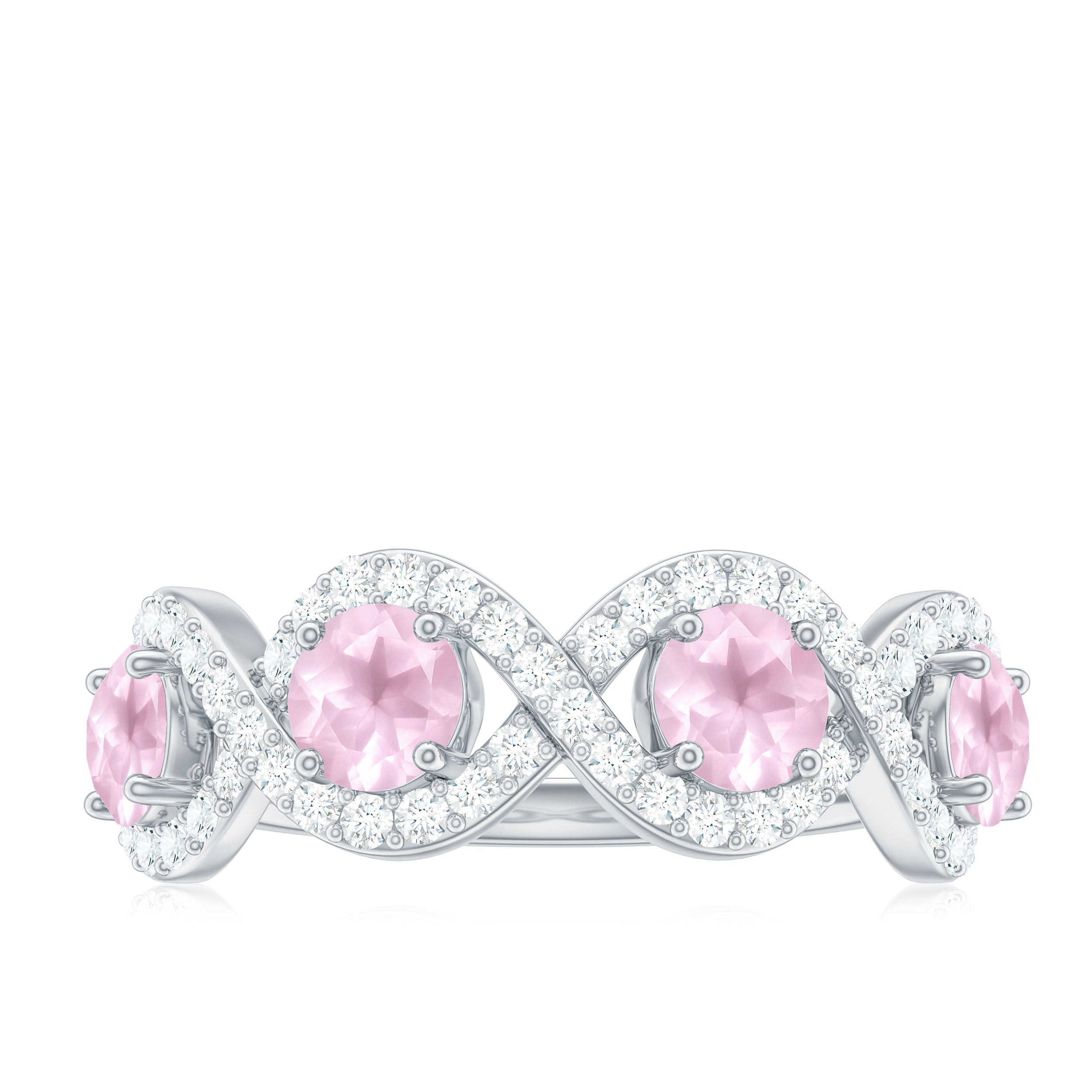Real Rose Quartz and Diamond Braided Half Eternity Ring