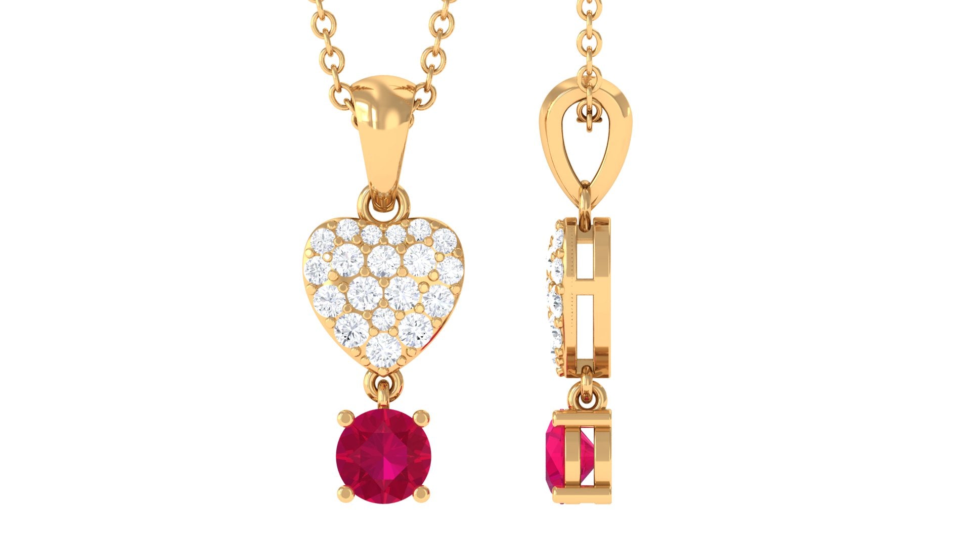Elevate your style with this exquisite pendant featuring a Ruby drop and a heart-shaped design adorned with pave-set Diamond. The vibrant red hue of the Ruby combined with the sparkling brilliance of the Diamond creates a captivating and romantic piece that is sure to make a statement.