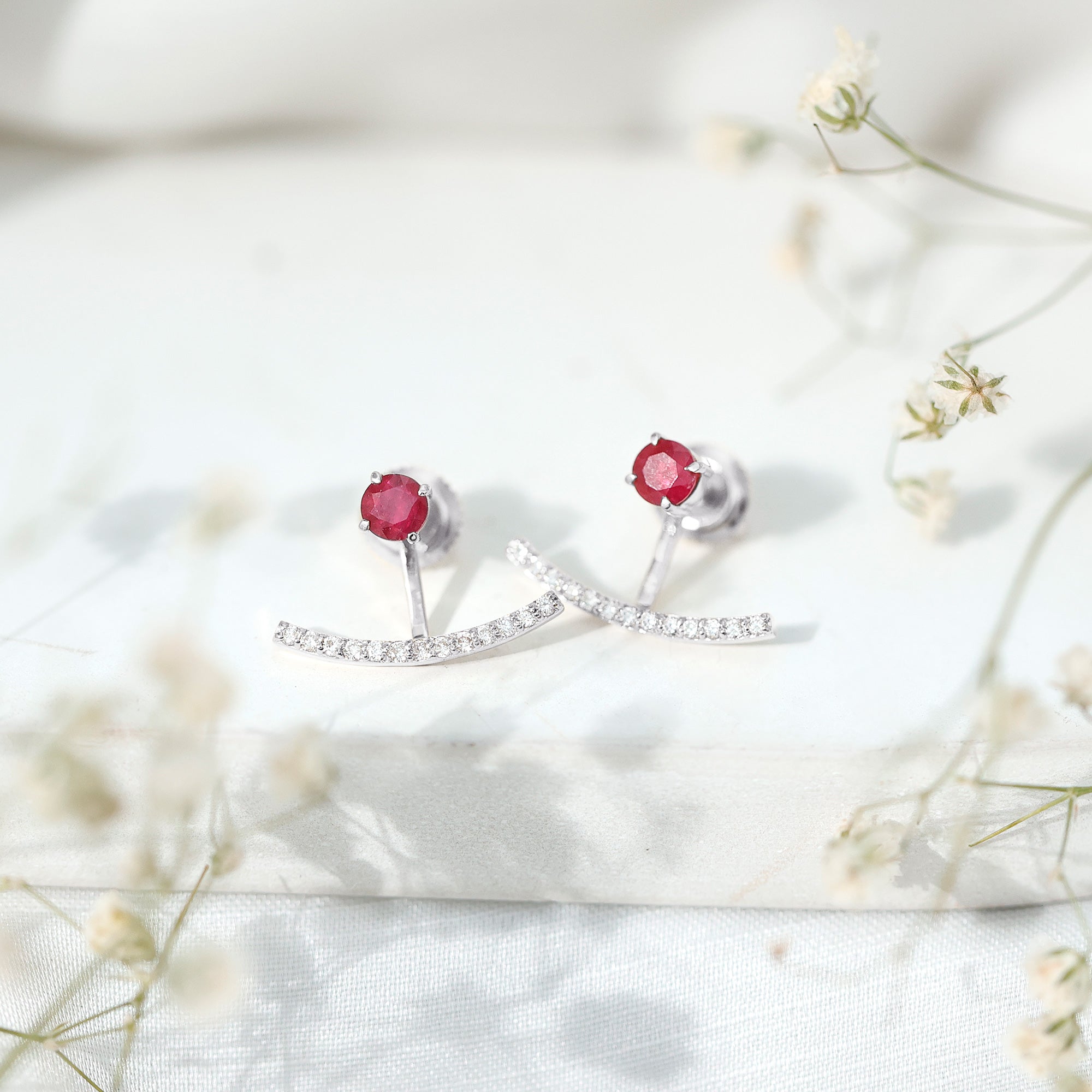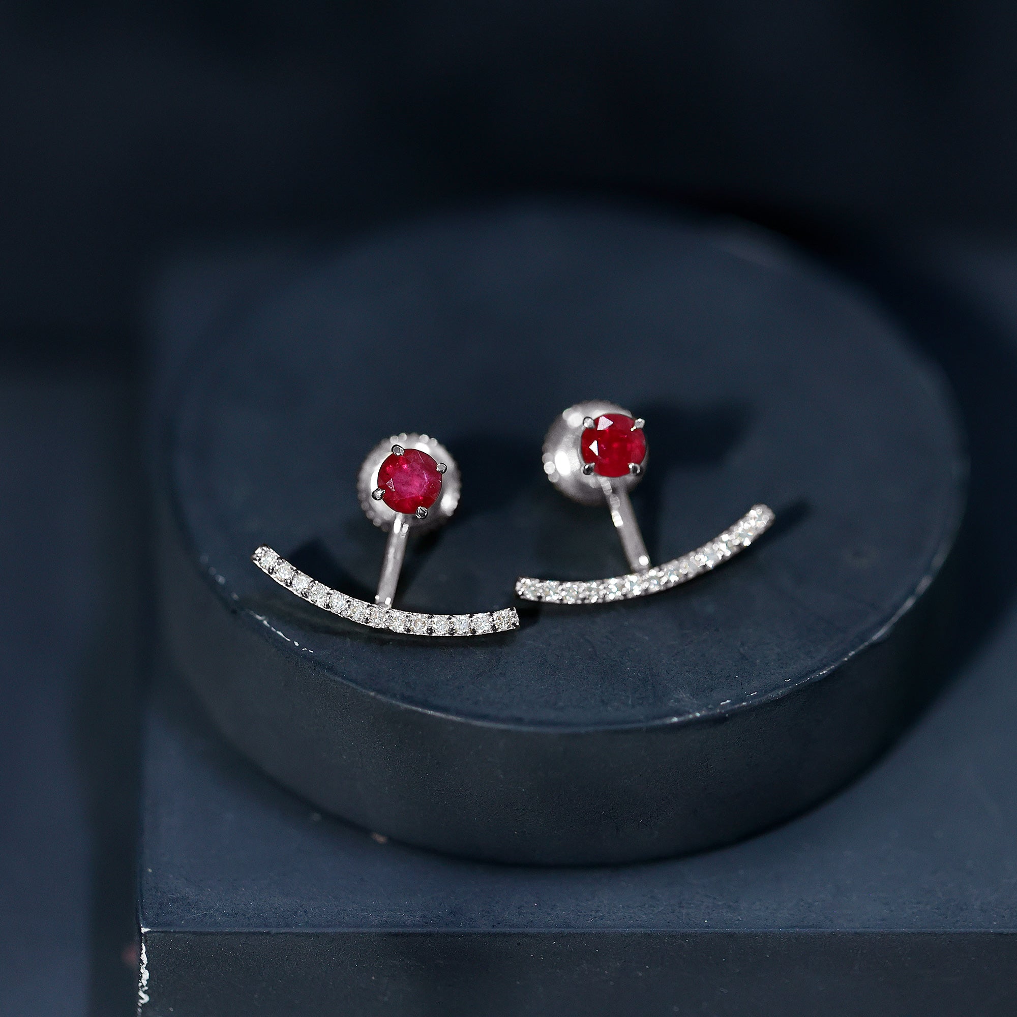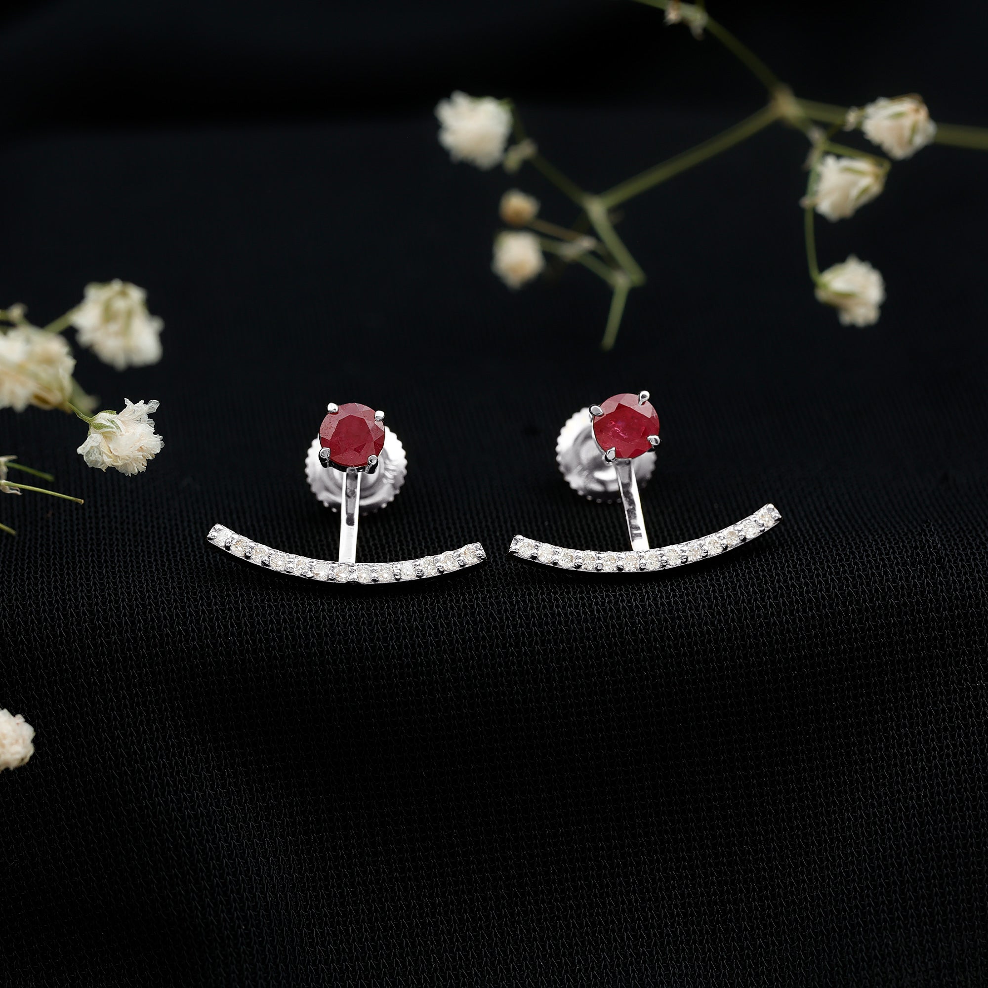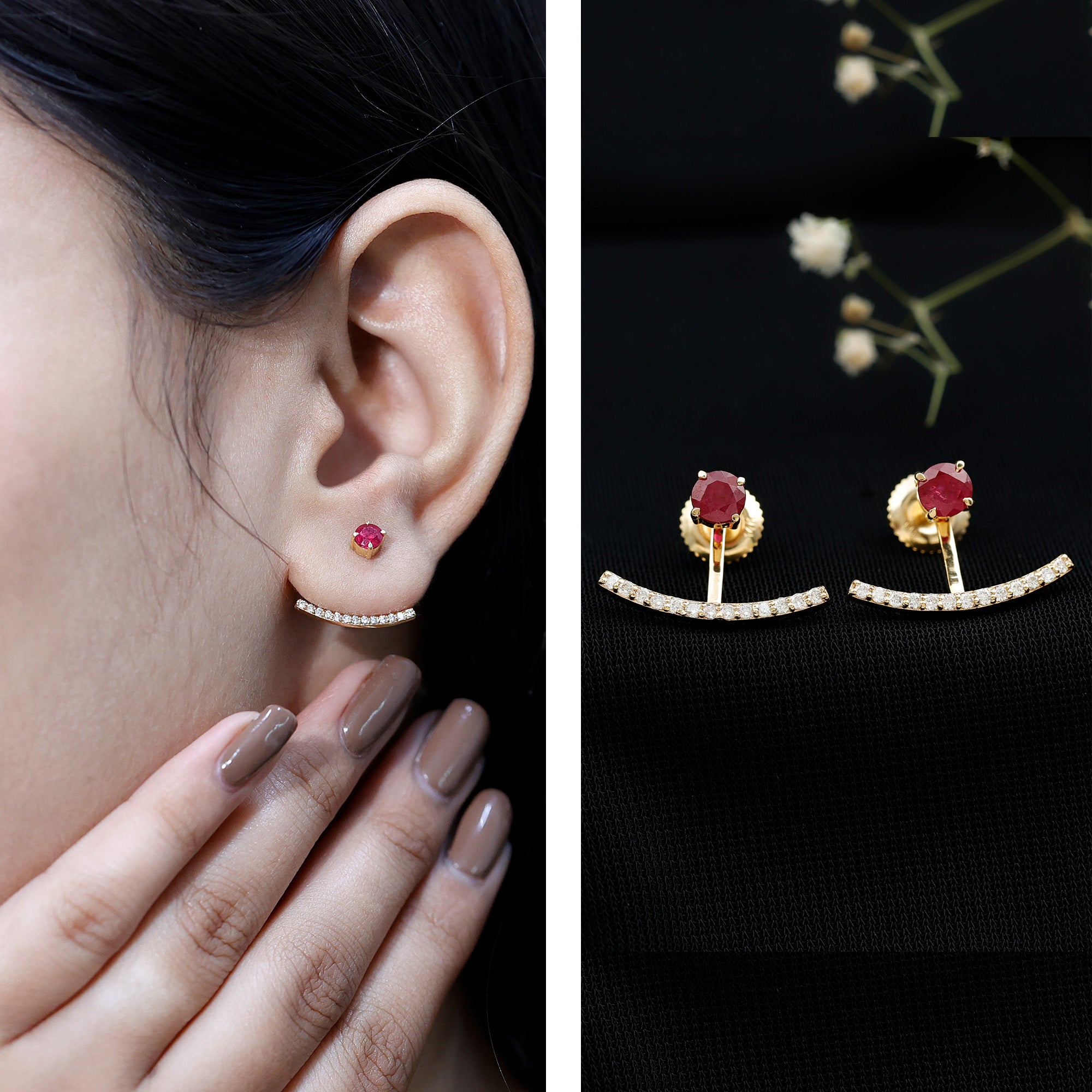 Real Ruby Front Back Earrings with Diamond