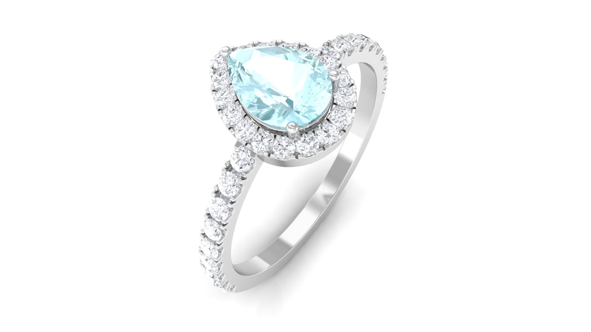 Real Sky Blue Topaz Teardrop Ring with Diamond Halo
