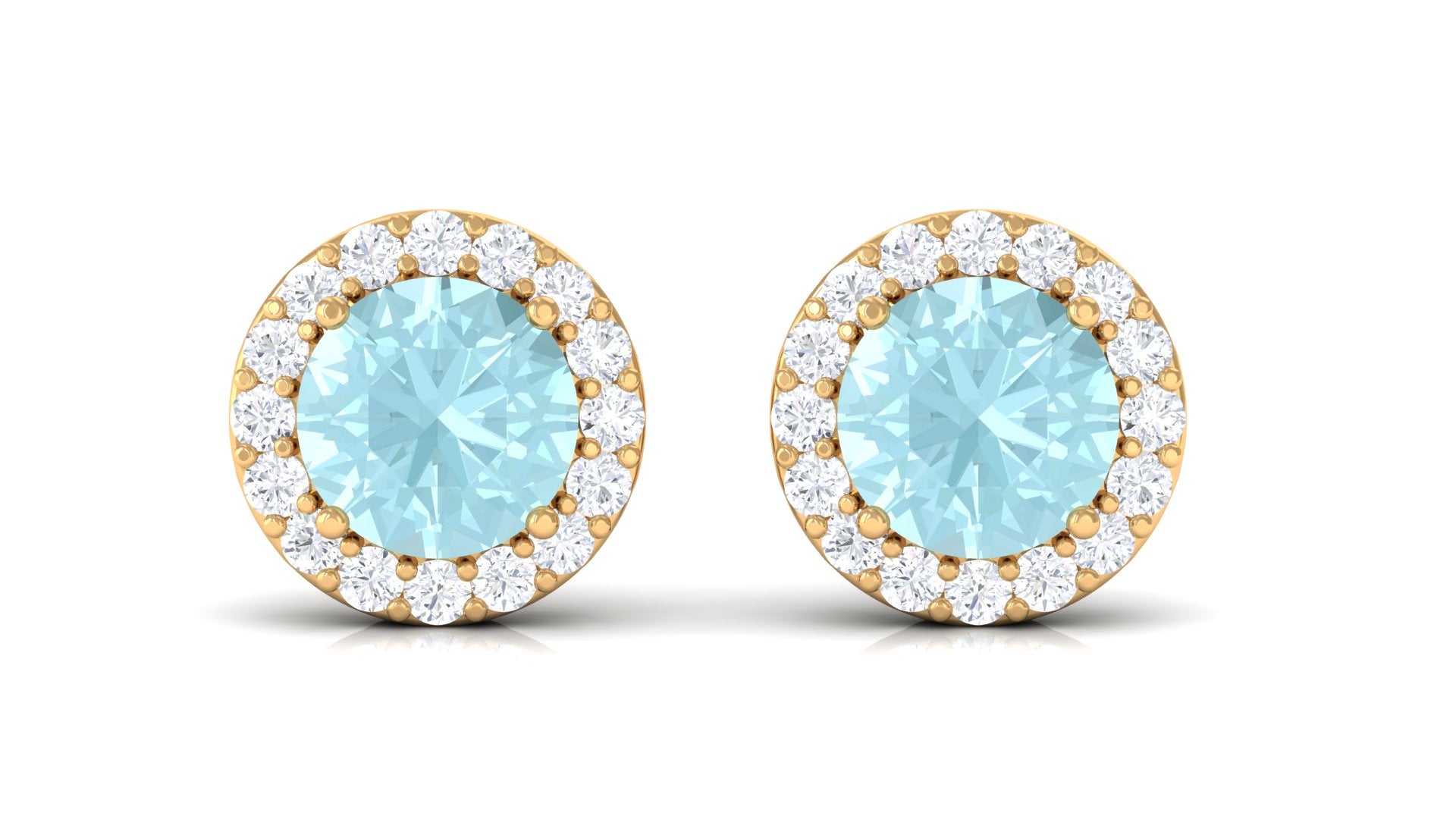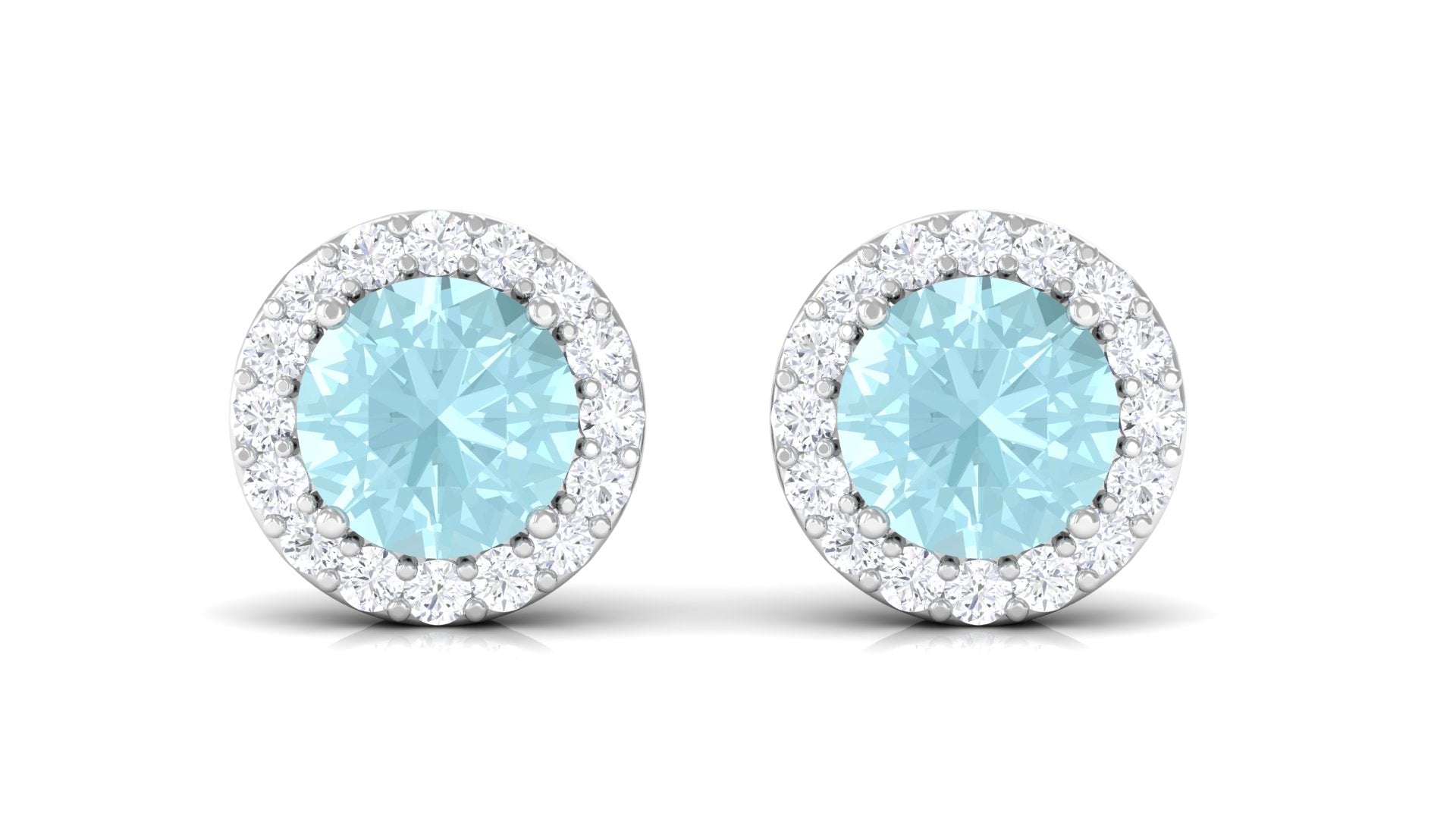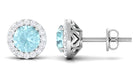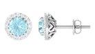 Real Swiss Blue Topaz and Diamond Halo Stud Earrings