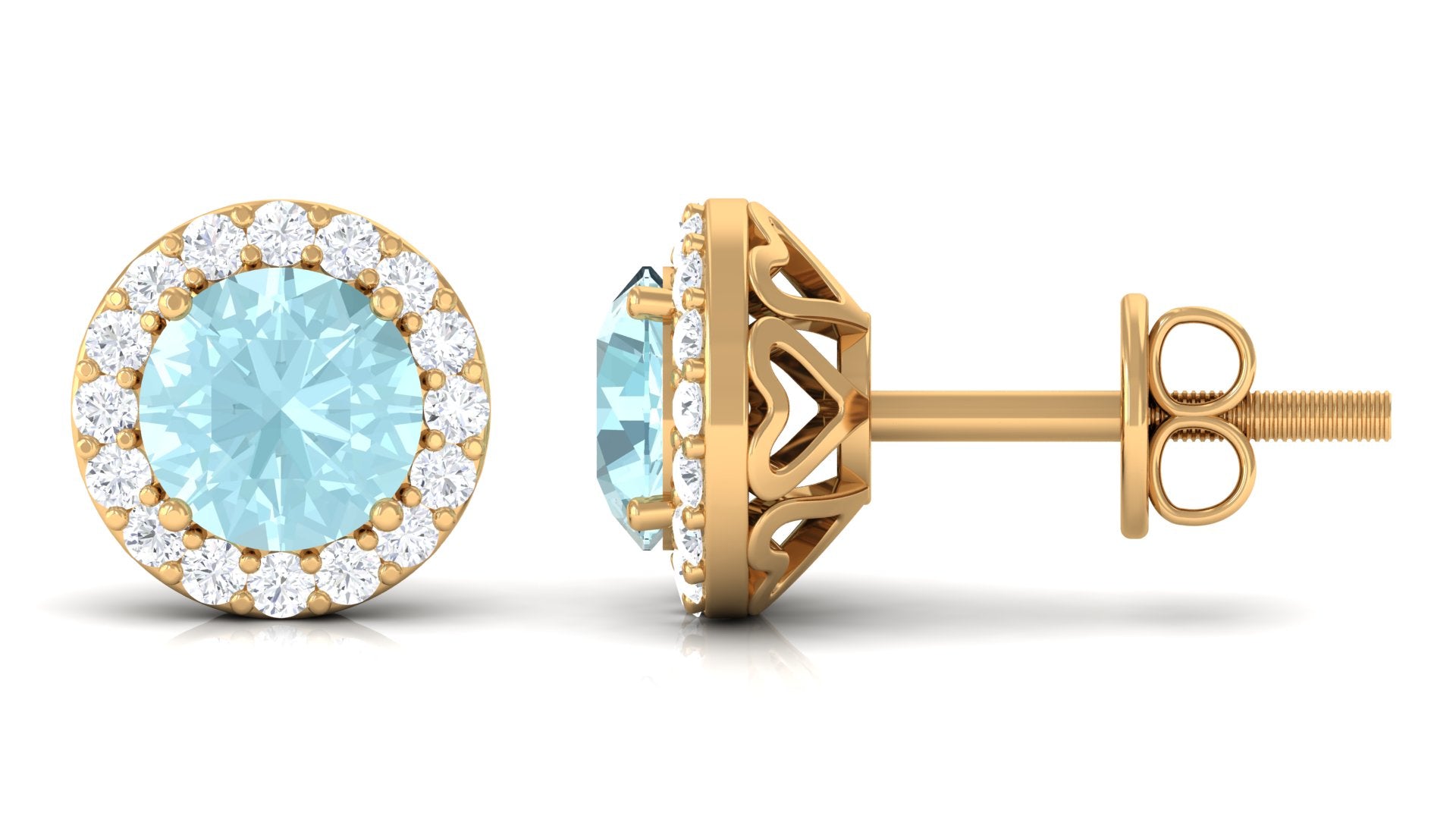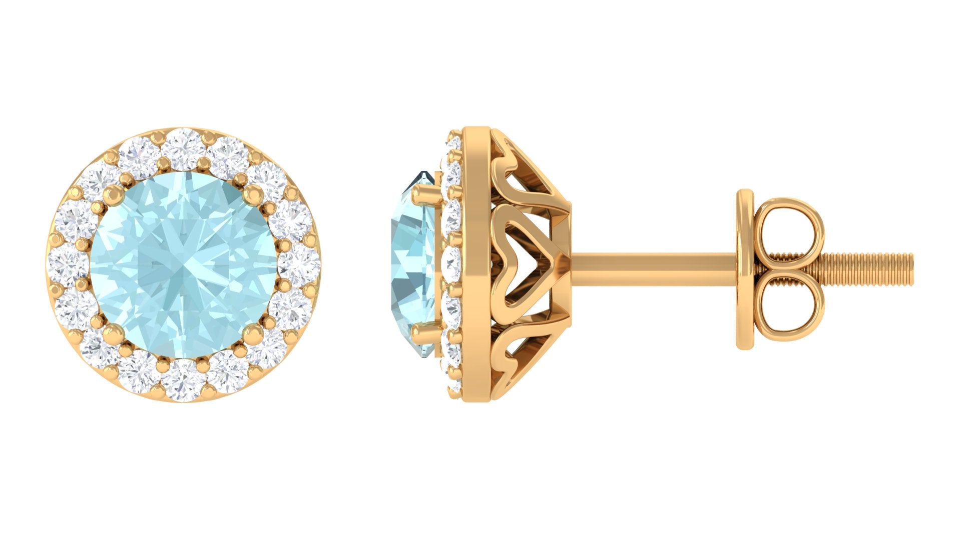 These simple and elegant Halo Stud Earrings have a charm that wont disappoint you. Bejeweled with Round Shape Swiss Blue Topaz in the center secured by Prong Setting while dainty Round Diamonds adding a touch of sparkle, these Topaz Earrings are an eye-catching pair of jewelry that will definitely make you stand out from the crowd. The Stud Earrings For Women are beautifully crafted in Solid Metal. Get these Swiss Blue Topaz Earrings for your special person as it will be a pleasant addition to her jewelry wardrobe.