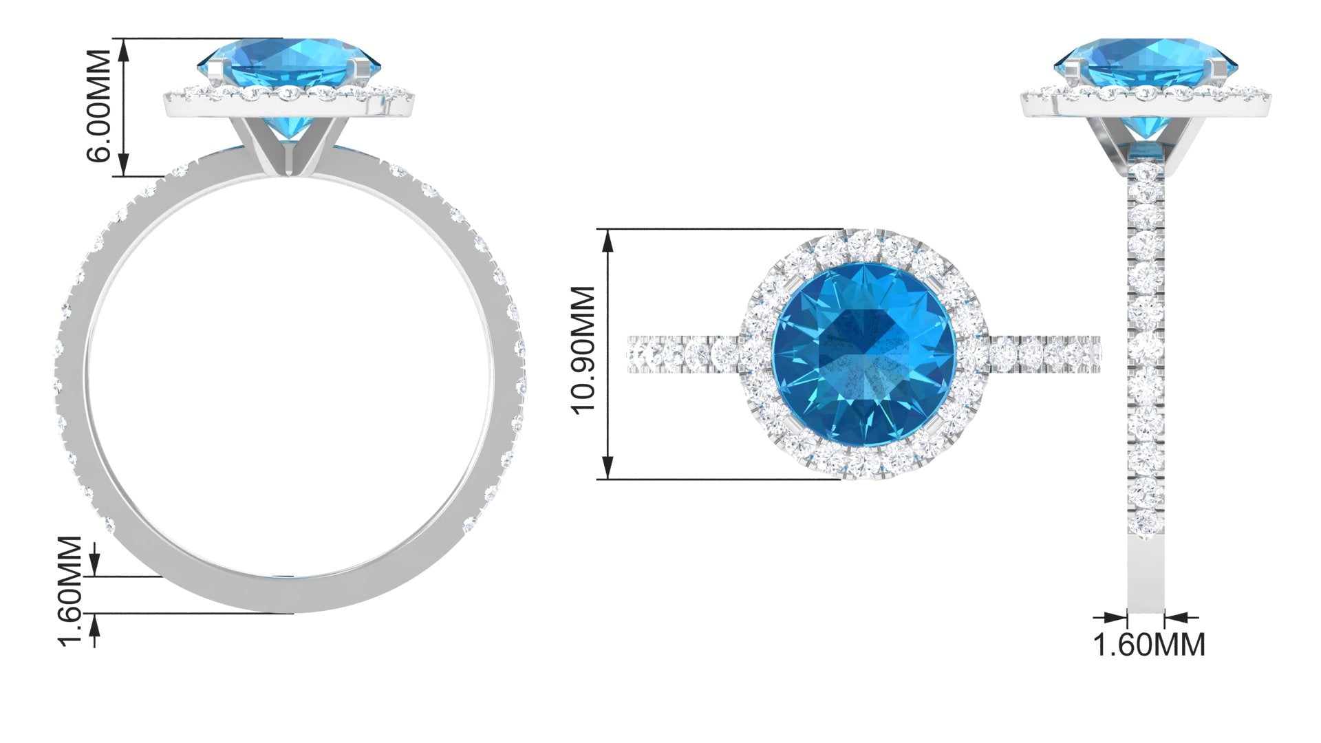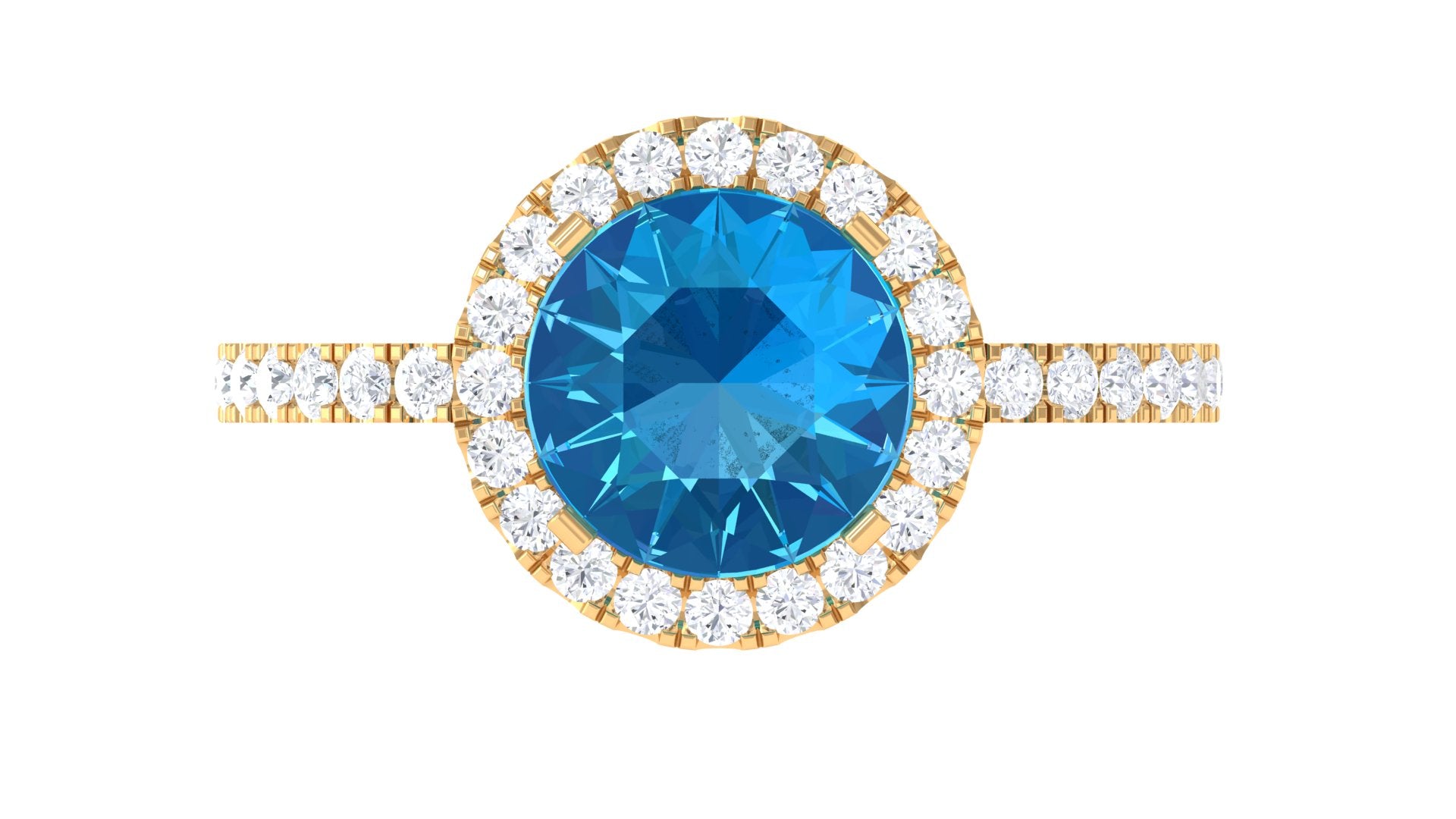 Choose a timeless piece for your special someone with this Classic Floating Halo Ring featuring a Round Shape Swiss Blue Topaz and Diamond. This Swiss Blue Topaz Engagement Ring is an adorable choice for a woman, with a total weight of 3.25 Carats and AAA quality. Our gemstones are certified and undergo strict quality checks for your peace of mind.