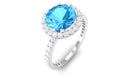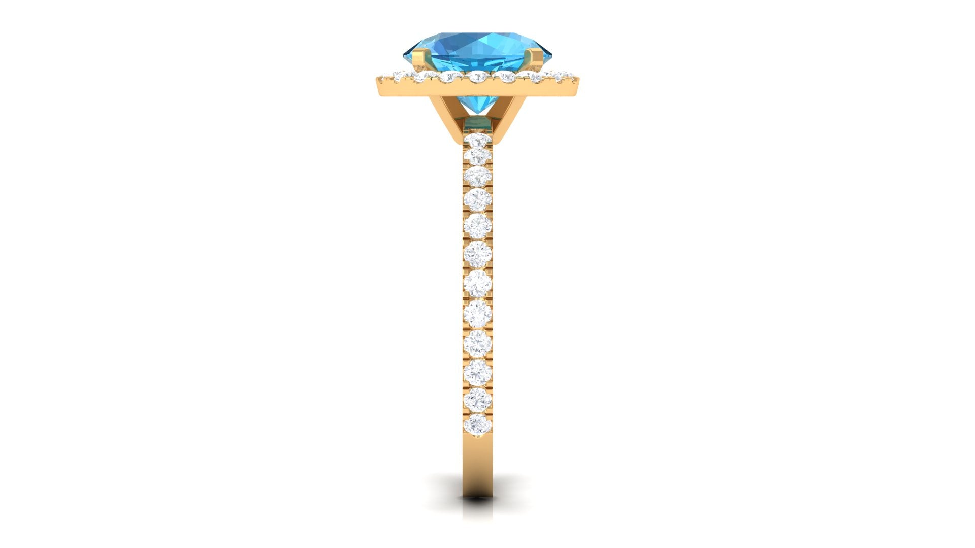 Real Swiss Blue Topaz Halo Engagement Ring with Diamond