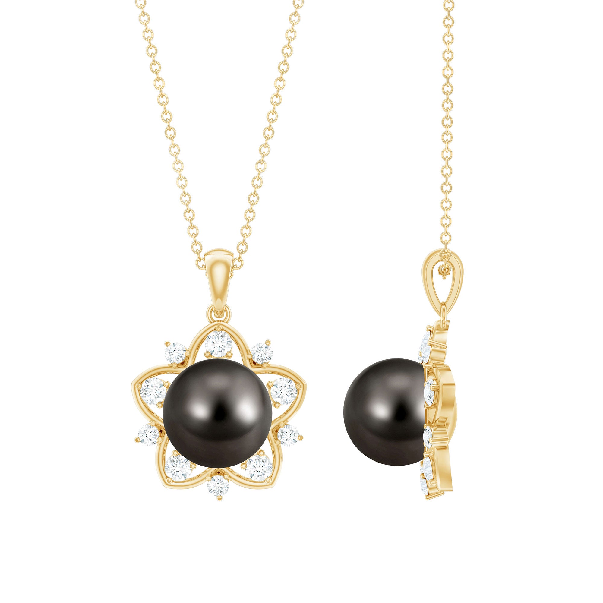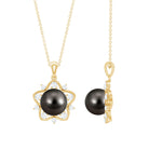 Real Tahitian Pearl and Diamond Star Pendant Necklace