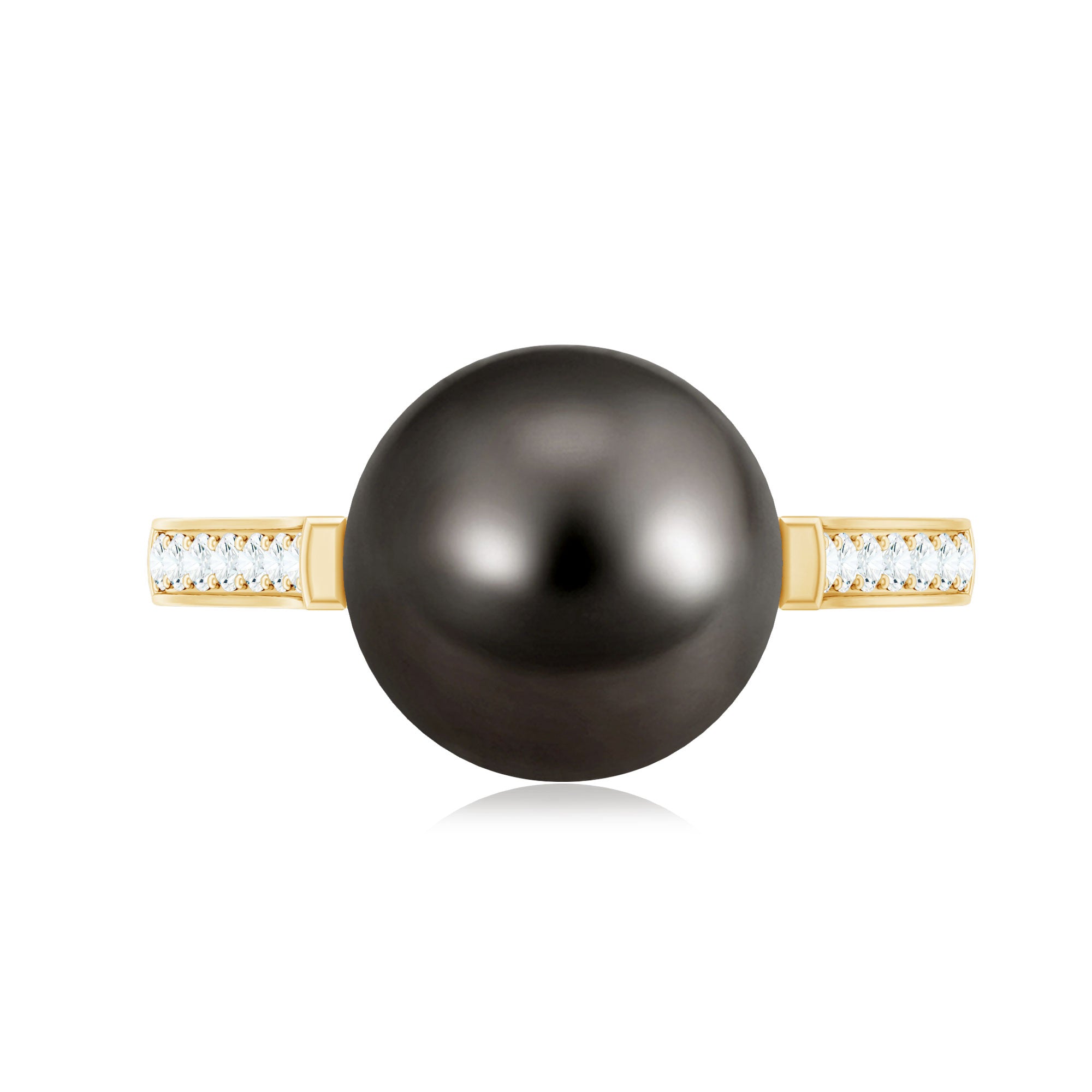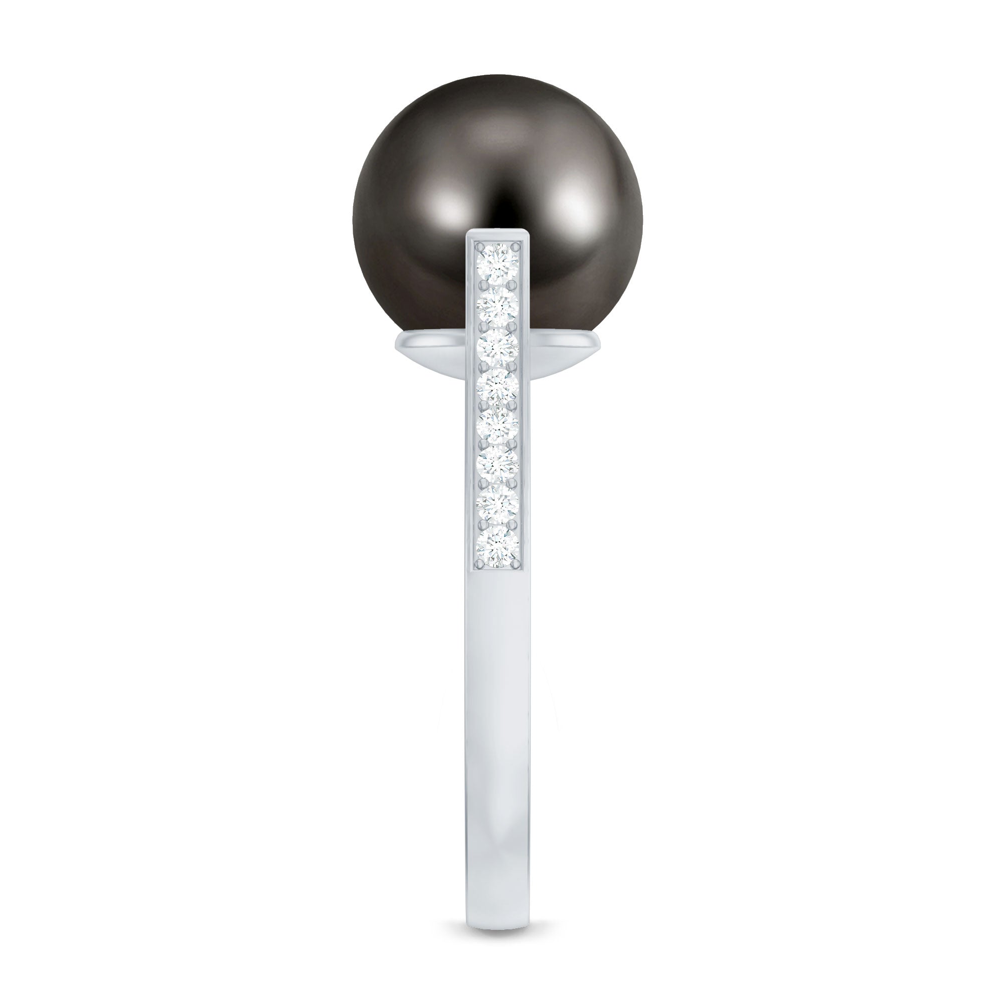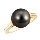 Real Tahitian Pearl Solitaire Engagement Ring with Diamond