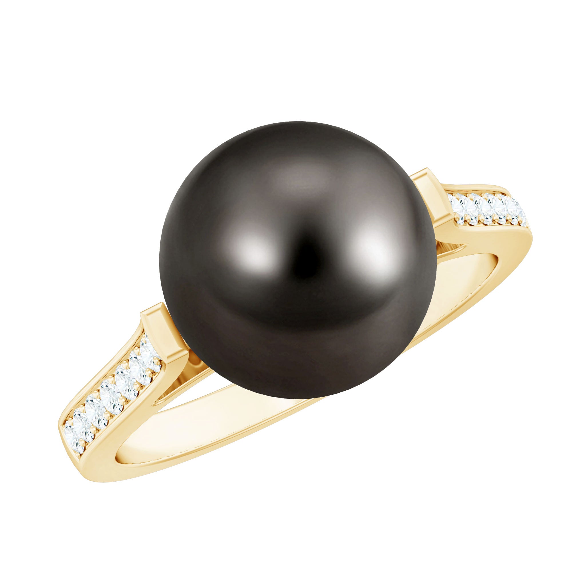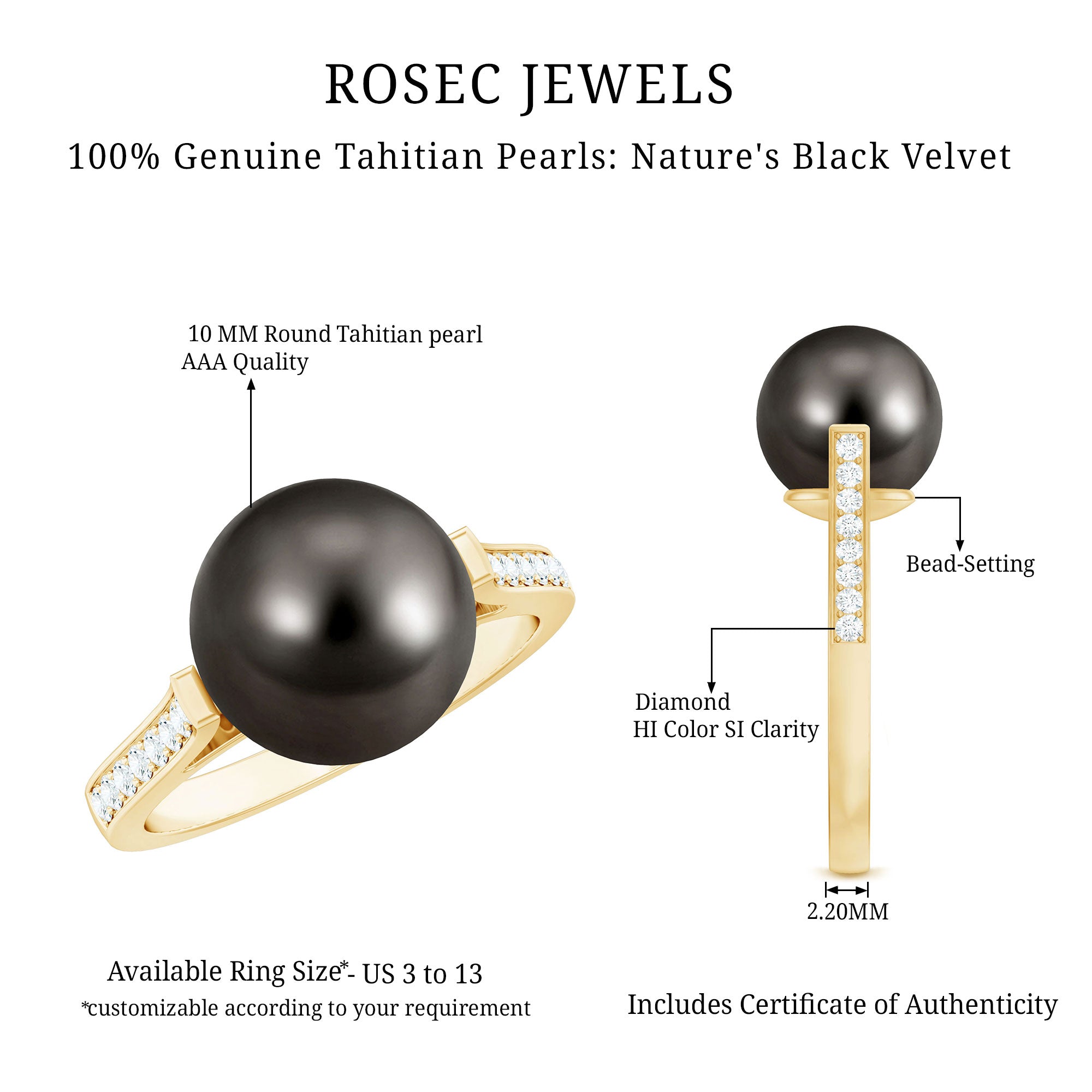 This exquisite real Tahitian pearl solitaire engagement ring with diamonds is a symbol of your eternal love and commitment. This solitaire engagement ring has a 10 MM round-shaped Tahitian pearl gemstone in the center with sparkling diamond side stones in a bead-set setting. If you are planning to make your engagement special and unique then this ring is just the perfect option for you. This ring is more than just a piece of jewelry; its a promise of a lifetime of love and adventure.