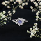 Real Tanzanite and Diamond Flower Ring in Bypass Shank