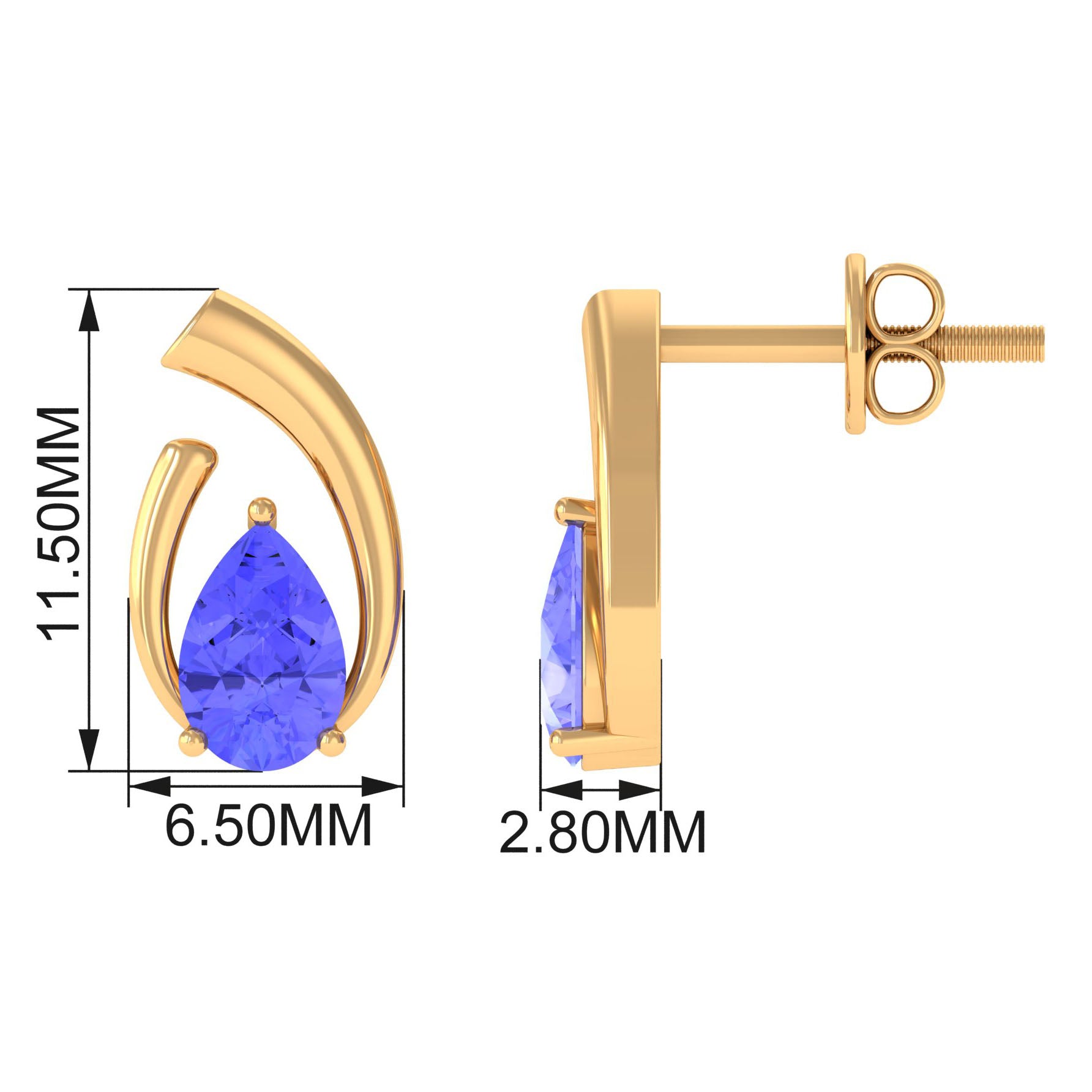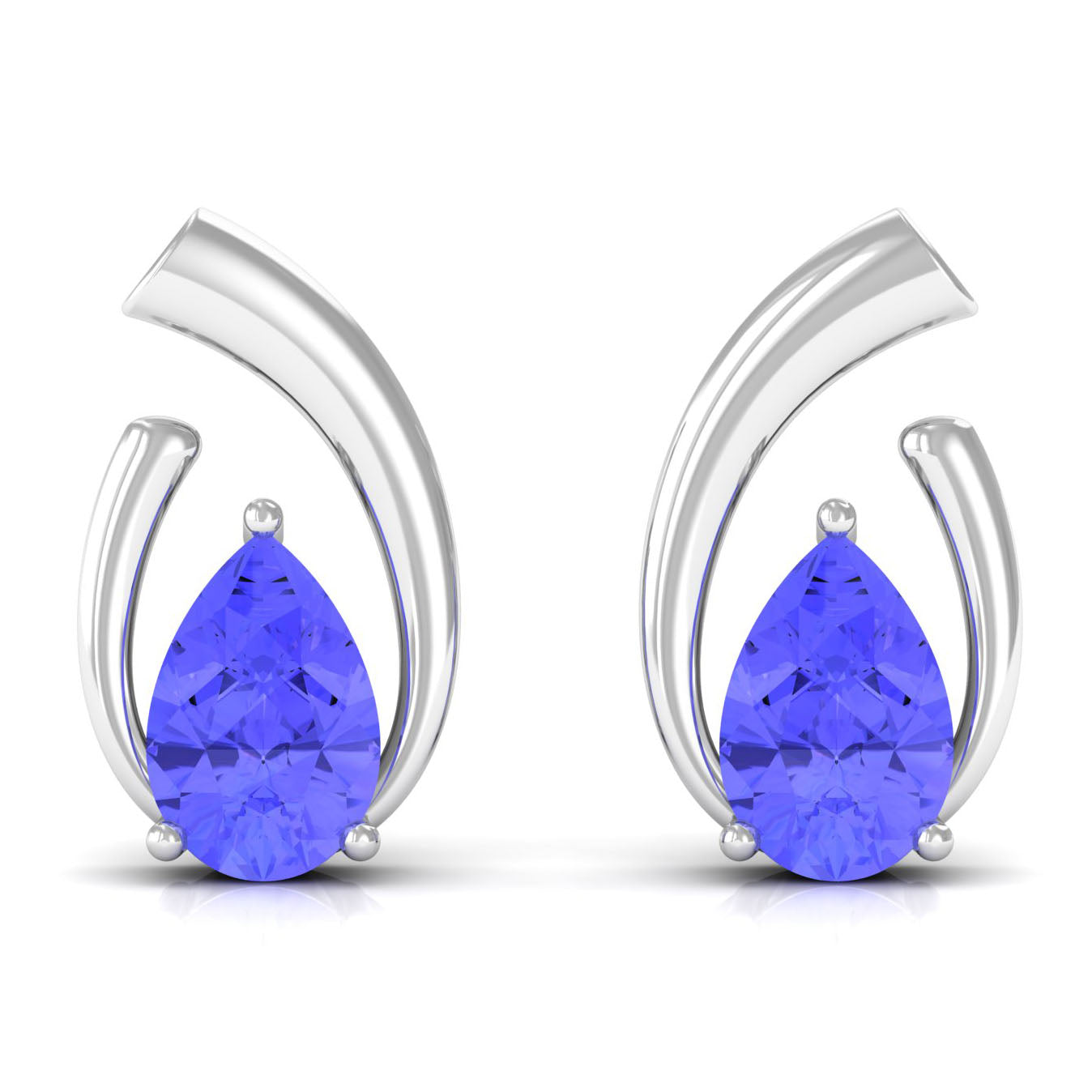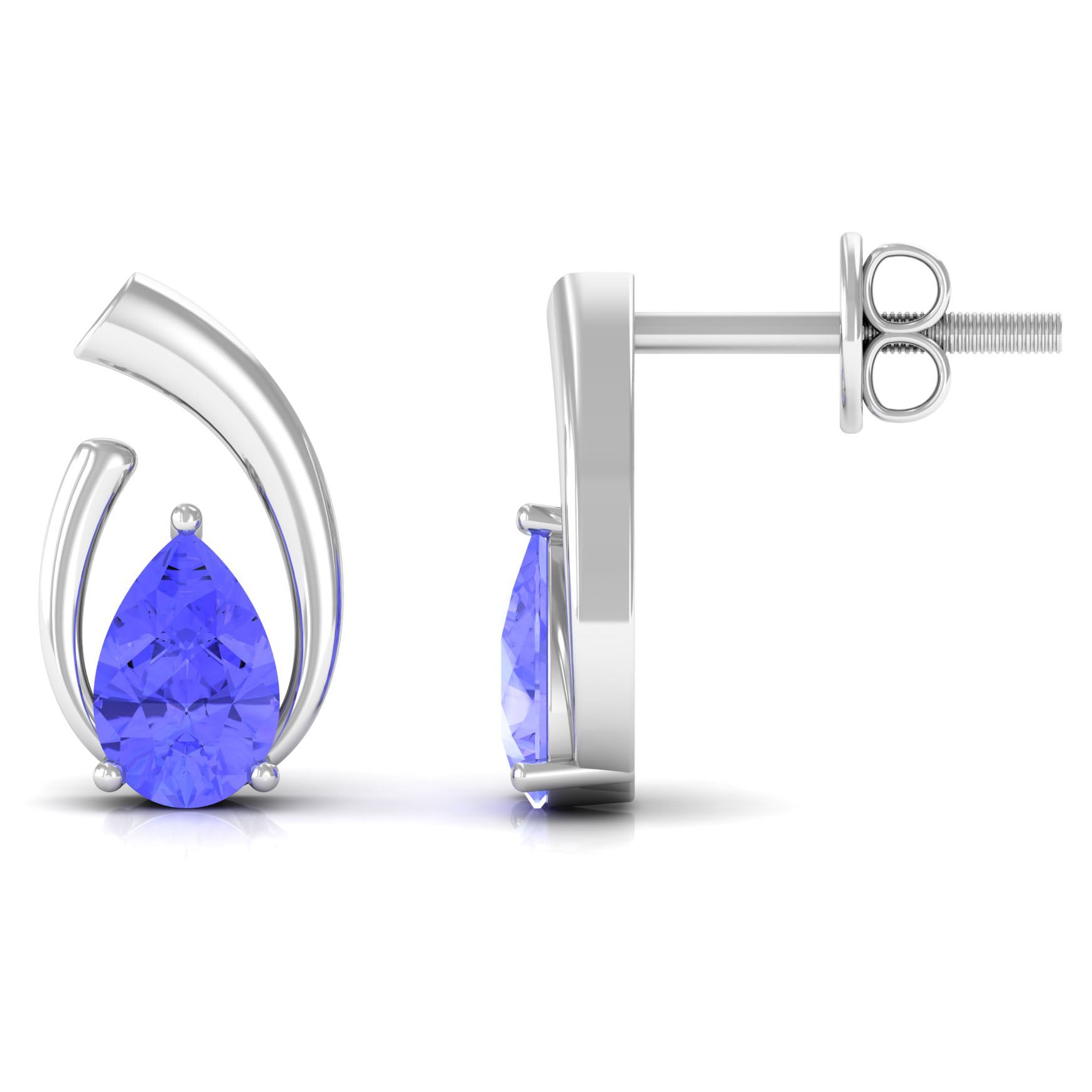 Real Tanzanite Solitaire Teardrop Stud Earrings