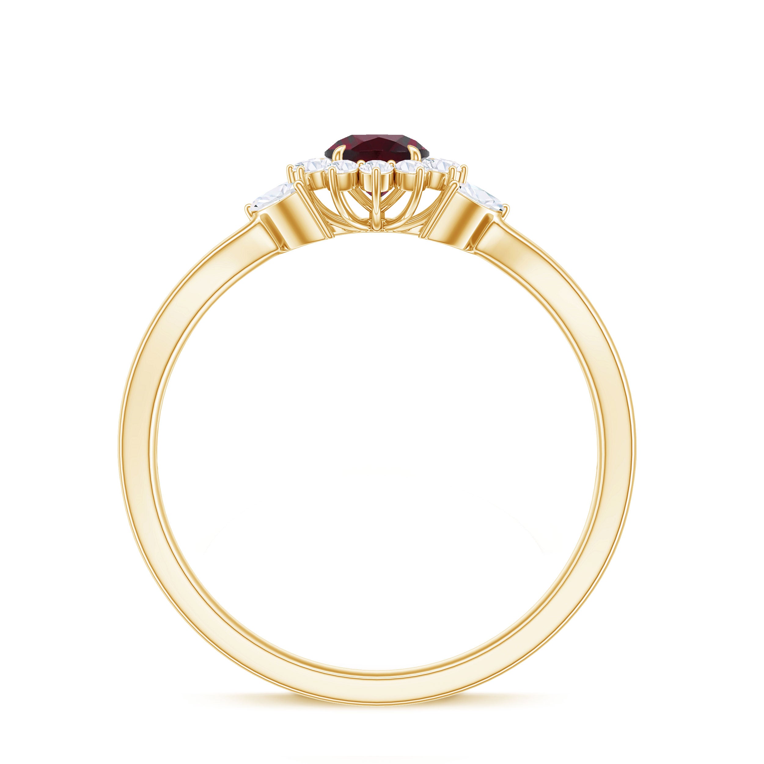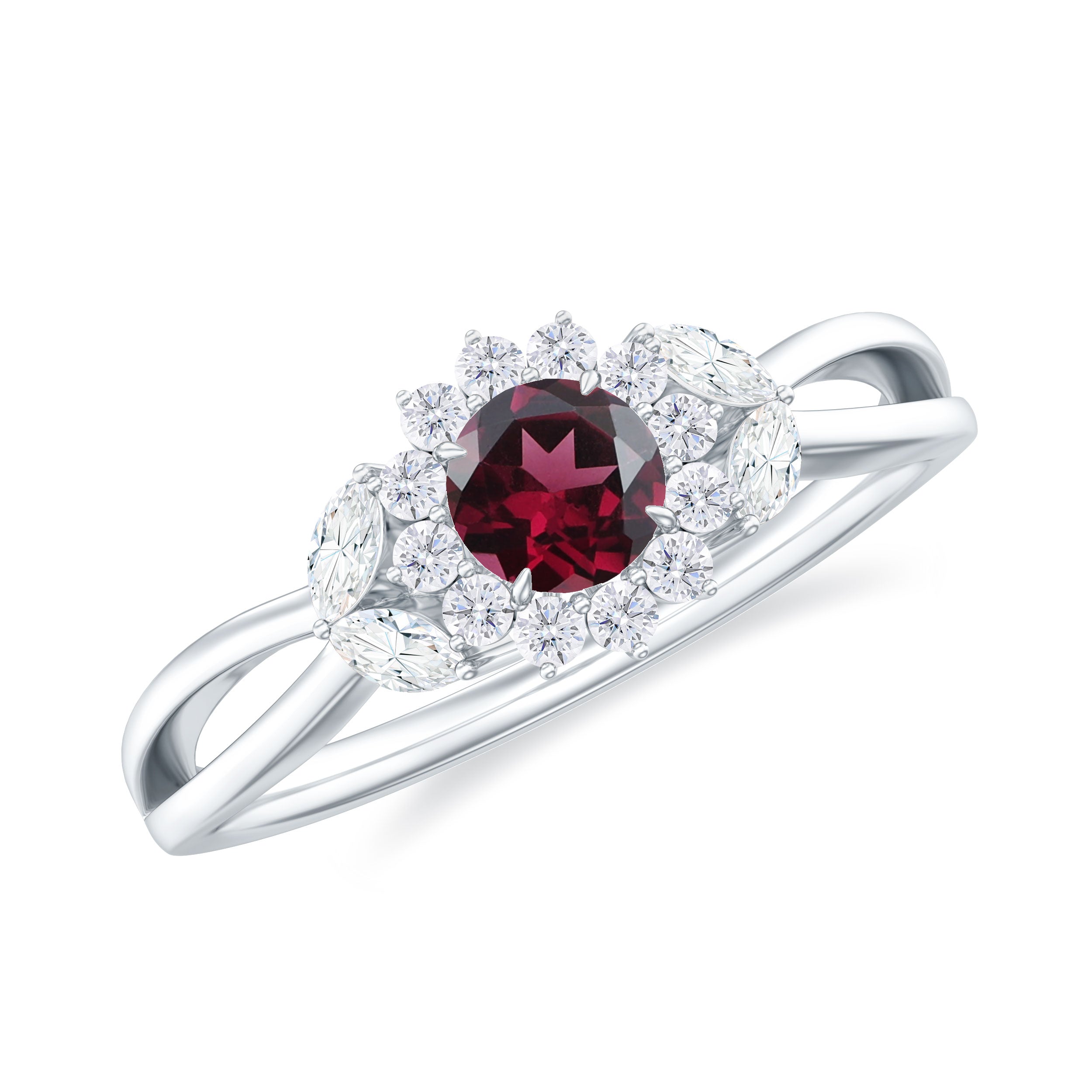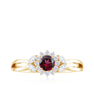 Rhodolite and Diamond Flower Engagement Ring with Split Shank