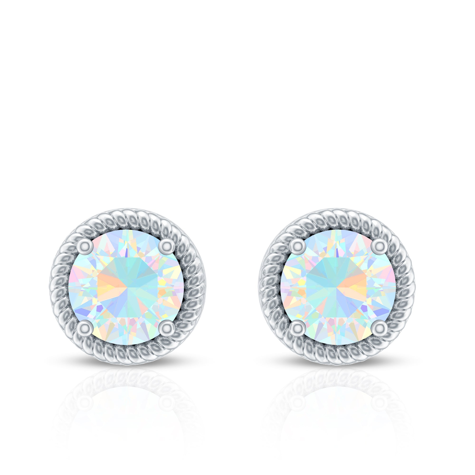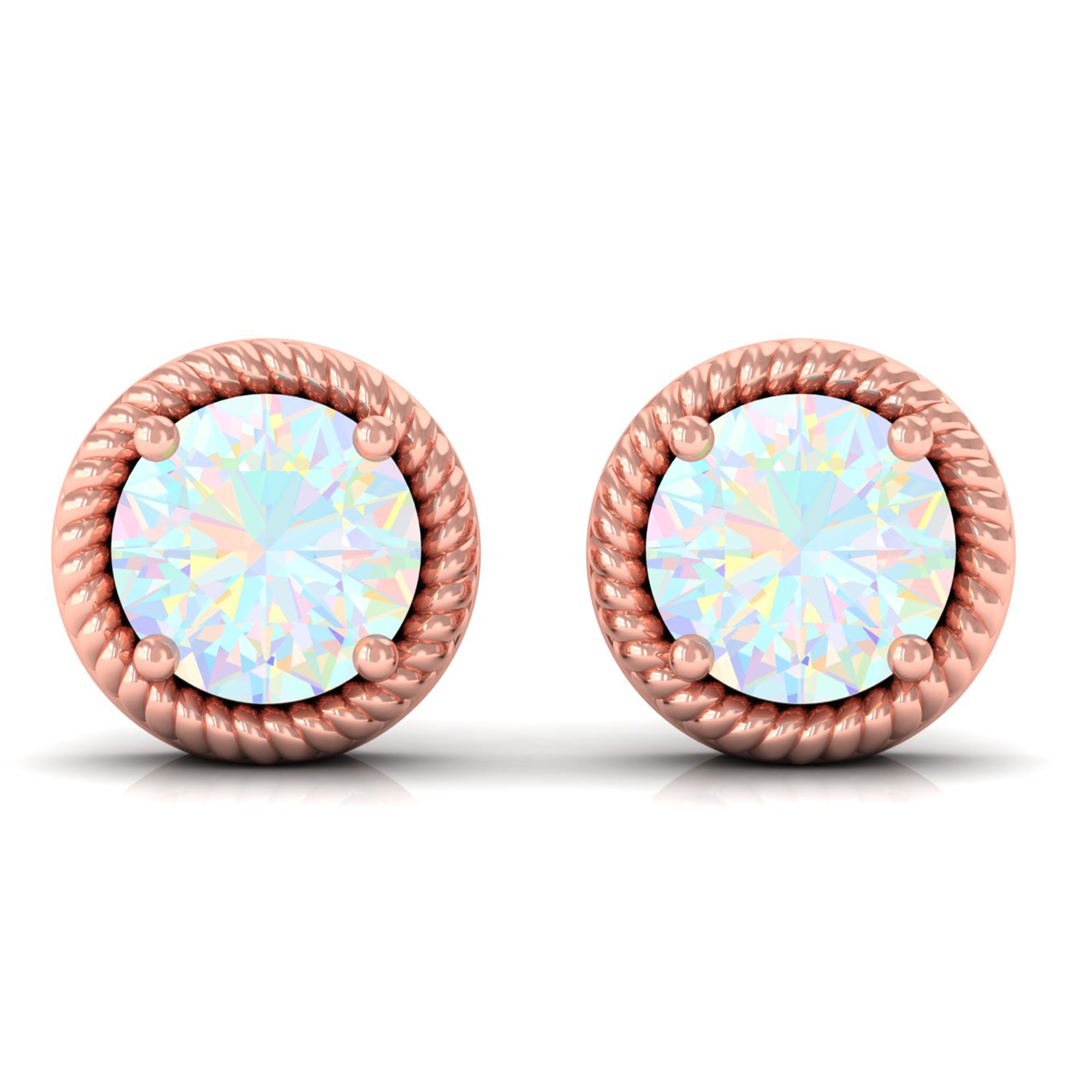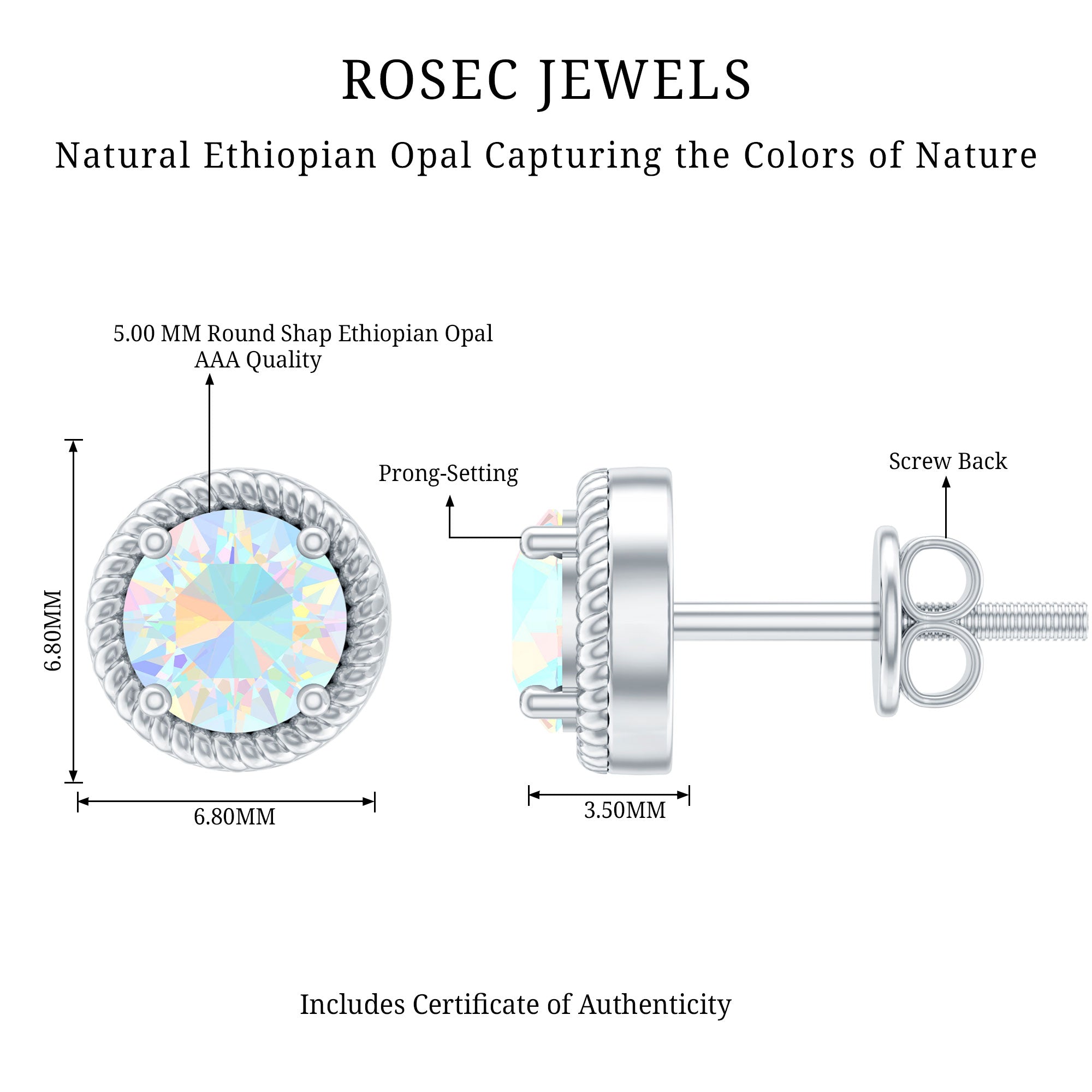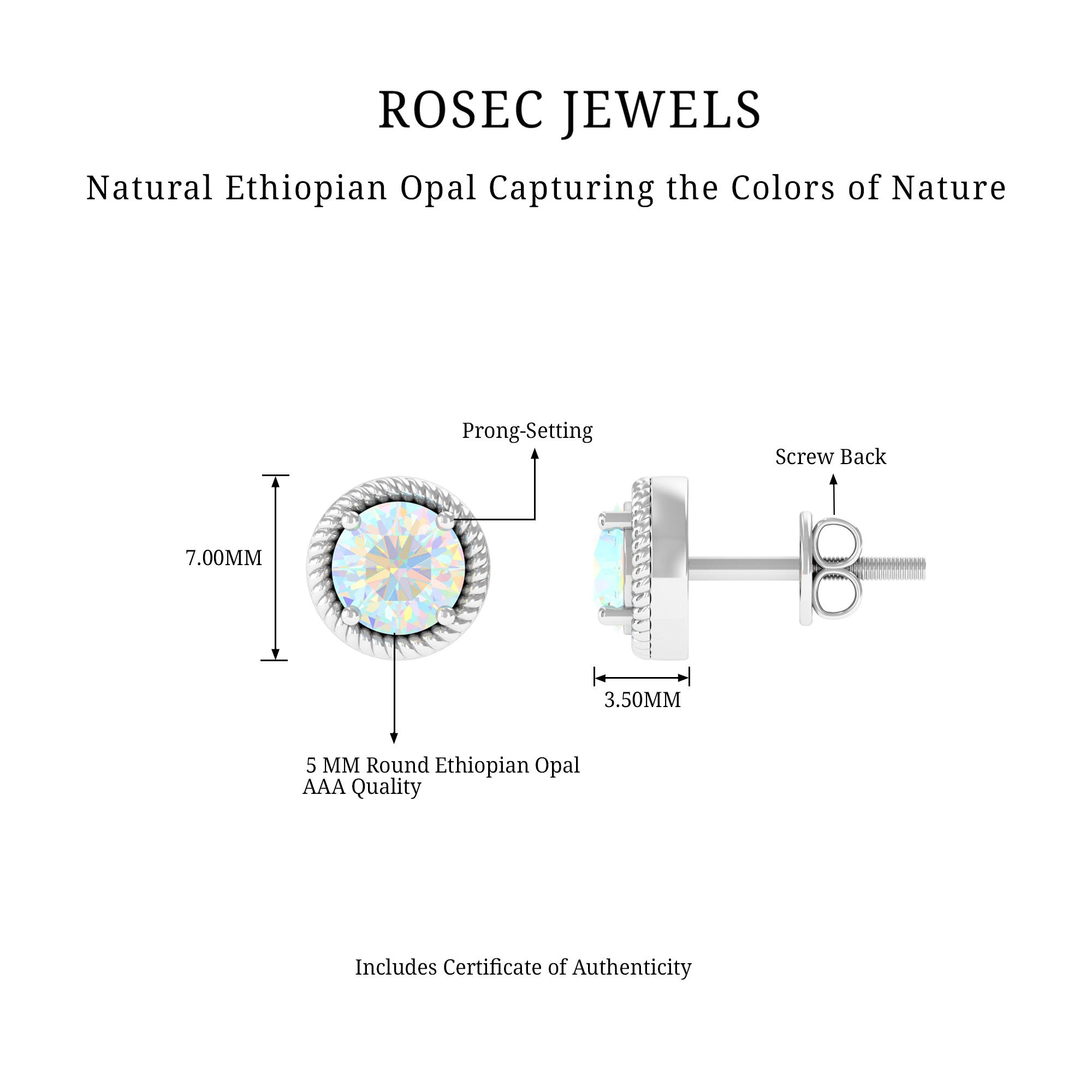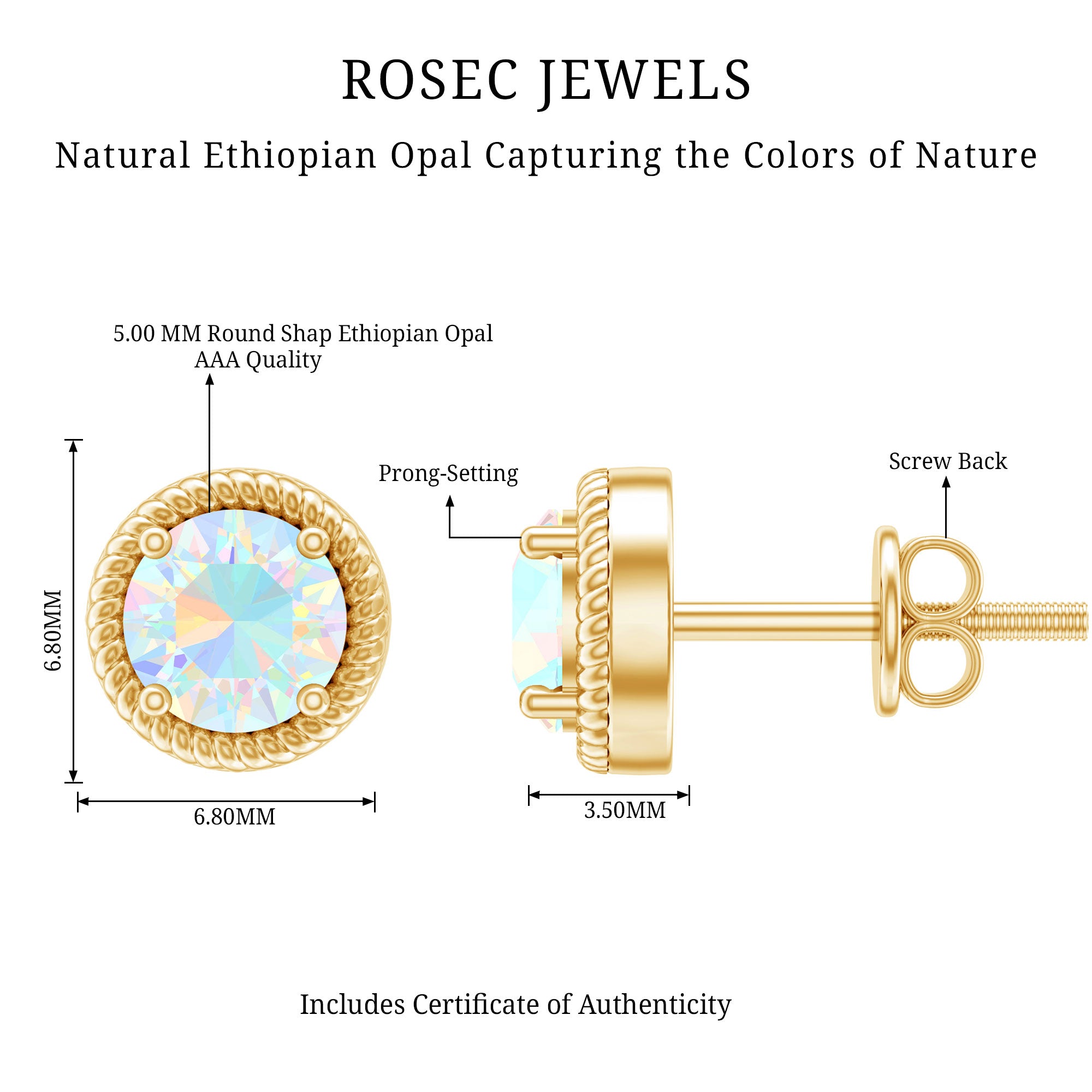 Rope Frame Round Shape Ethiopian Opal Solitaire Stud Earrings in 4 Prong Setting