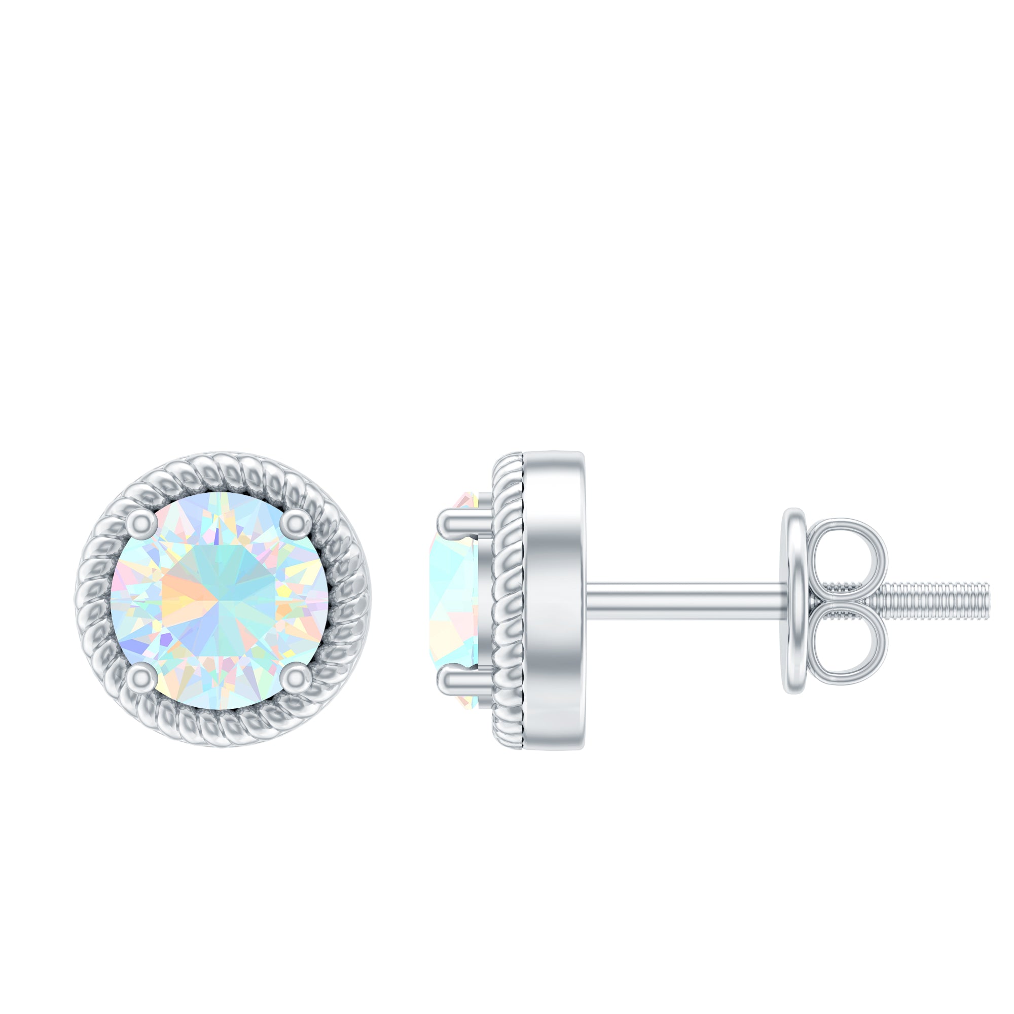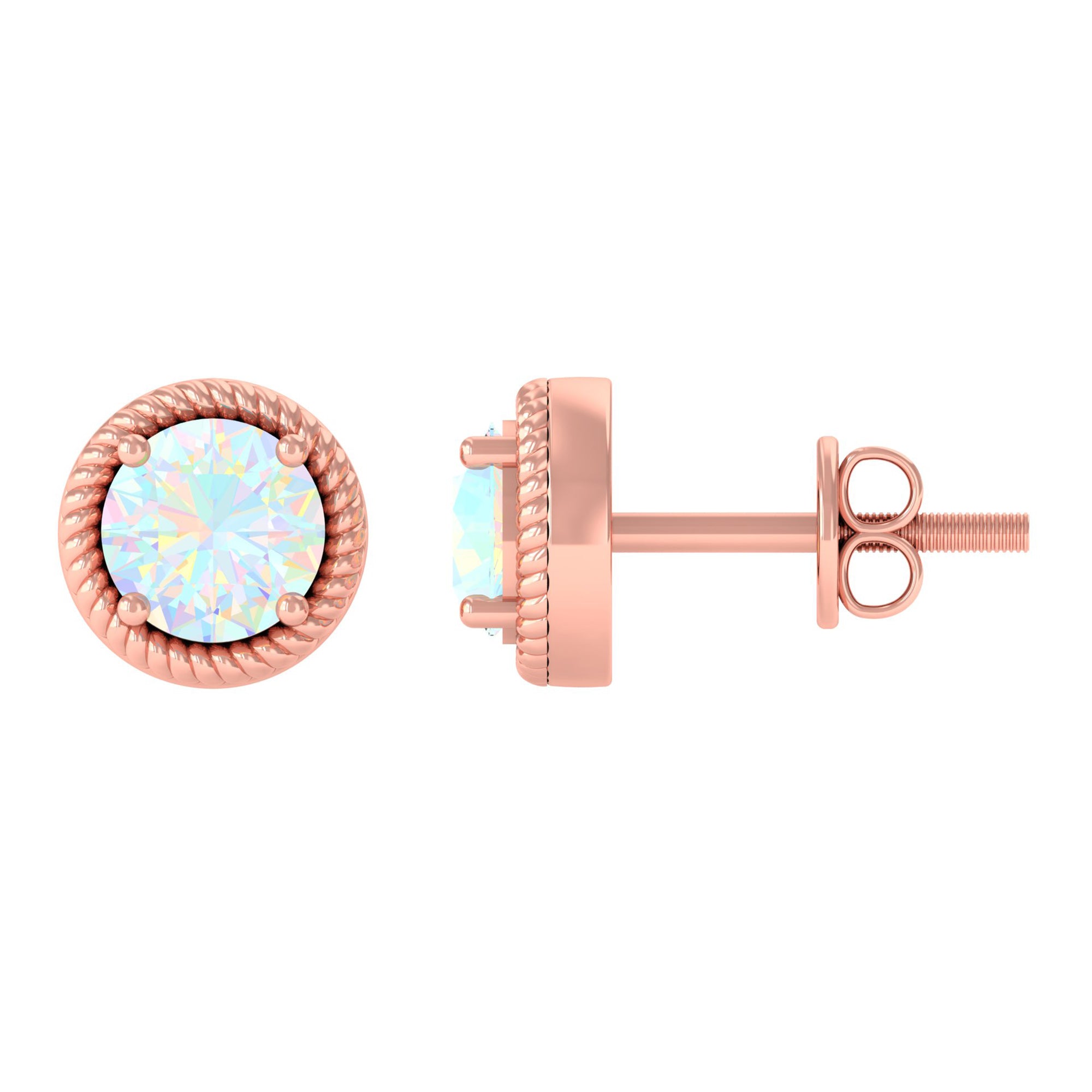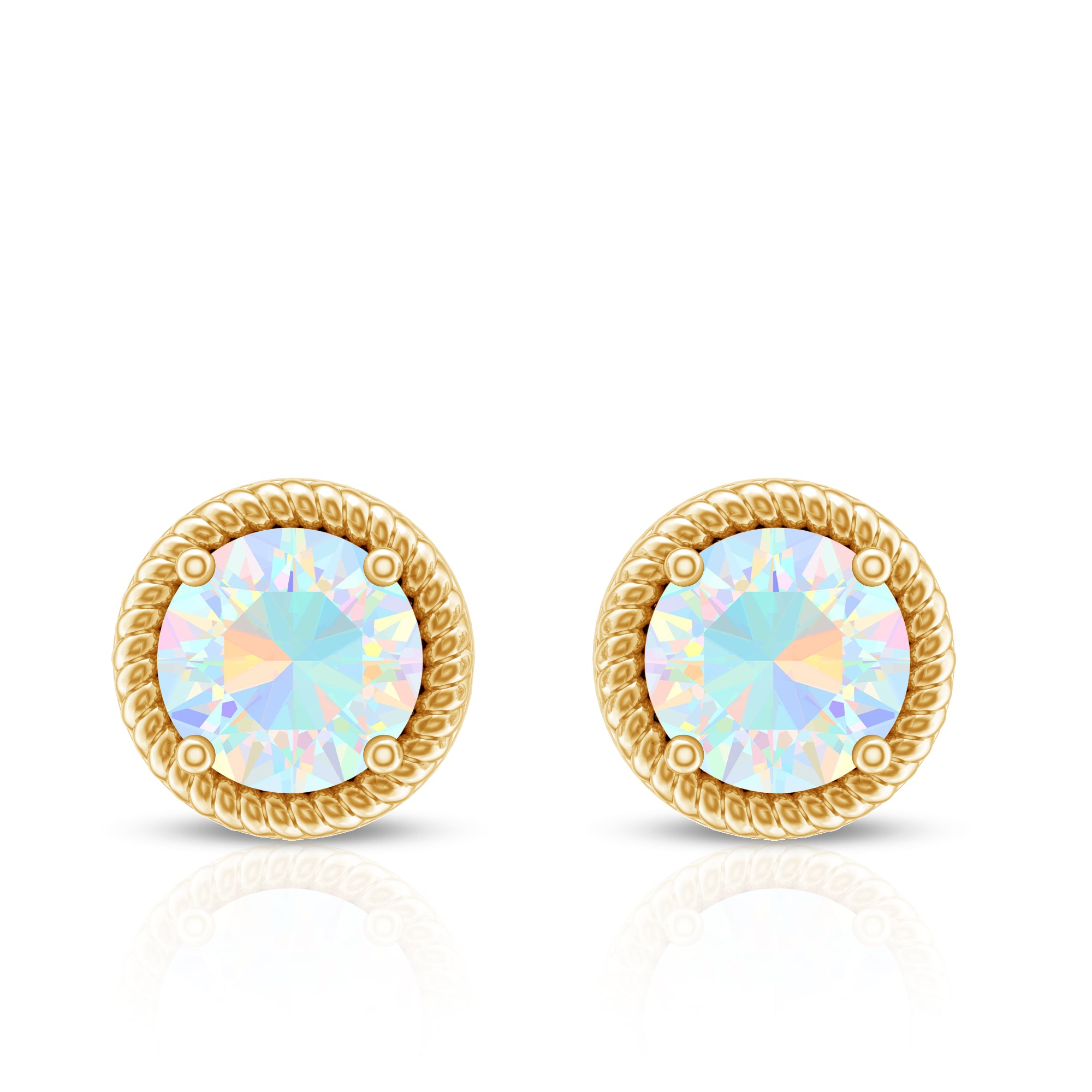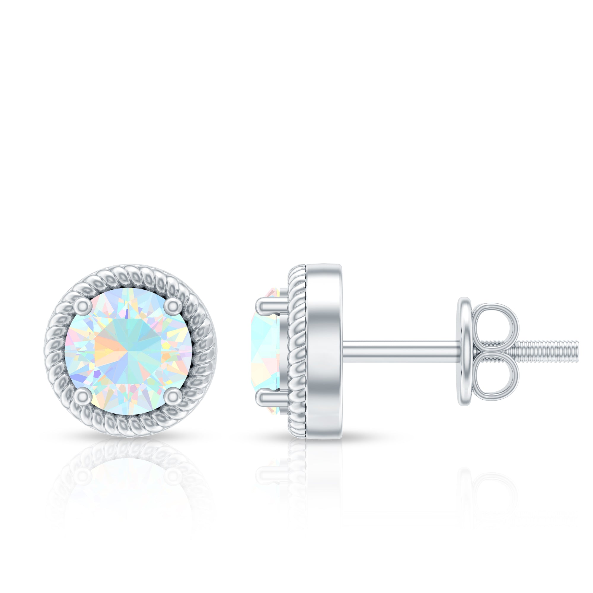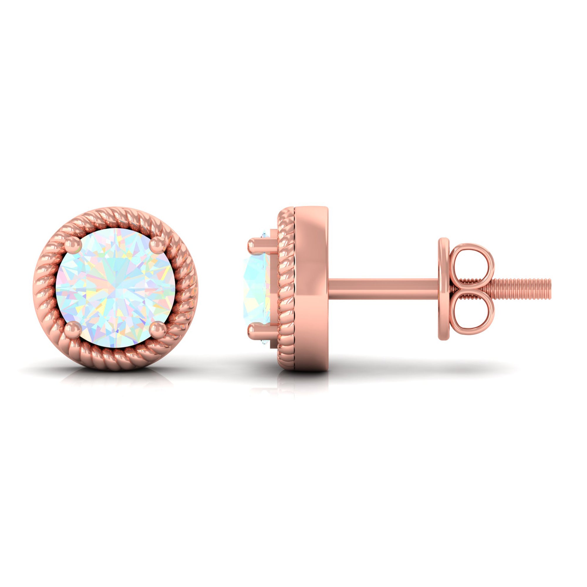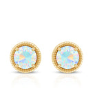 Rope Frame Round Shape Ethiopian Opal Solitaire Stud Earrings in 4 Prong Setting