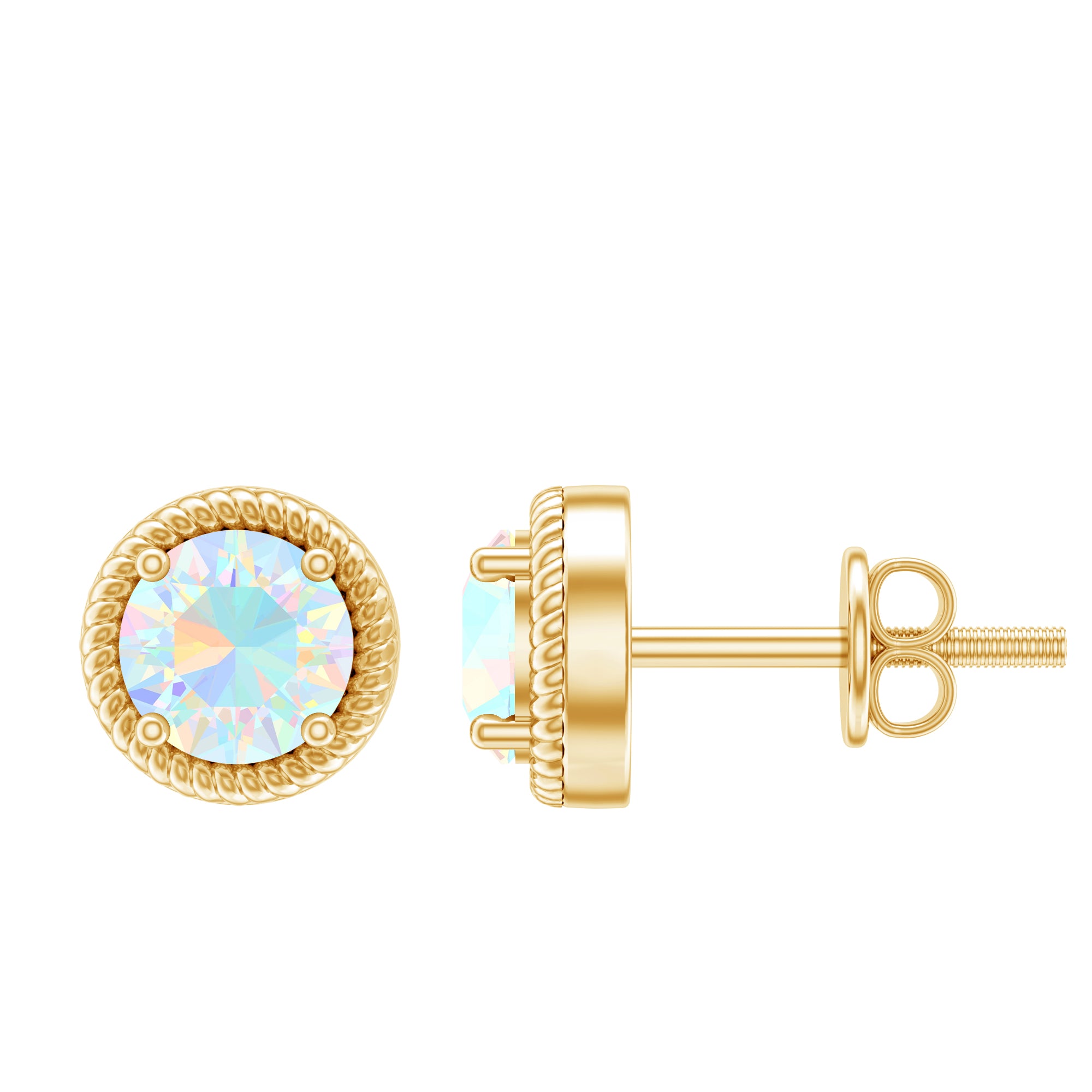 These Beautiful Stud earrings are embellished with Round Shape Ethiopian Opal set in Prong Setting. These Rope earrings are available in various metal options.