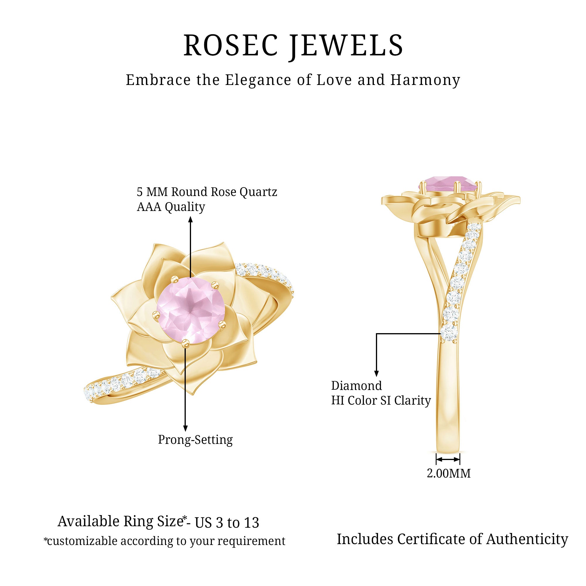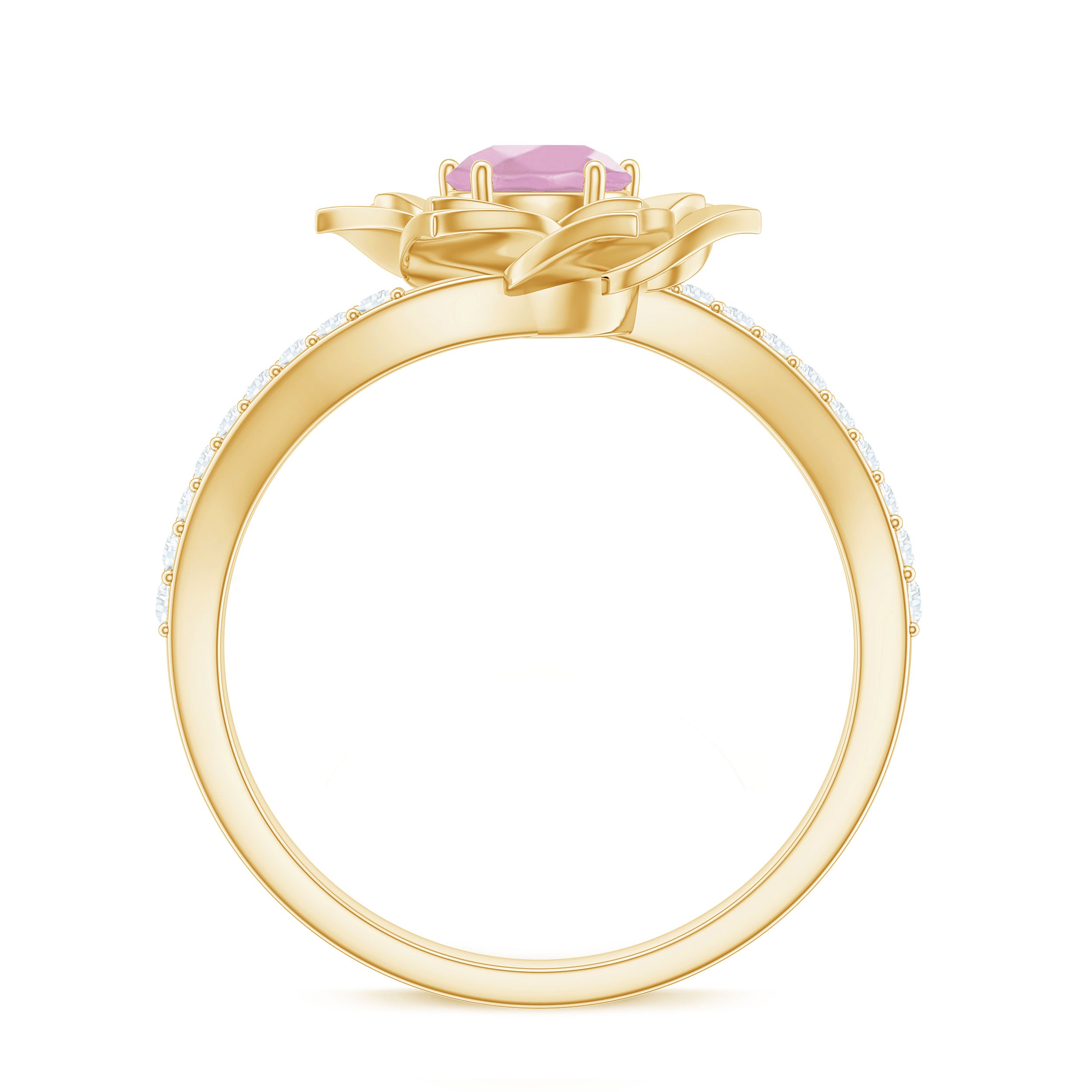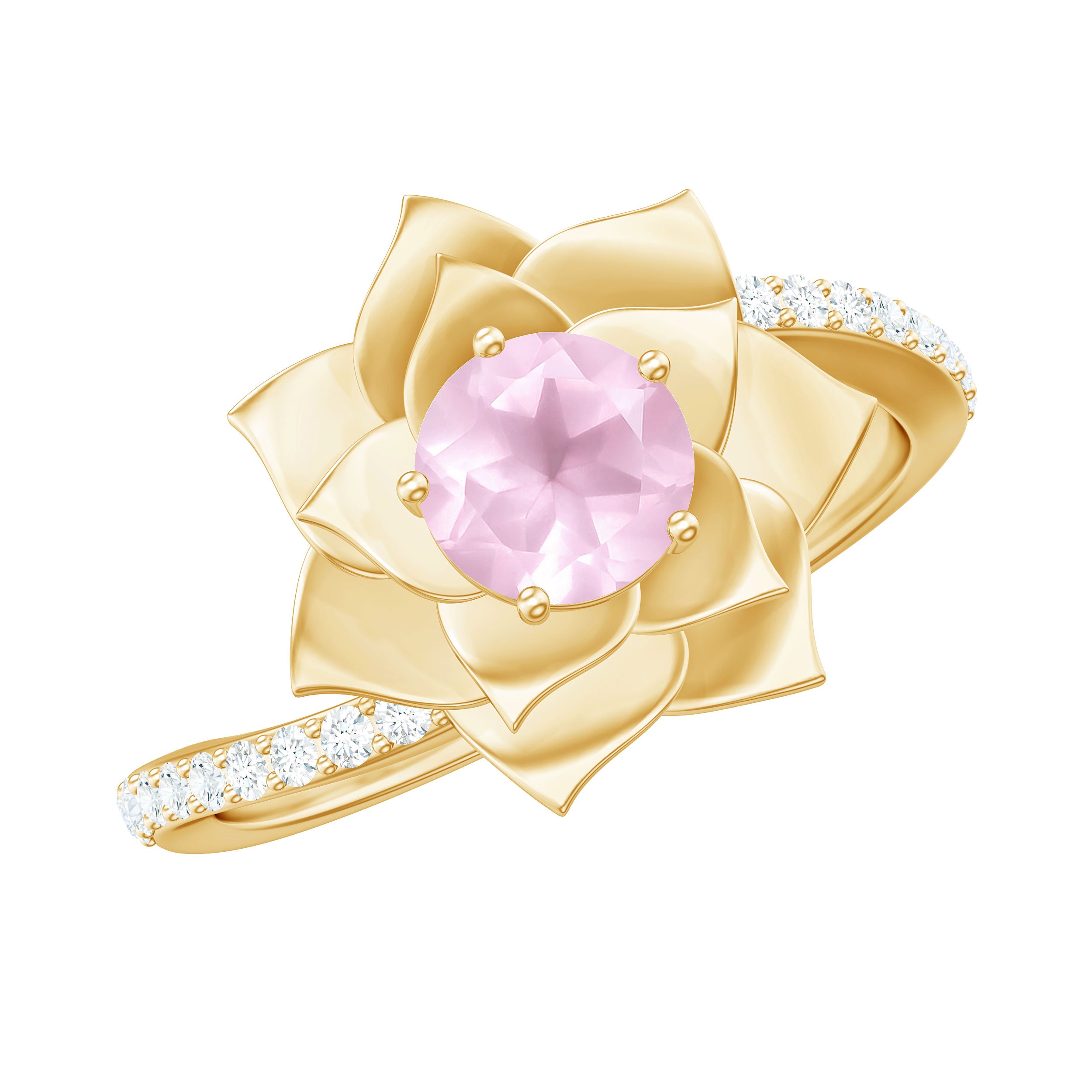 Show off your personal fashion with the exquisite Rose Quartz Gold Floral Ring, adorned with dazzling Round Shape Rose Quartz and Diamond stones. This stunning Bypass Flower Engagement Ring is a one-of-a-kind piece that any woman would love to wear.