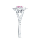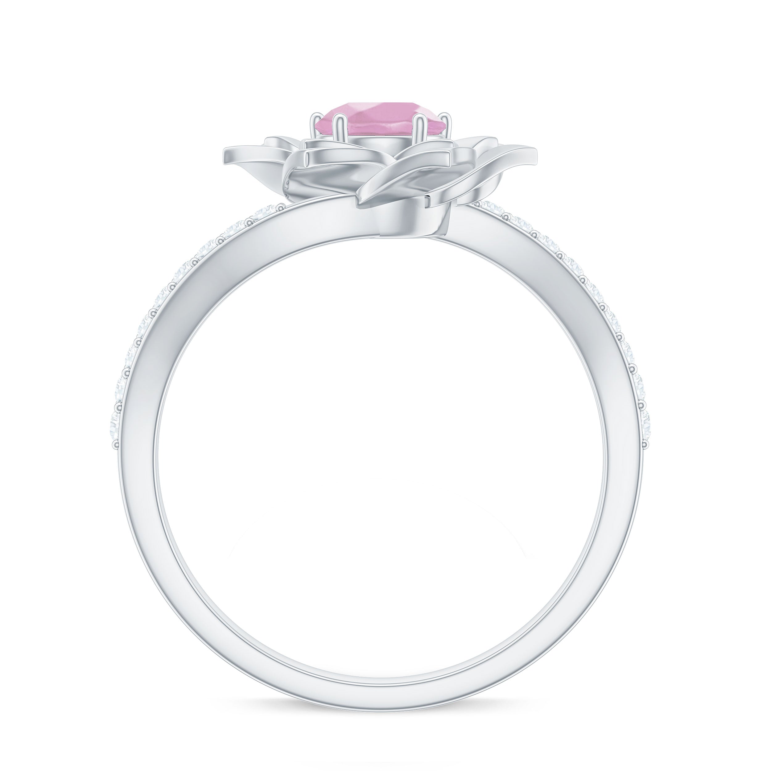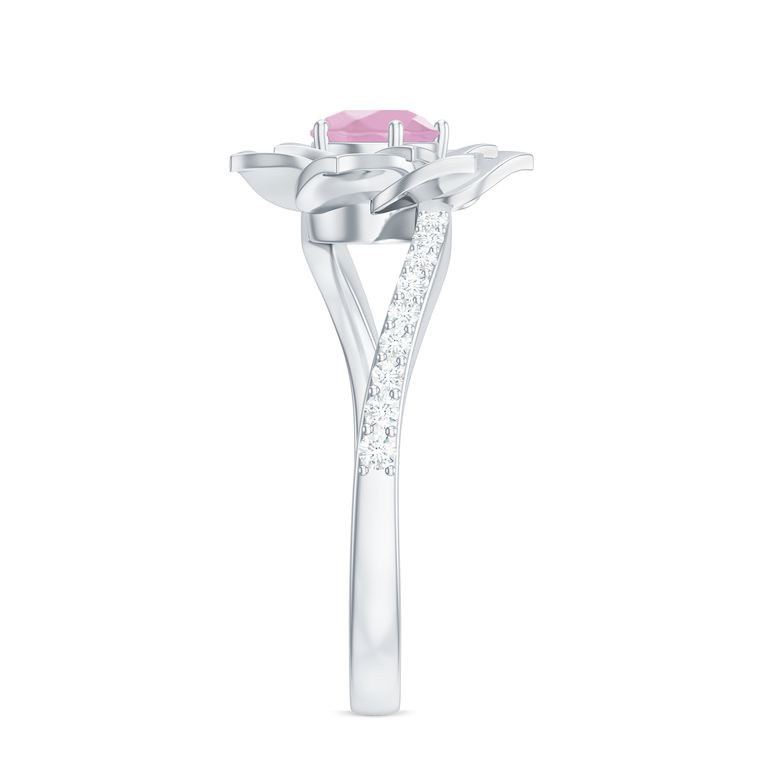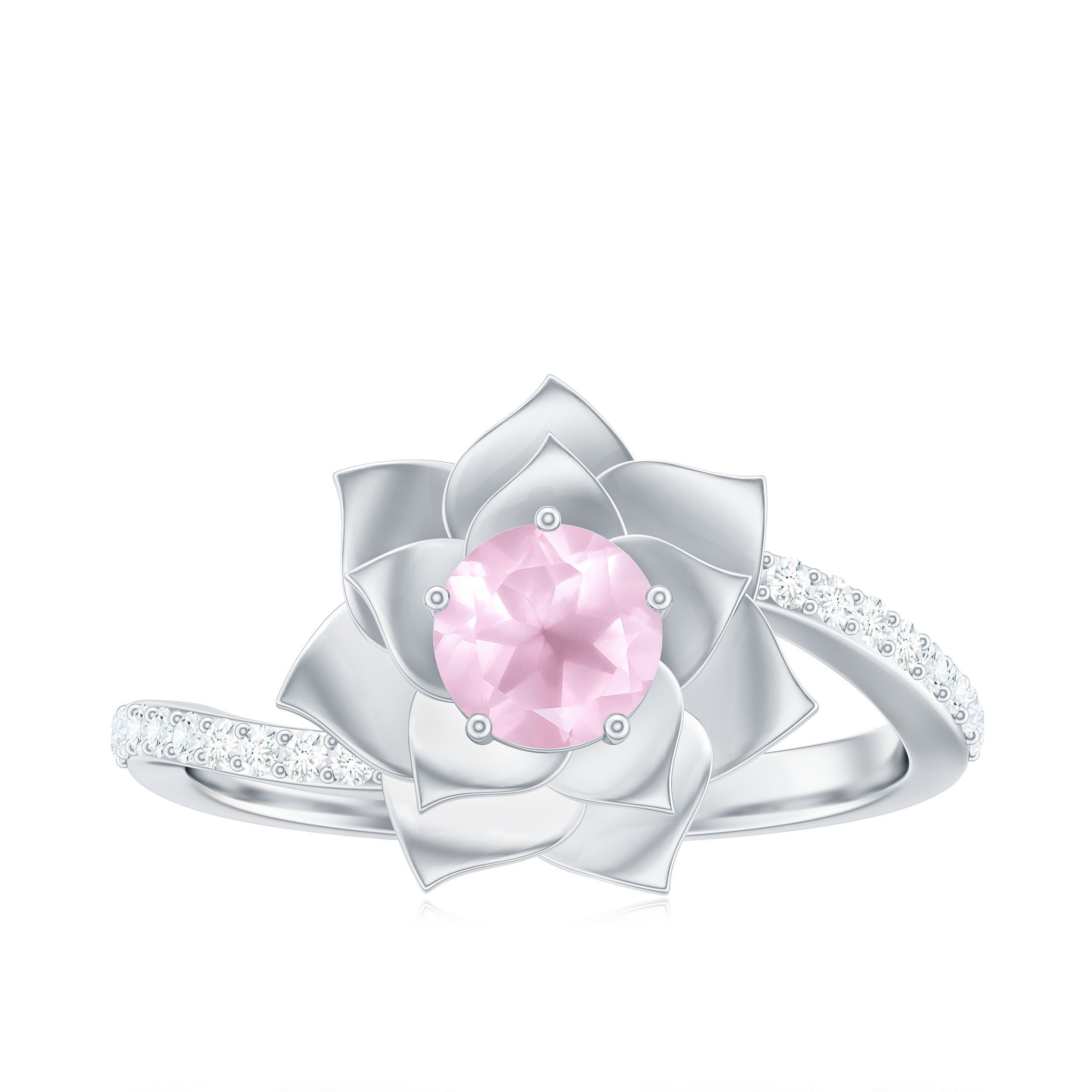 Rose Quartz and Diamond Flower Engagement Ring with Bypass Shank