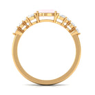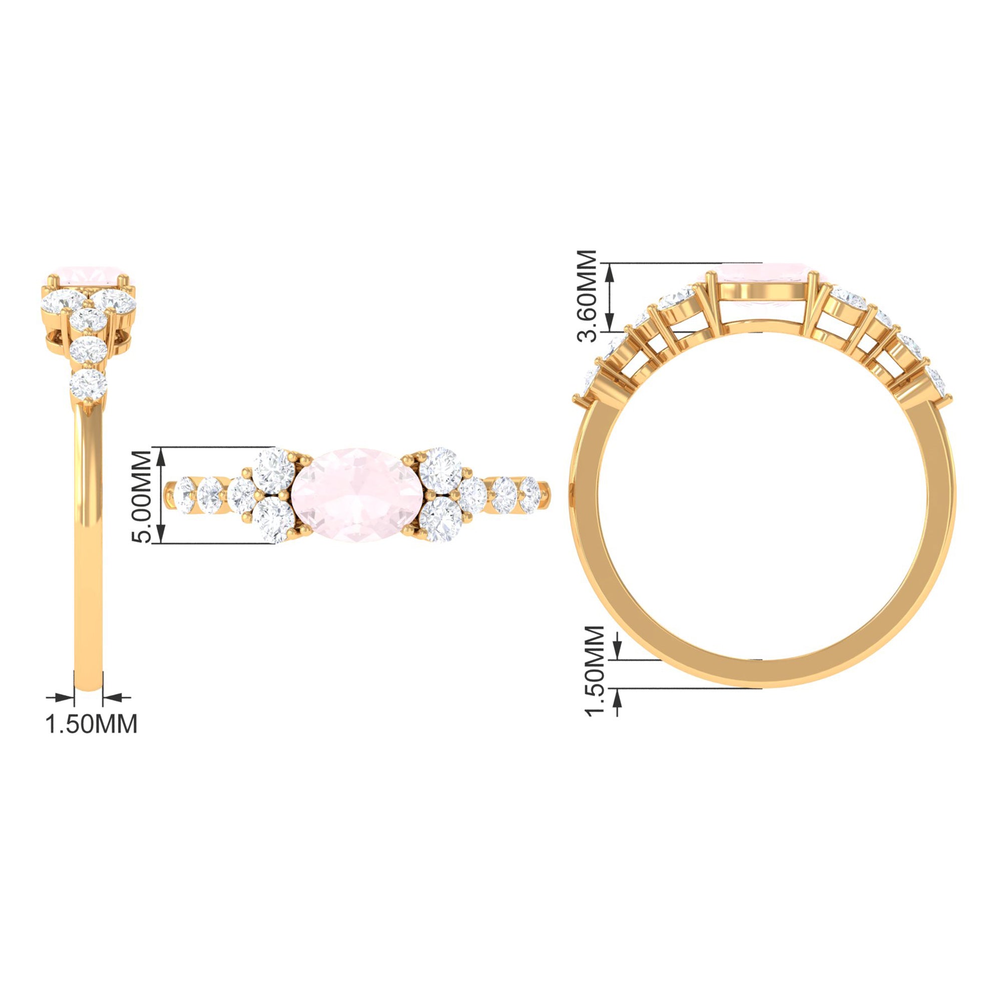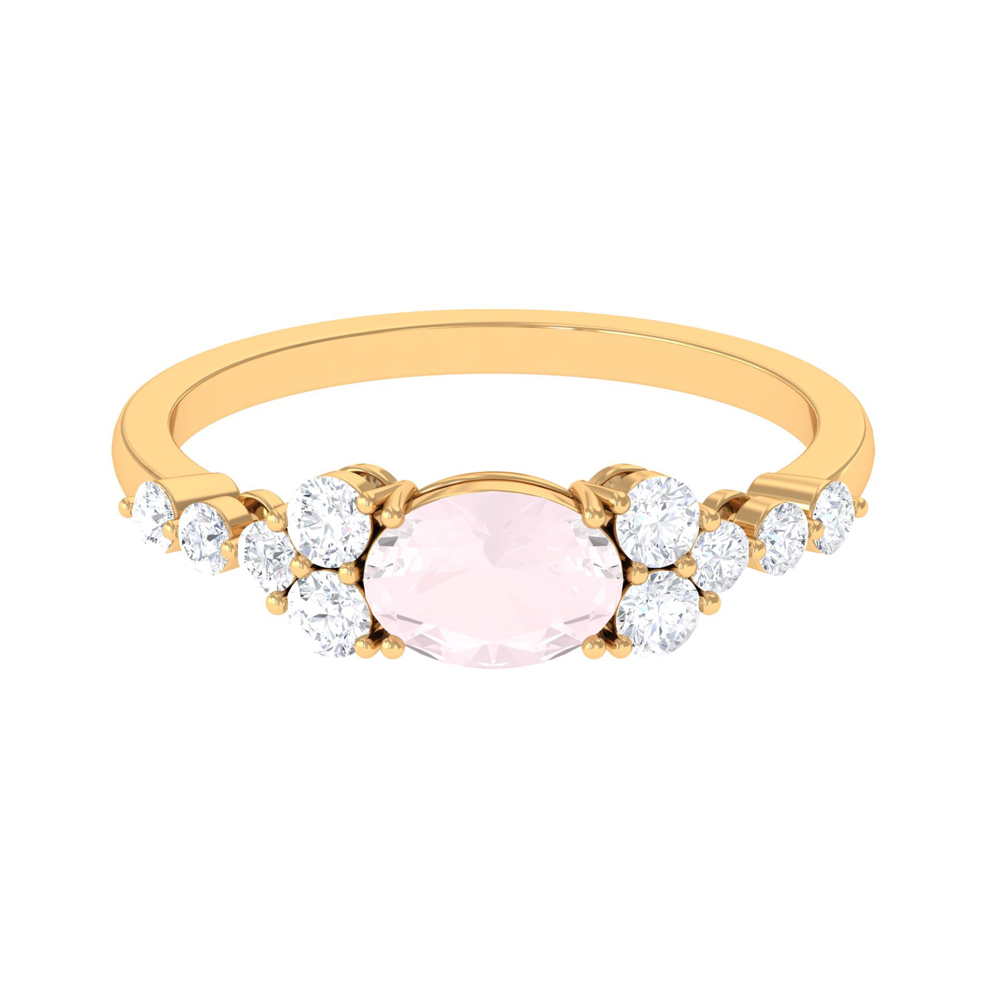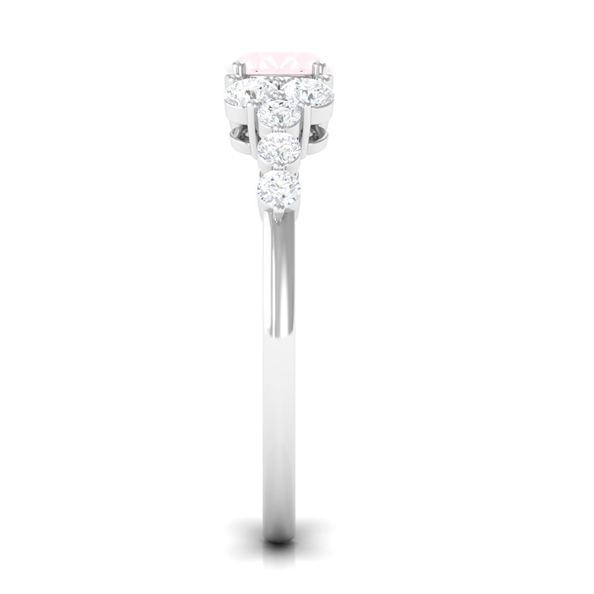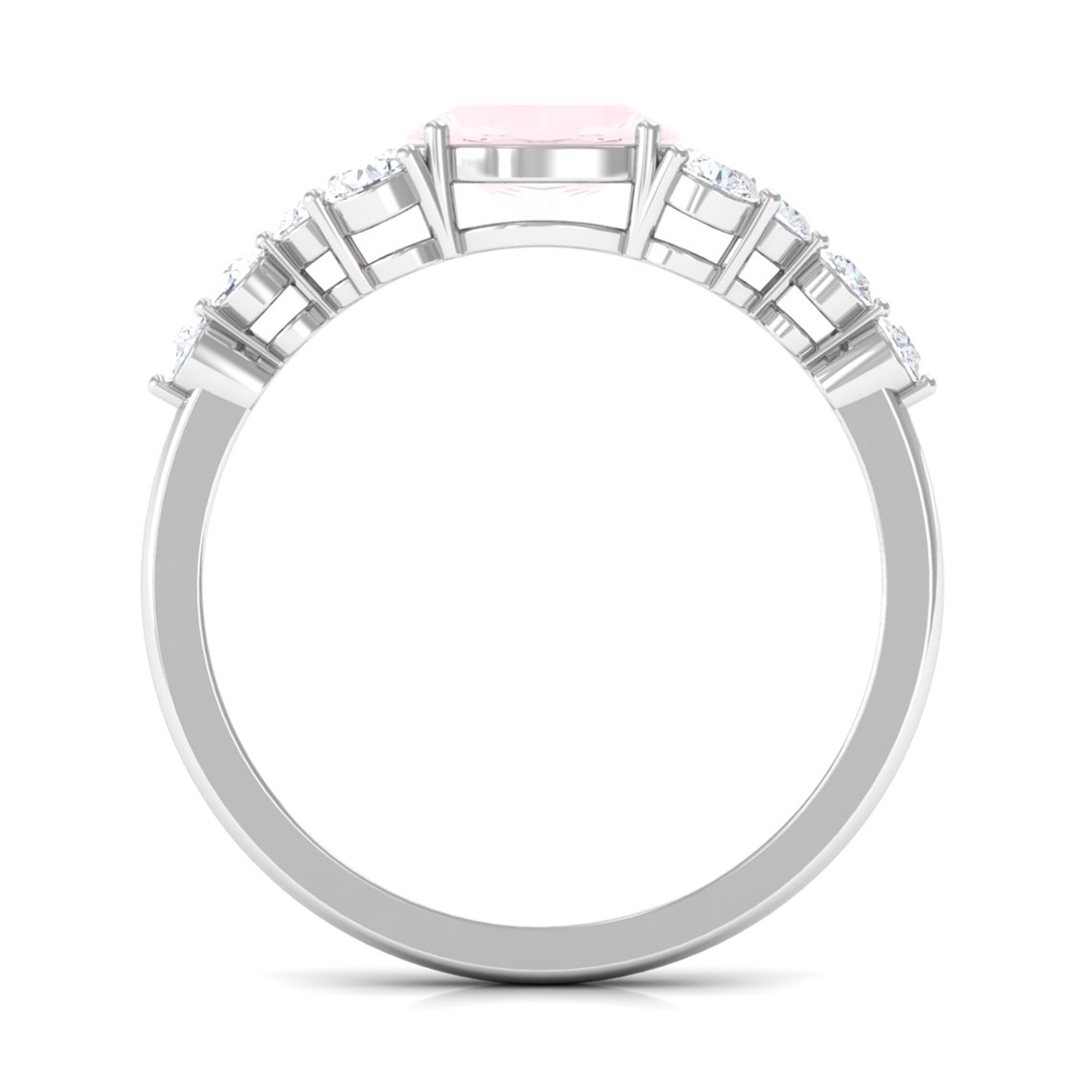 Rose Quartz Solitaire East West Ring with Diamond Side Stones