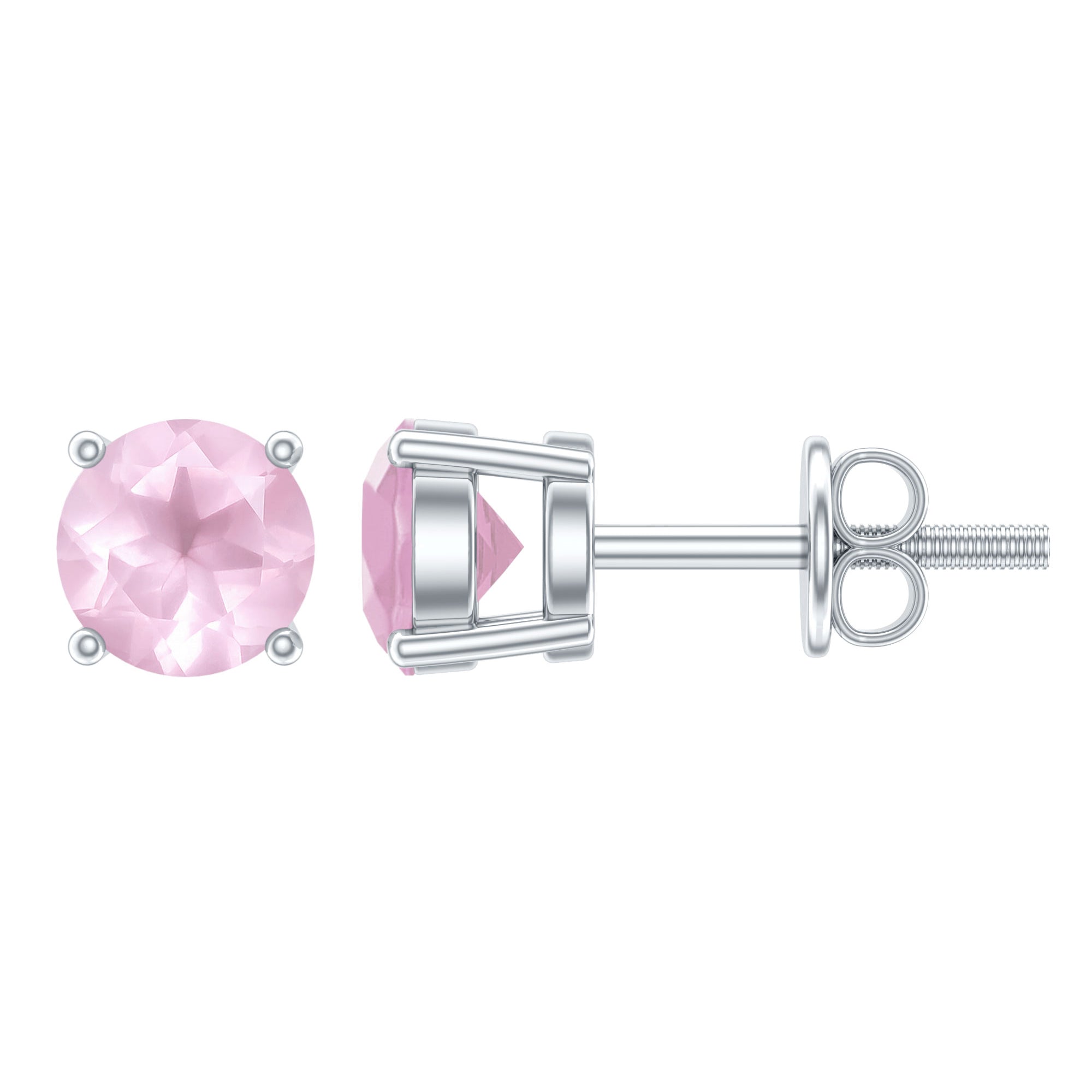 Rose Quartz Solitaire Stud Earrings in 4 Prong Setting