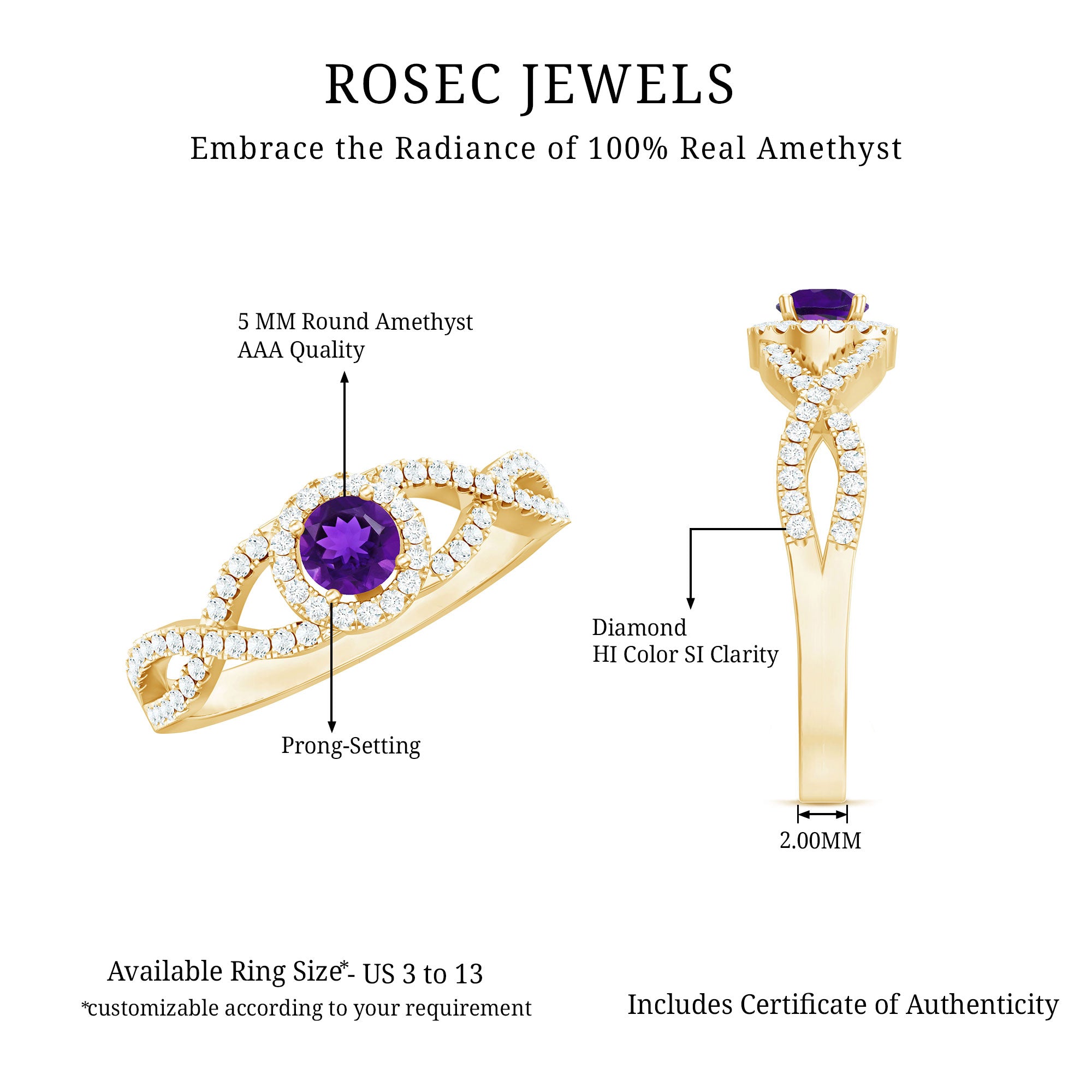 Round Amethyst and Diamond Criss Cross Engagement Ring