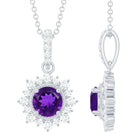 Round Amethyst Halo Pendant with Diamond Accent Bail