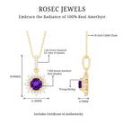If youre searching for the perfect jewelry to wear on an evening date with your partner, look no further than this Amethyst Pendant. Featuring a 7 MM Round Shape Amethyst in a Prong Setting, with Gold Beaded Details and a Round Diamond Halo, this pendant necklace is simply stunning. The subtle yet elegant design will garner compliments when you wear it. With a total weight of 2 Carats and AAA Quality, this pendant is made with high-quality certified gemstones that undergo strict quality checks.