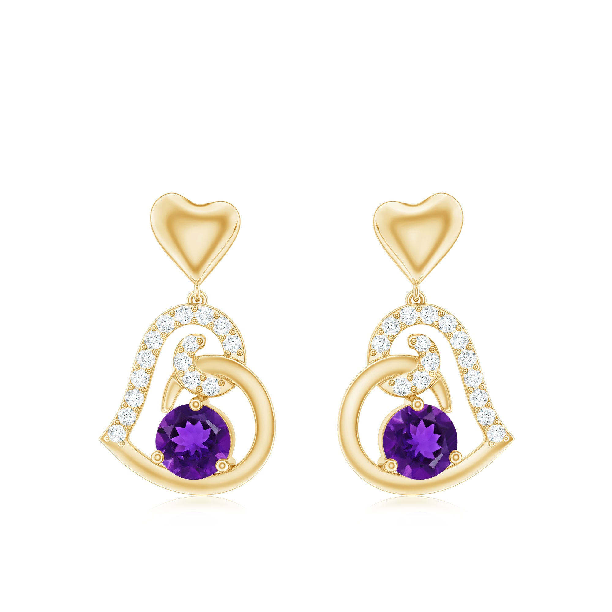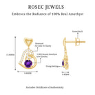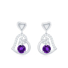 Natural Amethyst Diamond Heart Drop Earrings