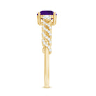 Round Amethyst Solitaire Ring with Diamond Side Stones