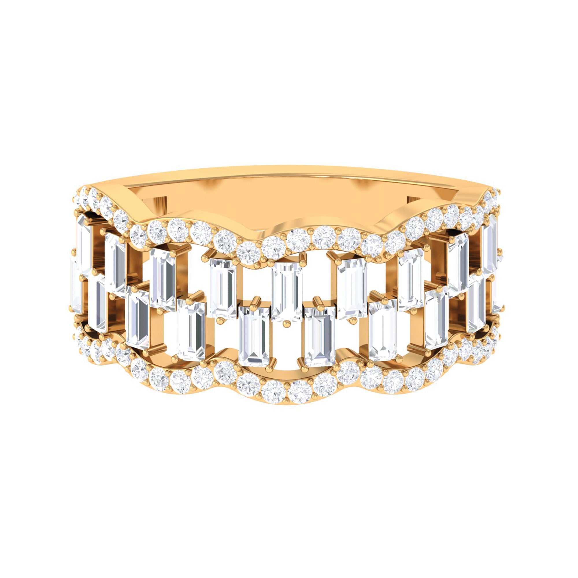 Round and Baguette Cut Zircon Classic Wedding Band Ring
