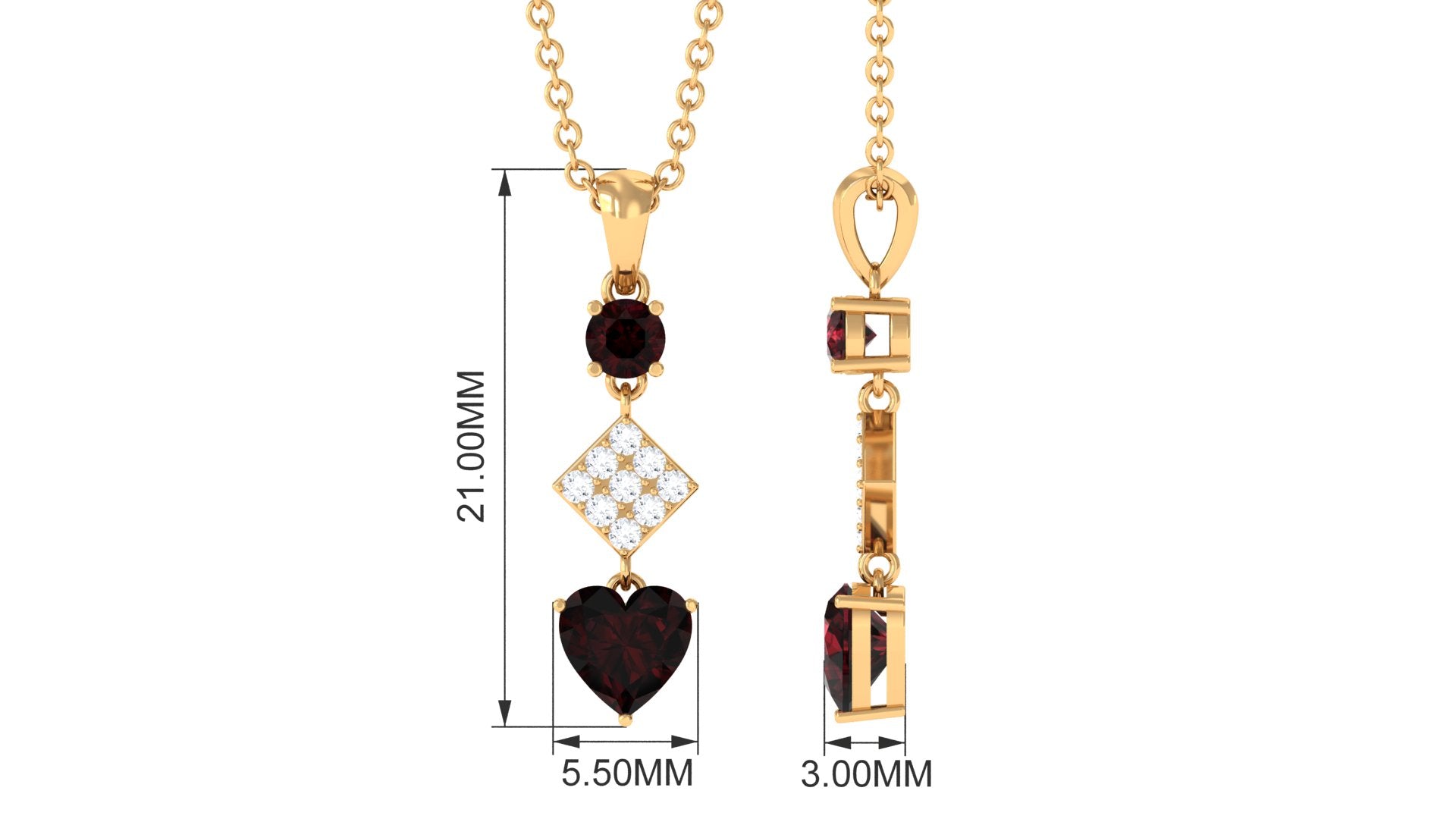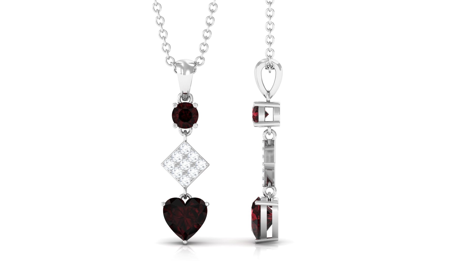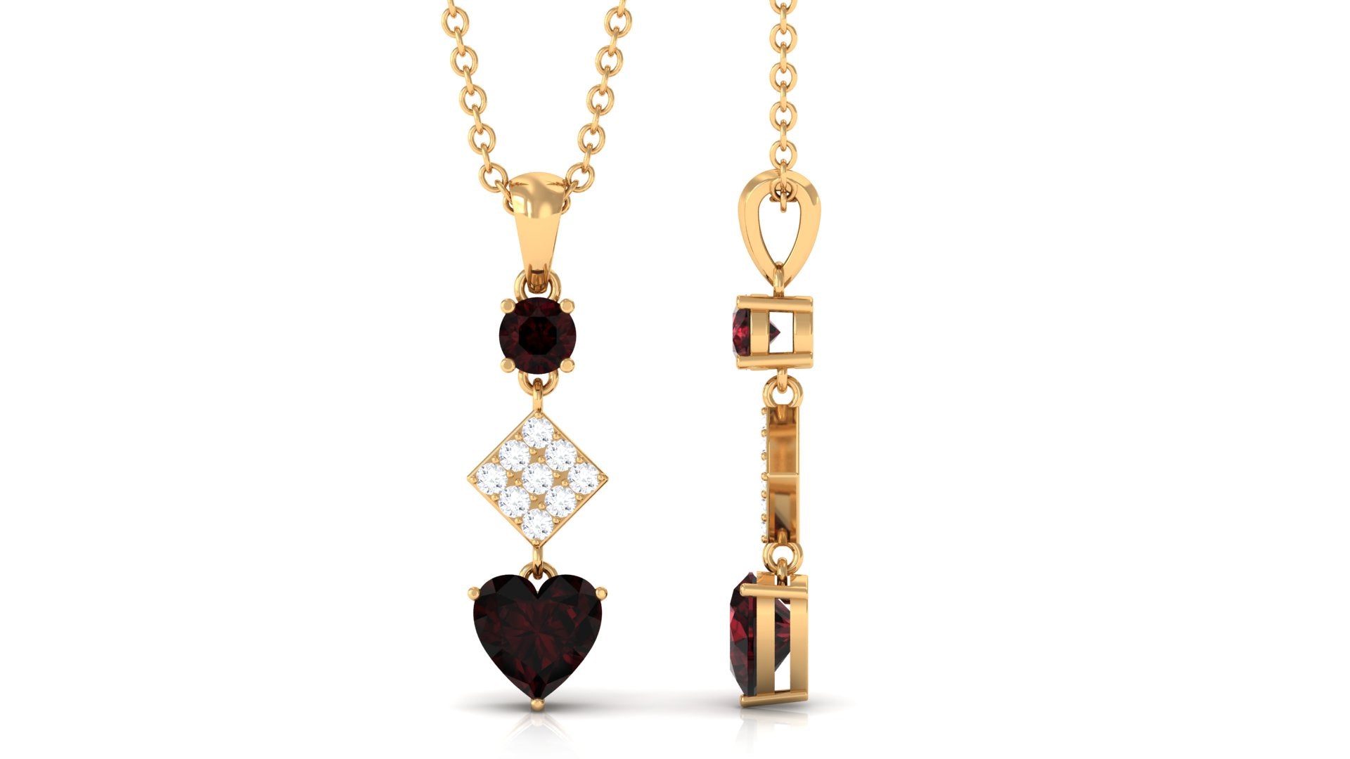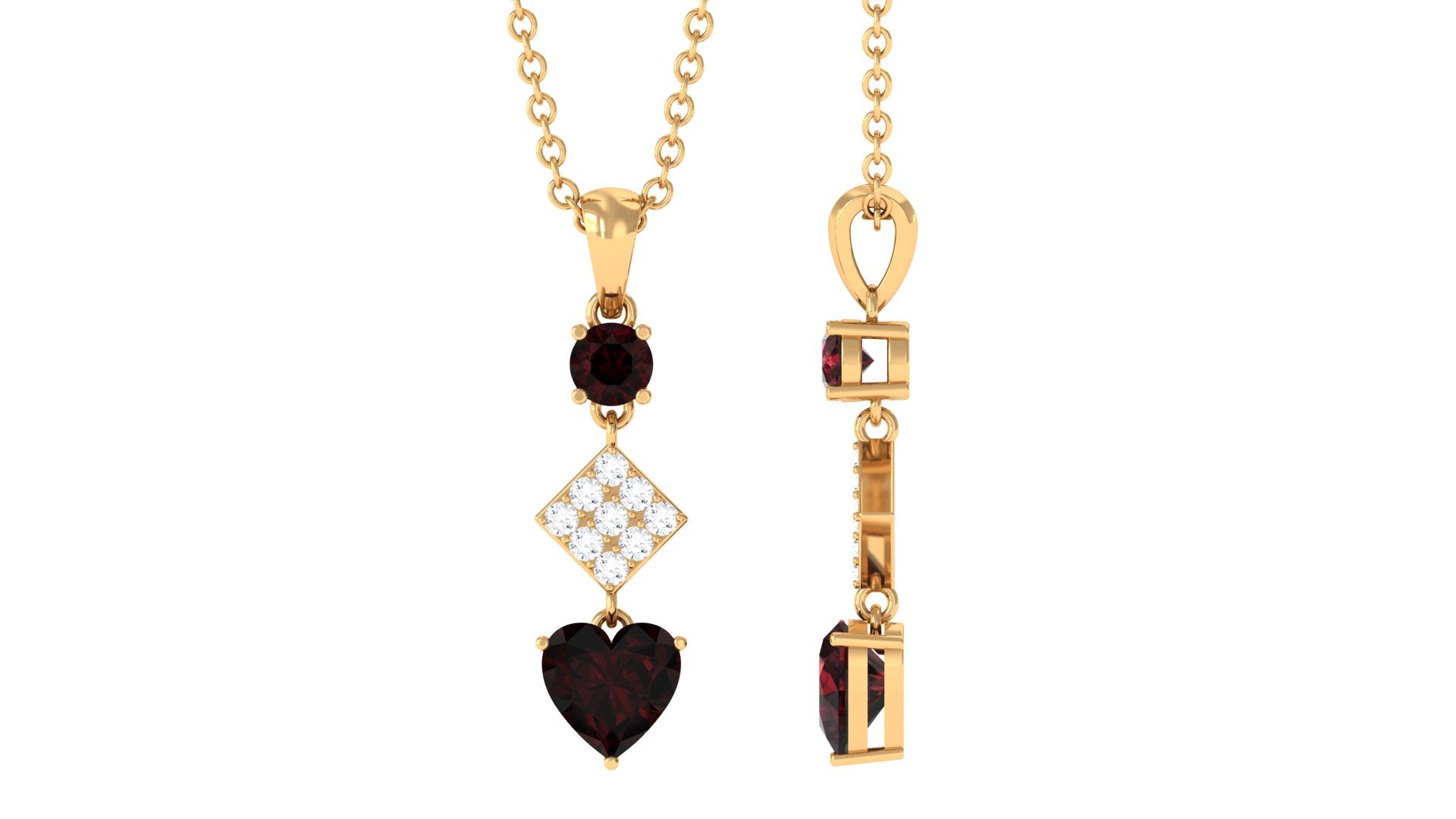 Round and Heart Shape Garnet and Diamond Drop Pendant Necklace