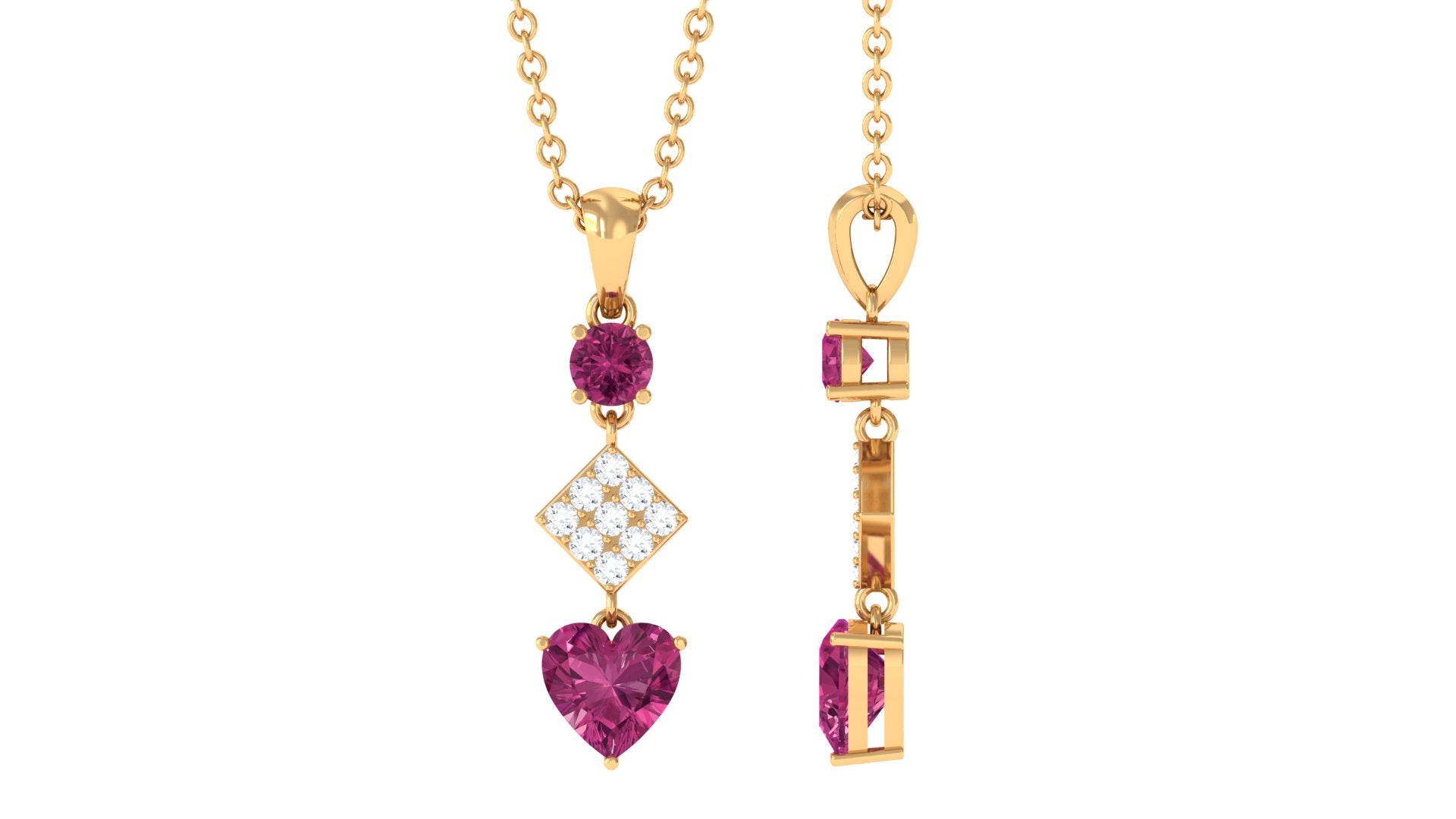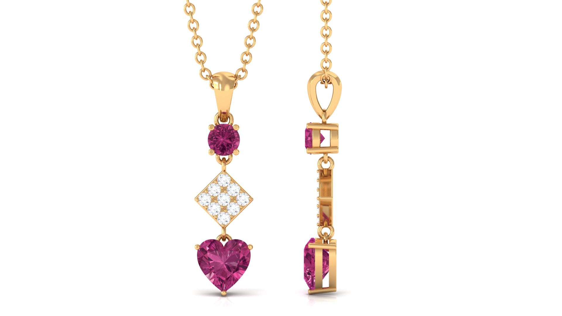 Round and Heart Shape Pink Tourmaline Dangle Pendant with Diamond