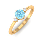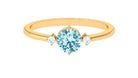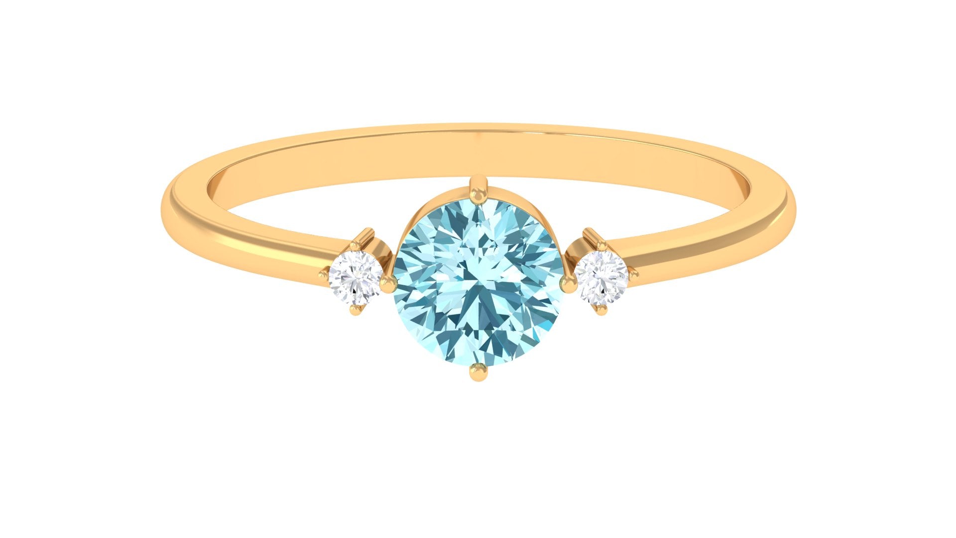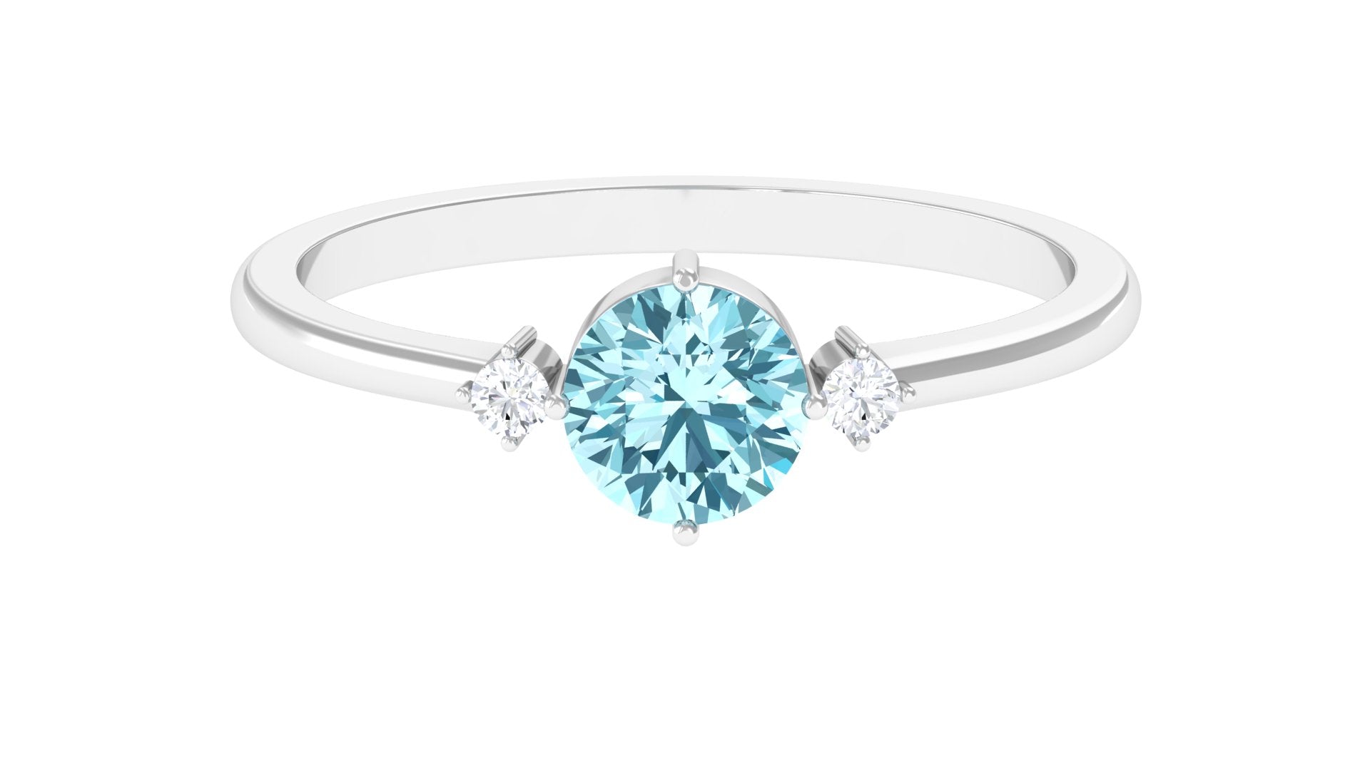 Simplicity meets allure in this eye-catching Aquamarine Promise Ring that is sure to capture her heart. The understated elegance of the royal purple Round Shape Aquamarine at the center is held by a secure 4 Prong Diagonal Setting. Flanking the Aquamarine are Round Shape 6 MM Diamond on either side, adding a touch of grace and complementing its regal charm. This Real Aquamarine Ring is versatile and pairs seamlessly with both your casual and fancy attire, making it a timeless piece for any occasion.