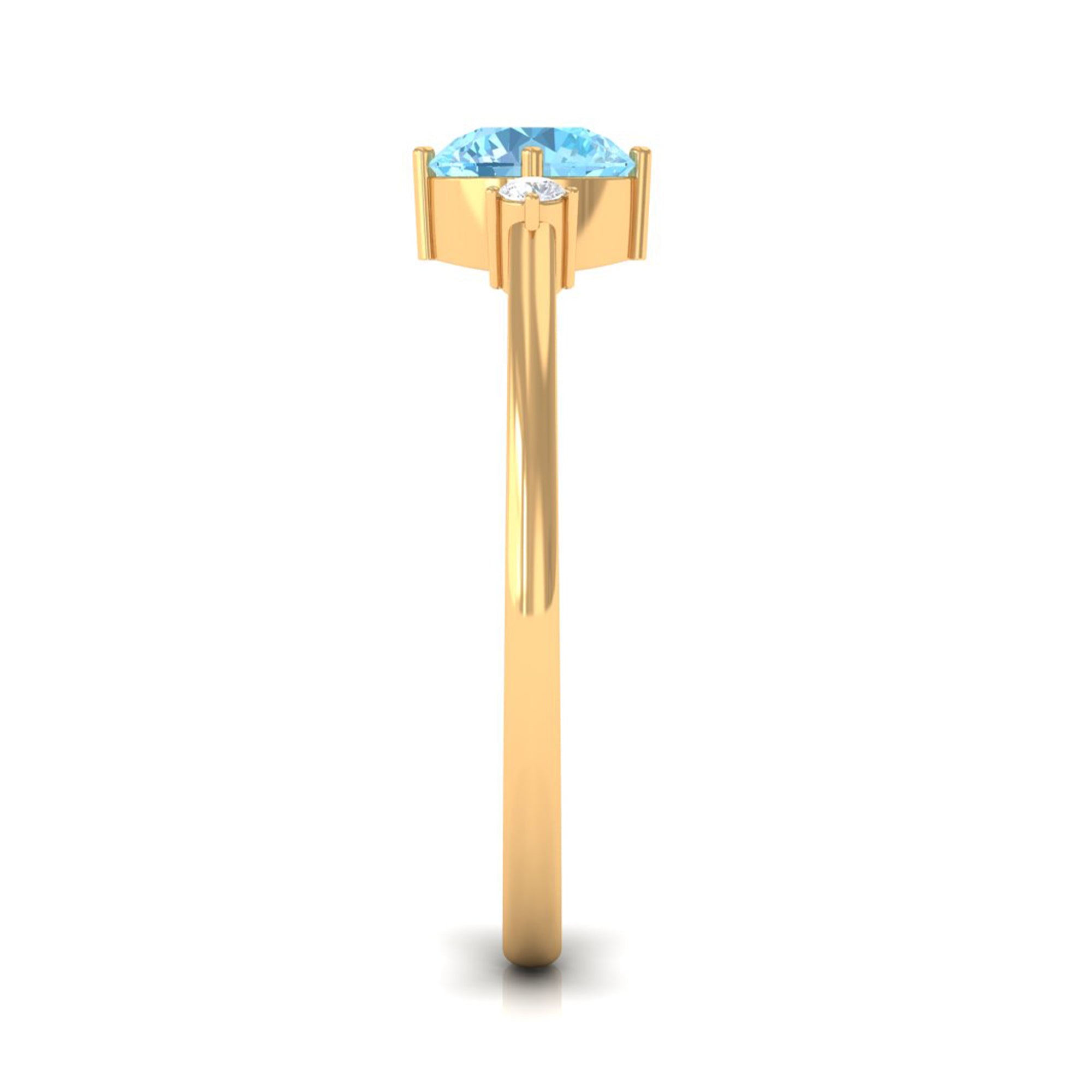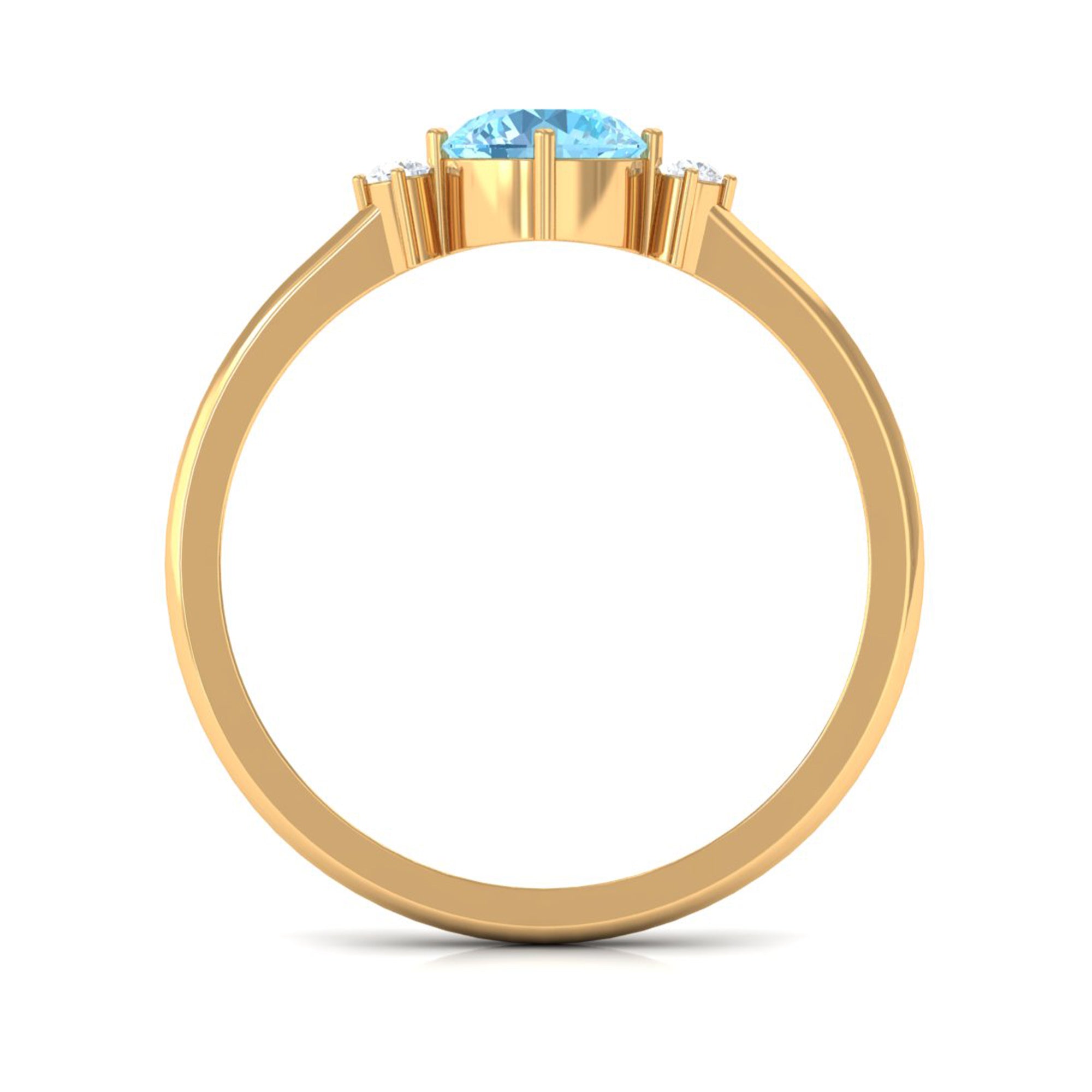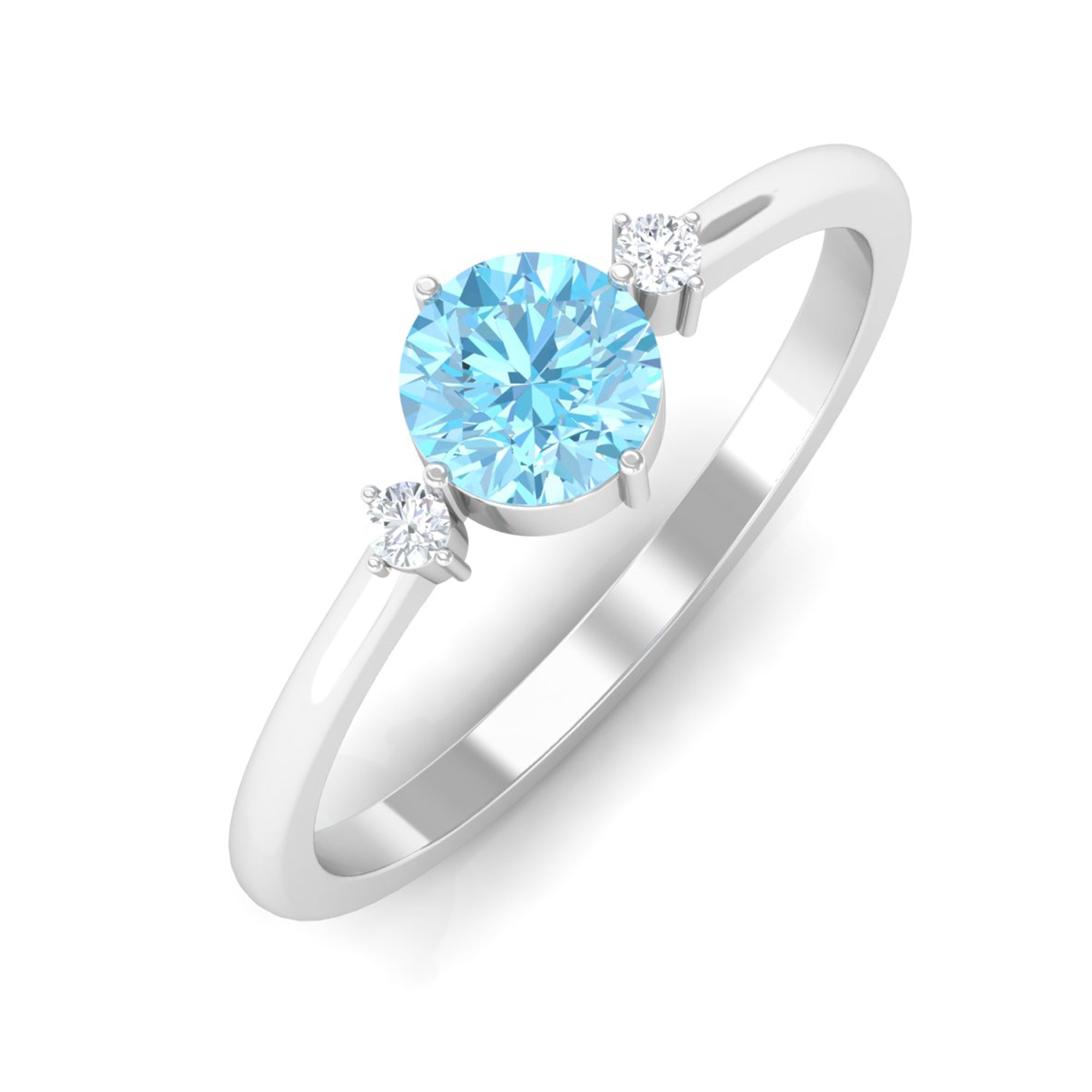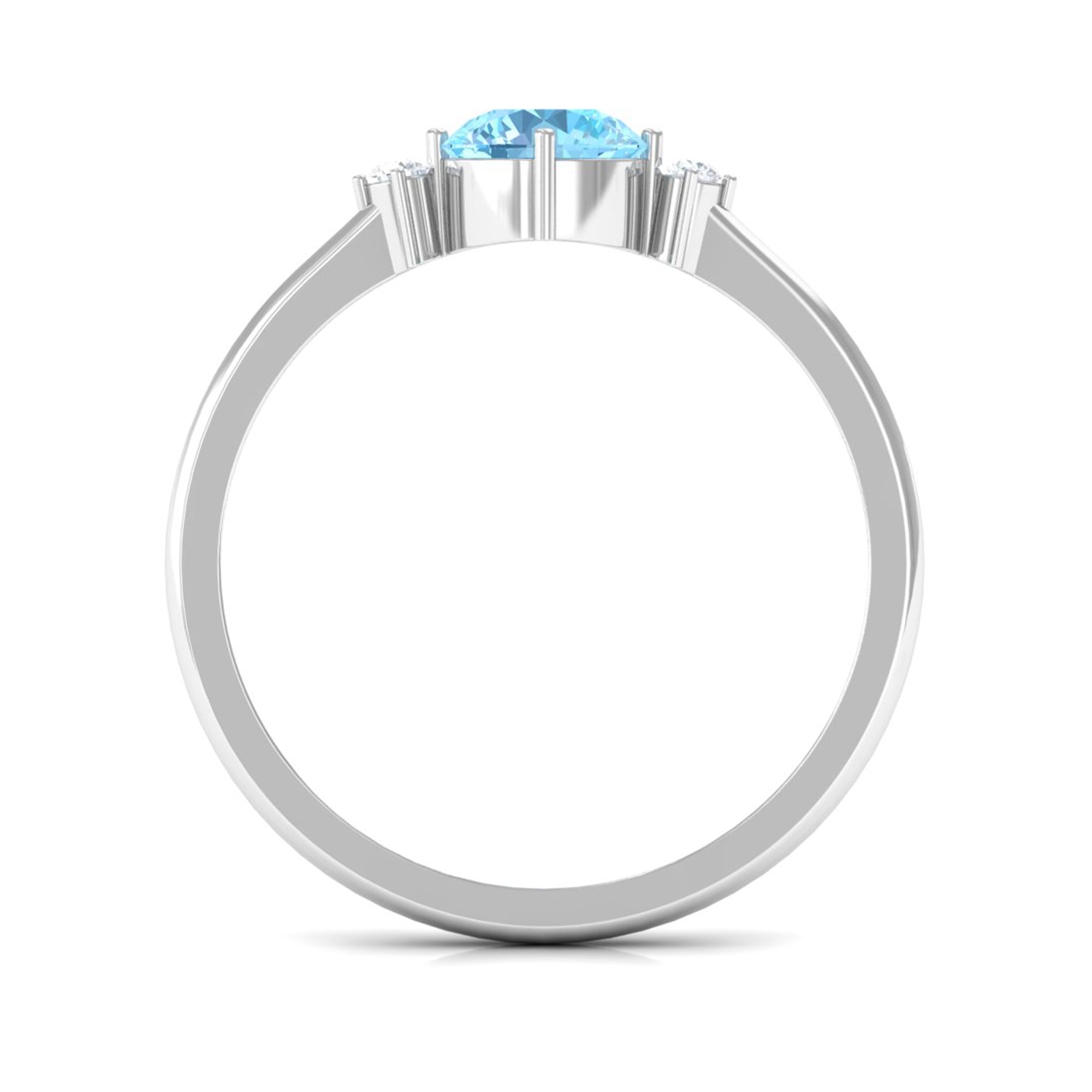 Round Aquamarine Solitaire Promise Ring with Diamond
