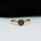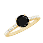 Round Black Onyx Engagement Ring with Diamond Side Stones