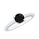 Round Black Onyx Promise Ring with Diamond Side Stones