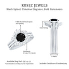 Round Black Spinel Designer Trio Wedding Ring Set with Moissanite