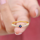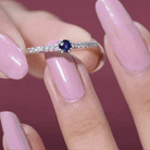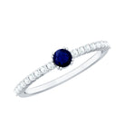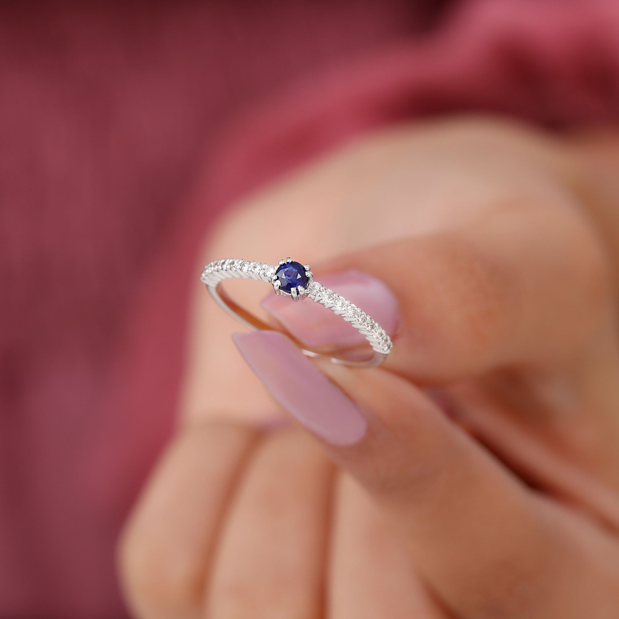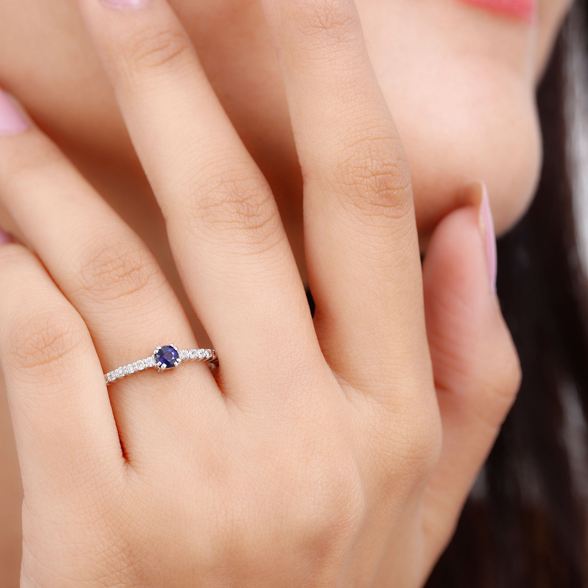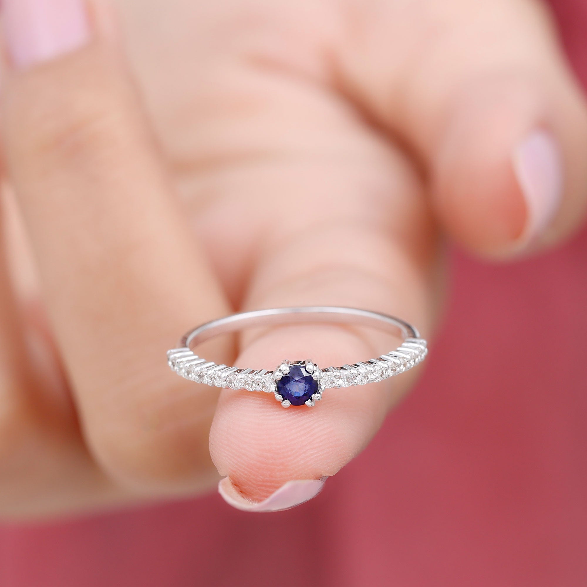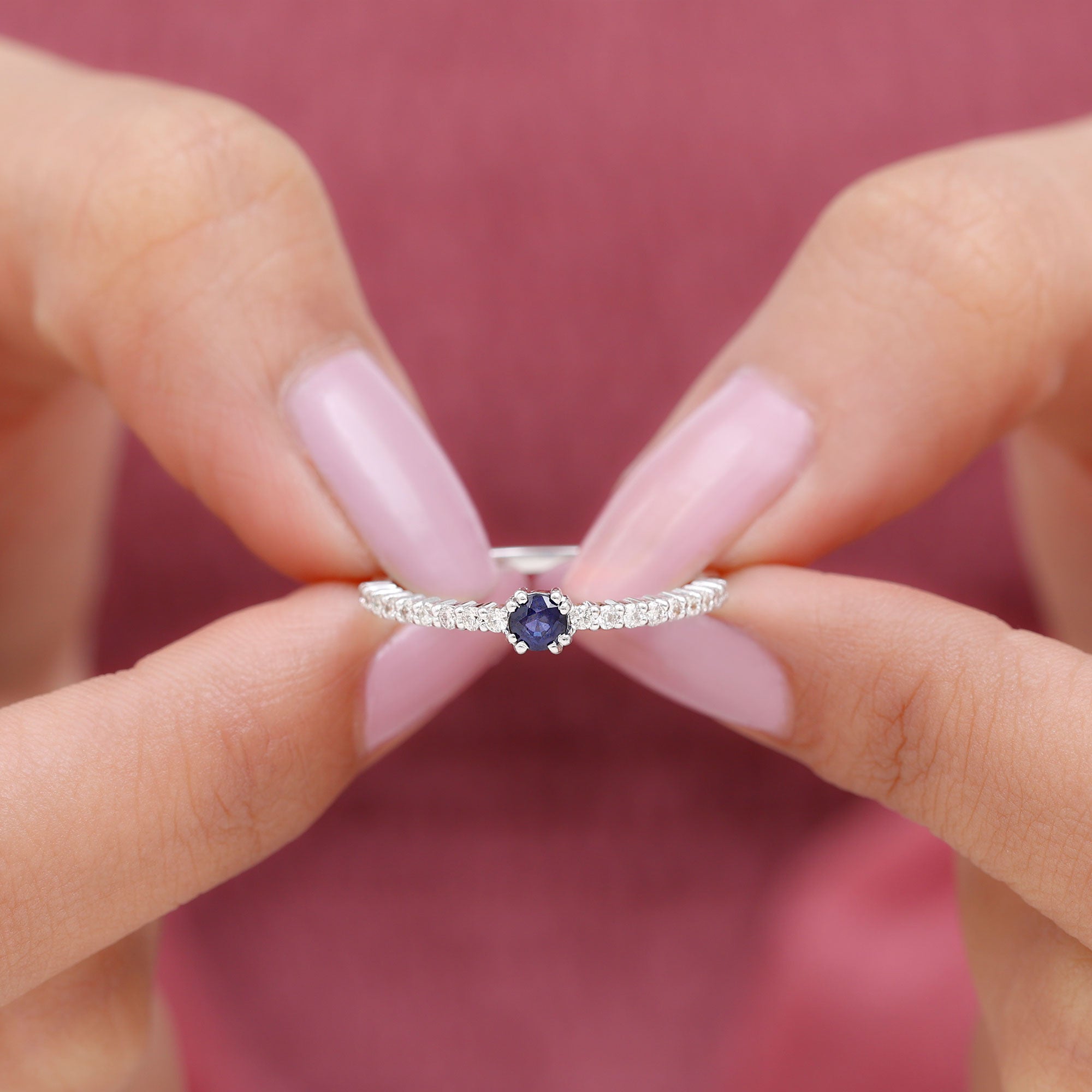 Round Blue Sapphire Dainty Promise Ring with Diamond