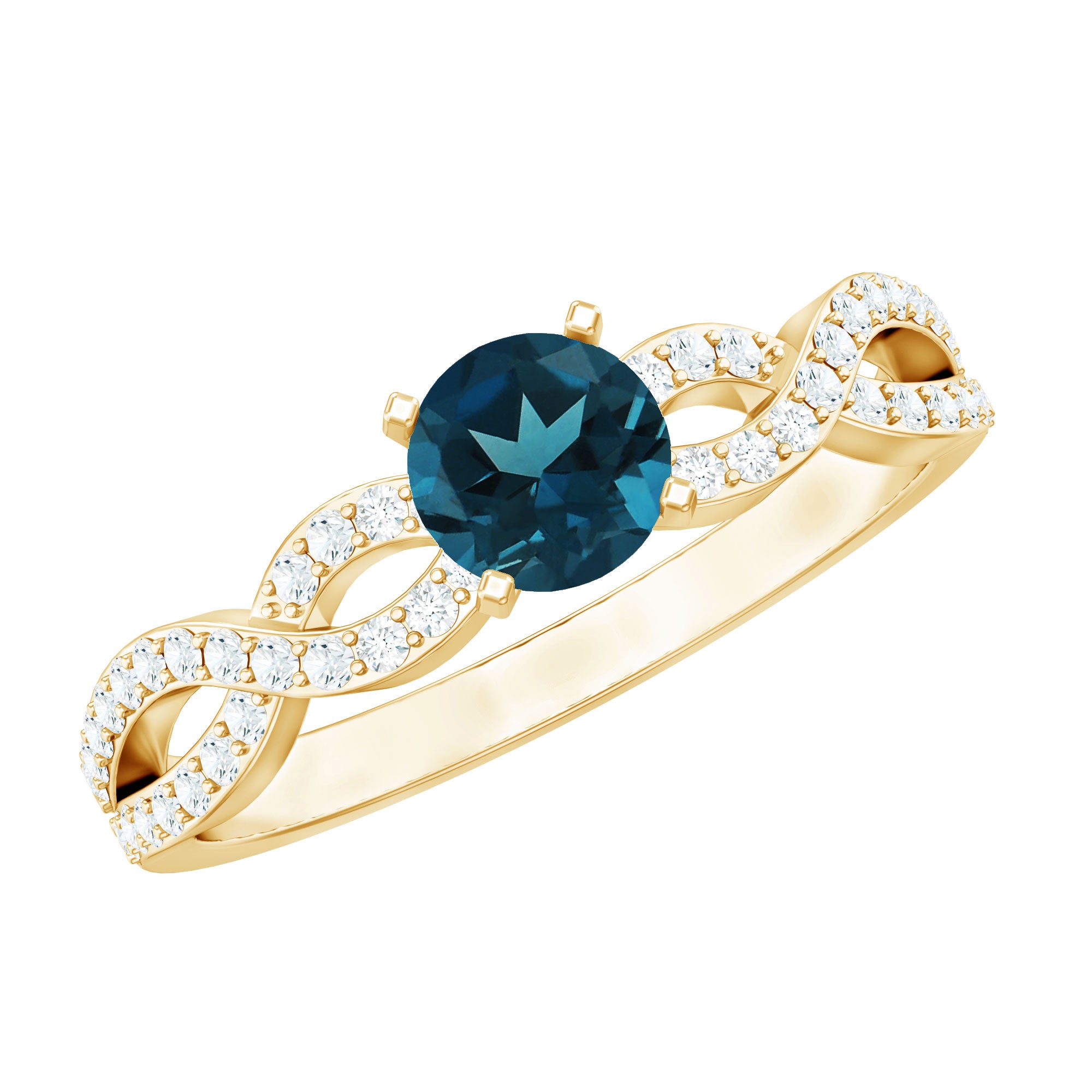 Round Blue Topaz Infinity Engagement Ring with Diamonds