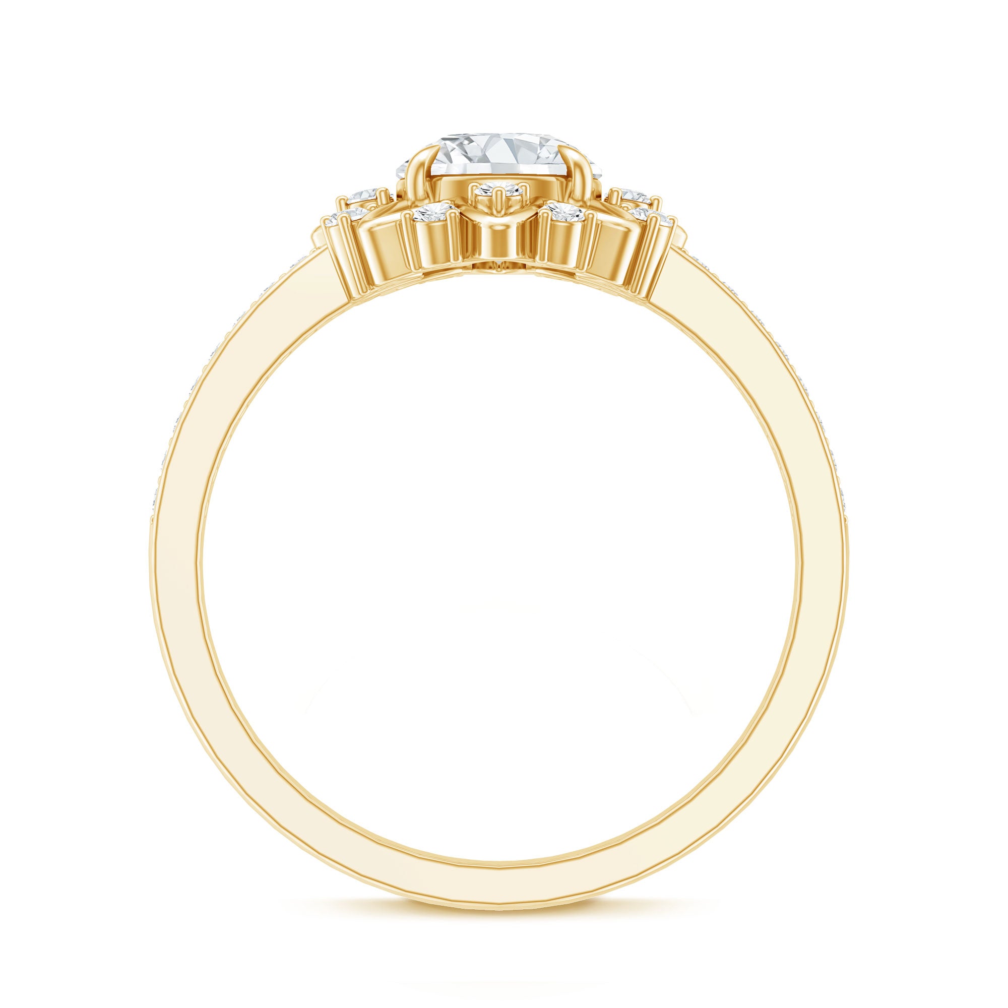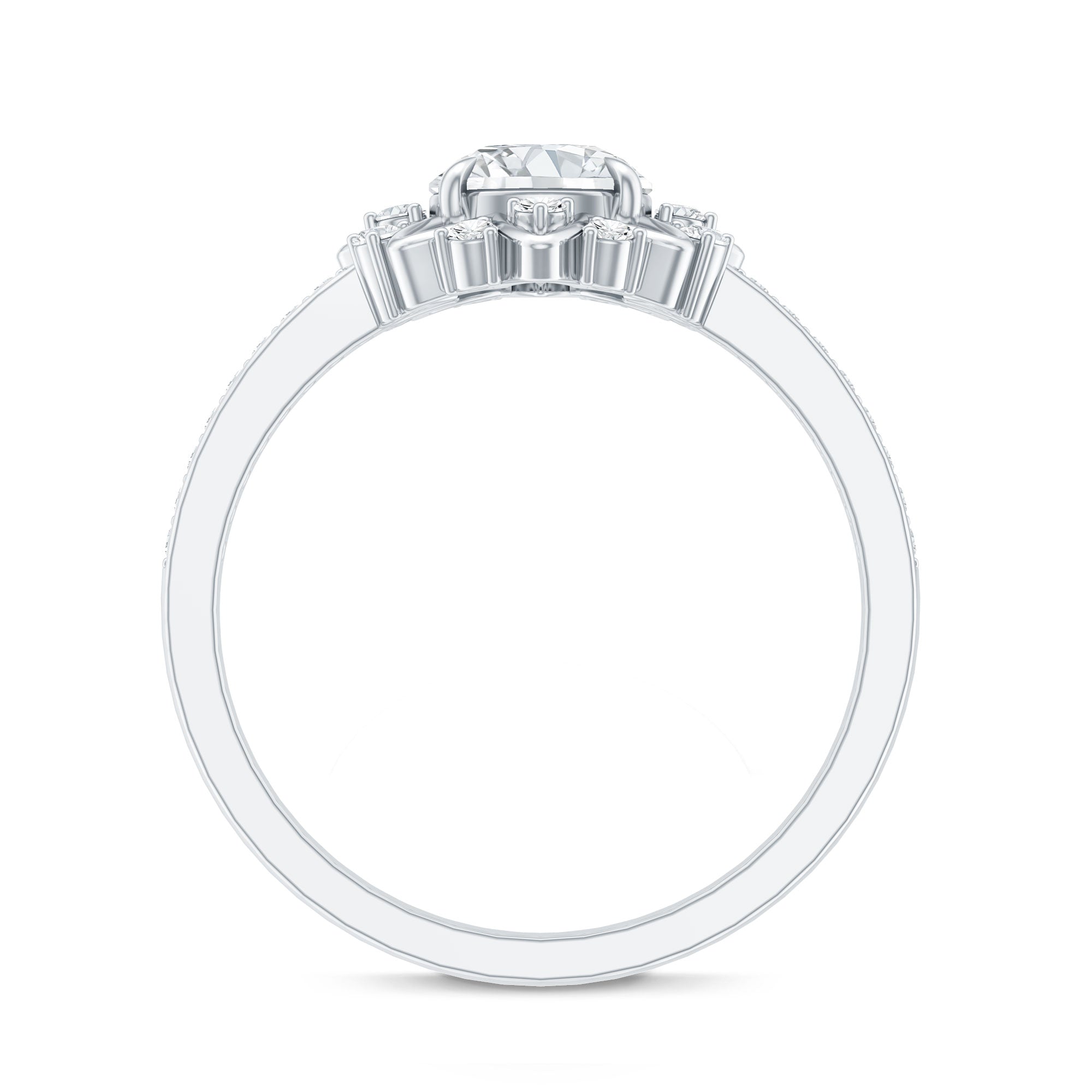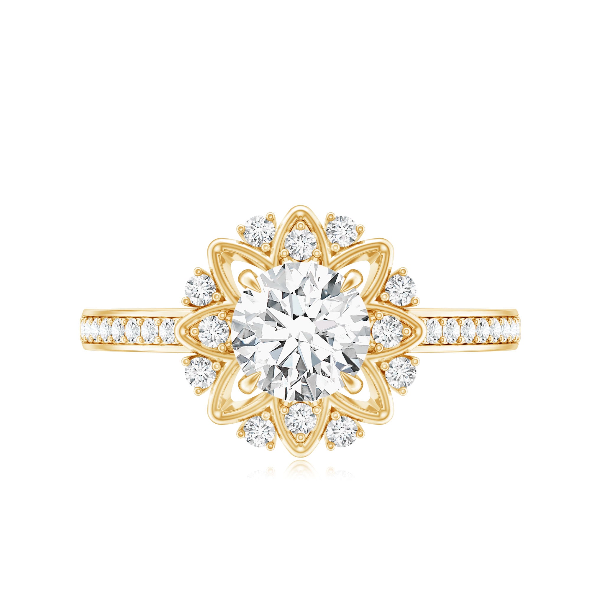 Inspired by the natural beauty of a blooming flower, this Moissanite Engagement Ring is designed to make love blossom with every glance. At the center sits a brilliant 6 MM round cut D-VS1 quality moissanite, held securely in claw setting. Surrounding the center stone is a stunning flower halo, made of smaller round moissanites, carefully arranged to mimic delicate petals. The artistic design adds shine and a romantic touch, making the Flower Engagement Ring feel truly one of a kind. Adding even more sparkle, moissanite side stones line the band, enhancing the overall brilliance. The slim band keeps the focus on the intricate flower design, while offering comfort and beauty from every angle. Perfect for engagements, proposals, or meaningful moments, the Moissanite Flower Ring symbolizes new beginnings, love, and growth. It is ideal for anyone who appreciates feminine style with a touch of nature-inspired charm. Made with care and D-VS1 quality moissanites, it offers a timeless look that is both ethical and stunning. Each piece arrives in a luxury jewelry box, ready to surprise and delight on any special occasion.