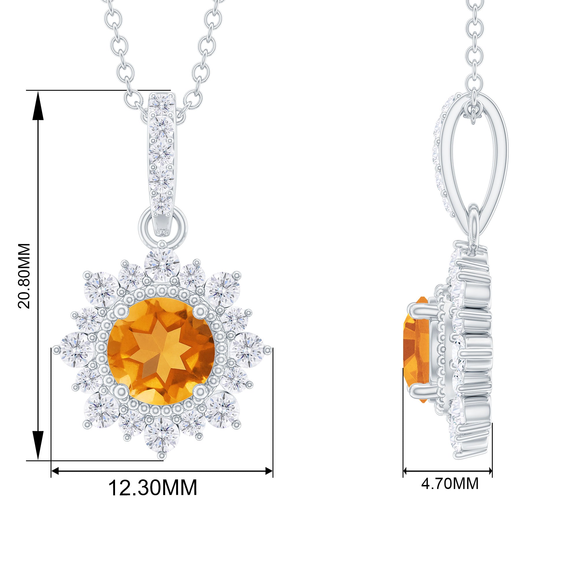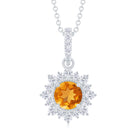 Round Citrine Halo Pendant with Diamond Accent Bail