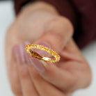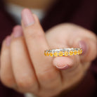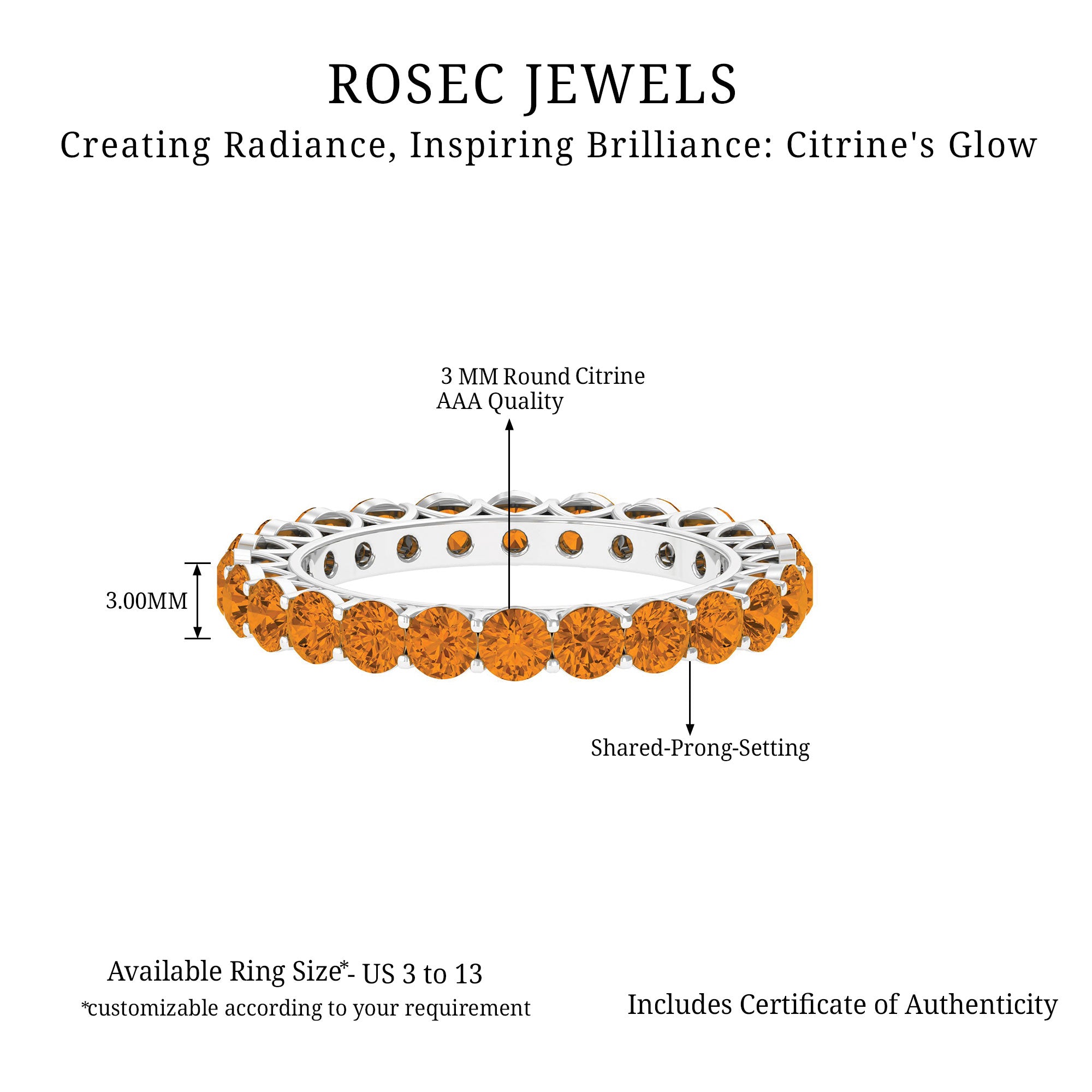 Adorn your finger with the brilliance of the Glittering Yellow Citrine Full Eternity Ring. It features Round Cut Citrine Gemstones beautifully set on a Full Ring with a Shared Prong Setting. This Stunning Citrine Eternity Ring is an ideal choice as a Stackable Wedding Ring.