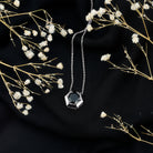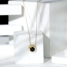 Round Created Black Diamond Gold Hexagon Pendant Necklace