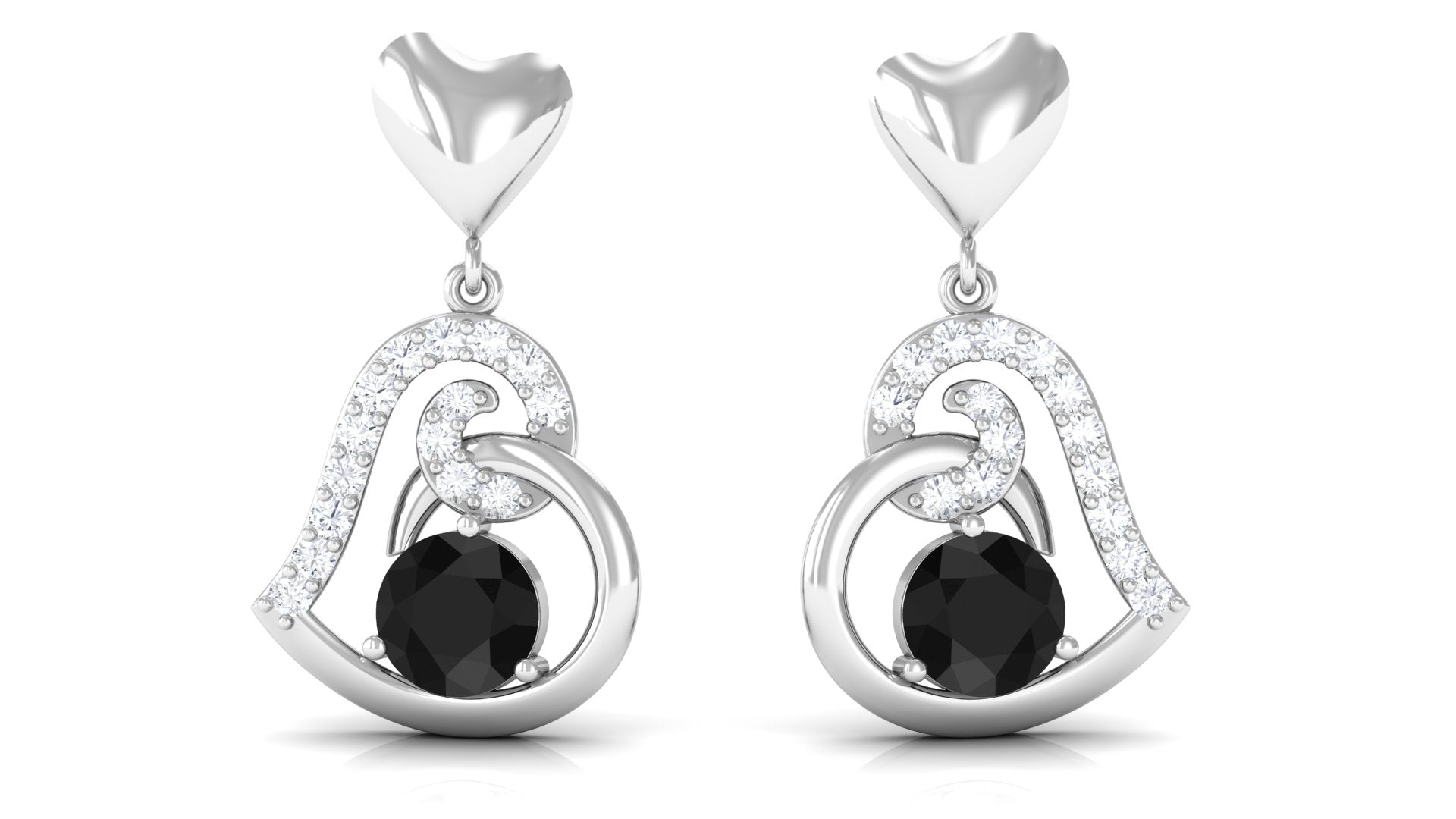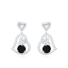 Round Created Black Diamond Heart Drop Earrings with Diamond